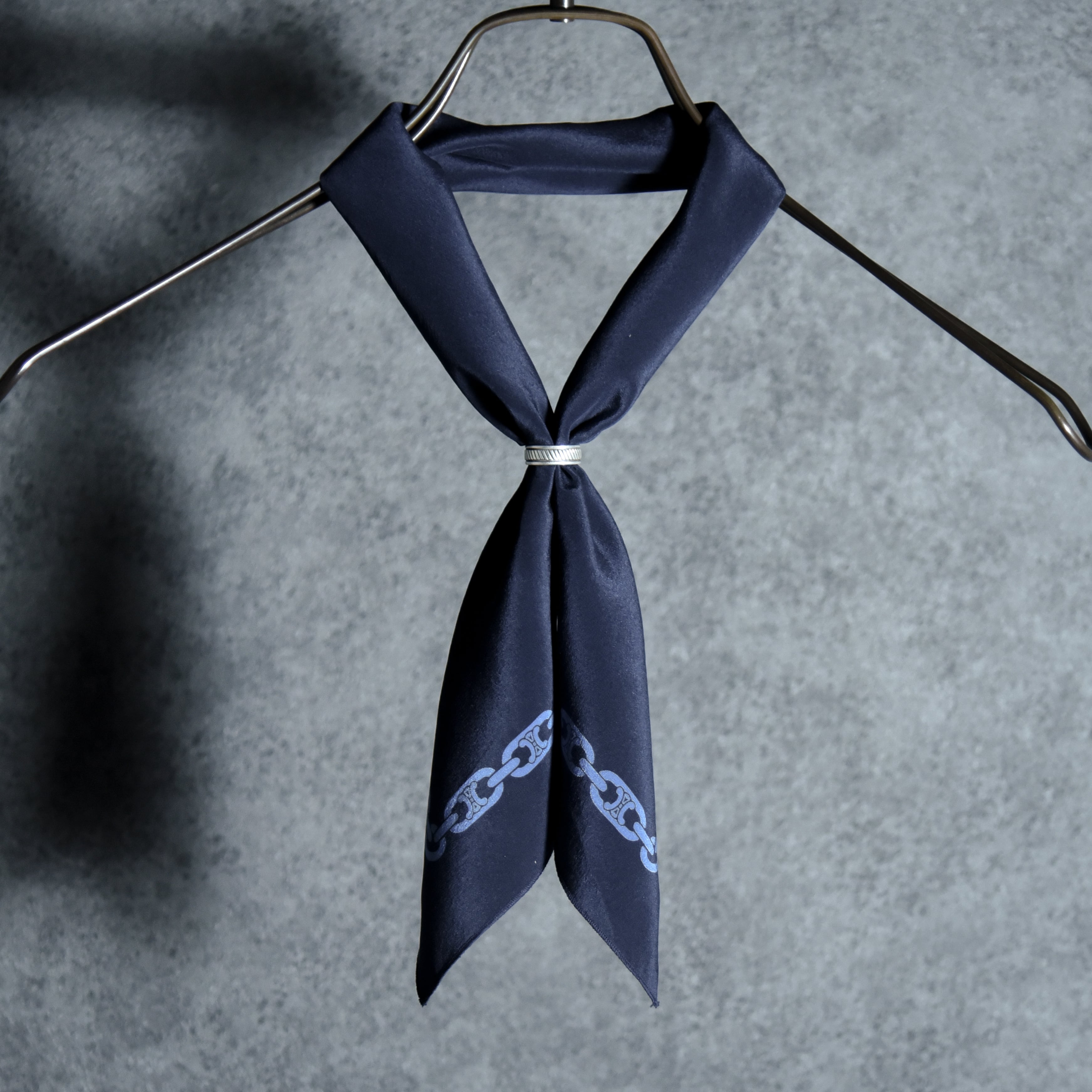 CELINE Vintage Silk Scarf Navy セリーヌ 大中判 シルク スカーフ ネイビー