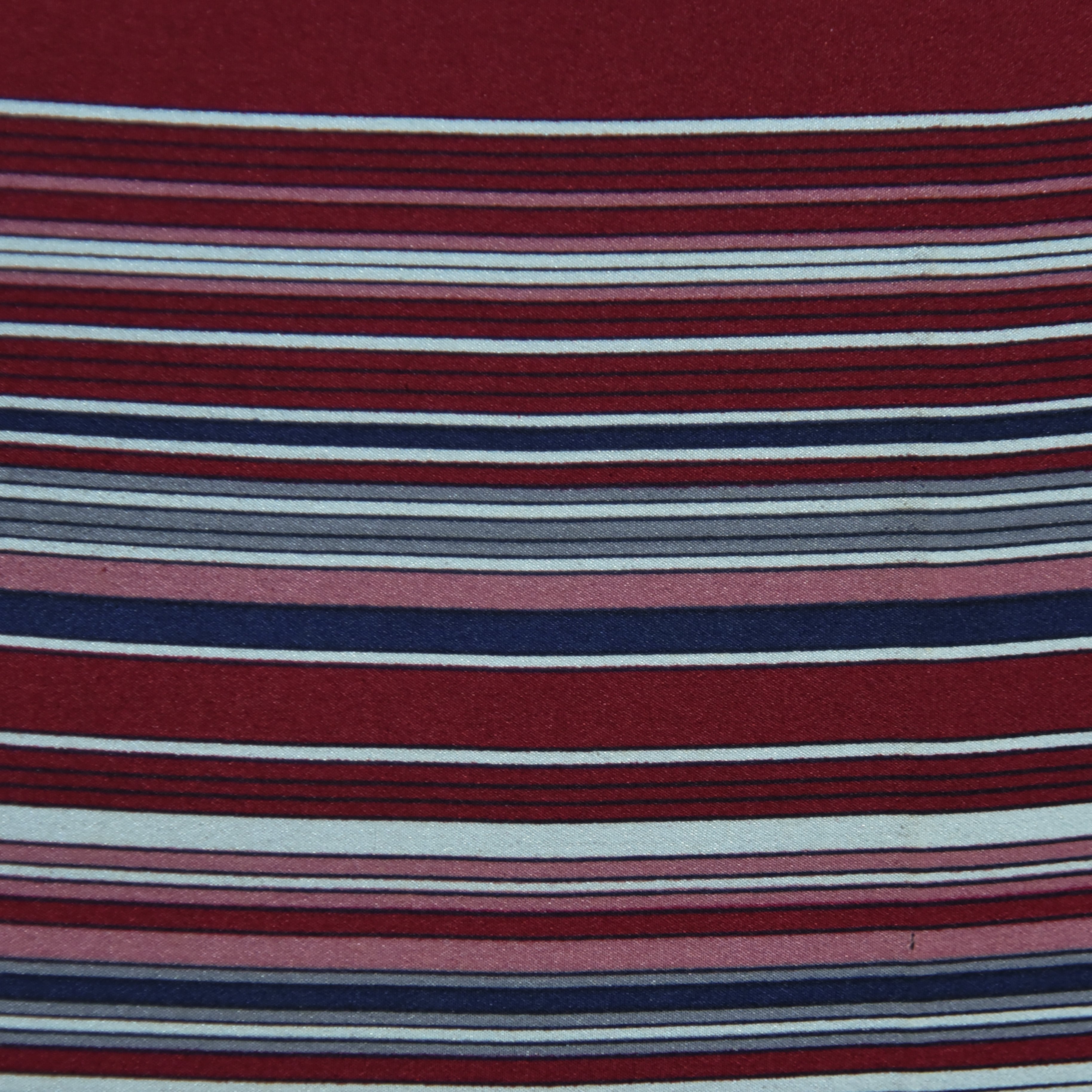 中央のマルチボーダーとネイビーの落ち着いた縁取りのバランスがいい定番柄で、コーディネートに派手すぎない上品なアクセントを加えてくれます。