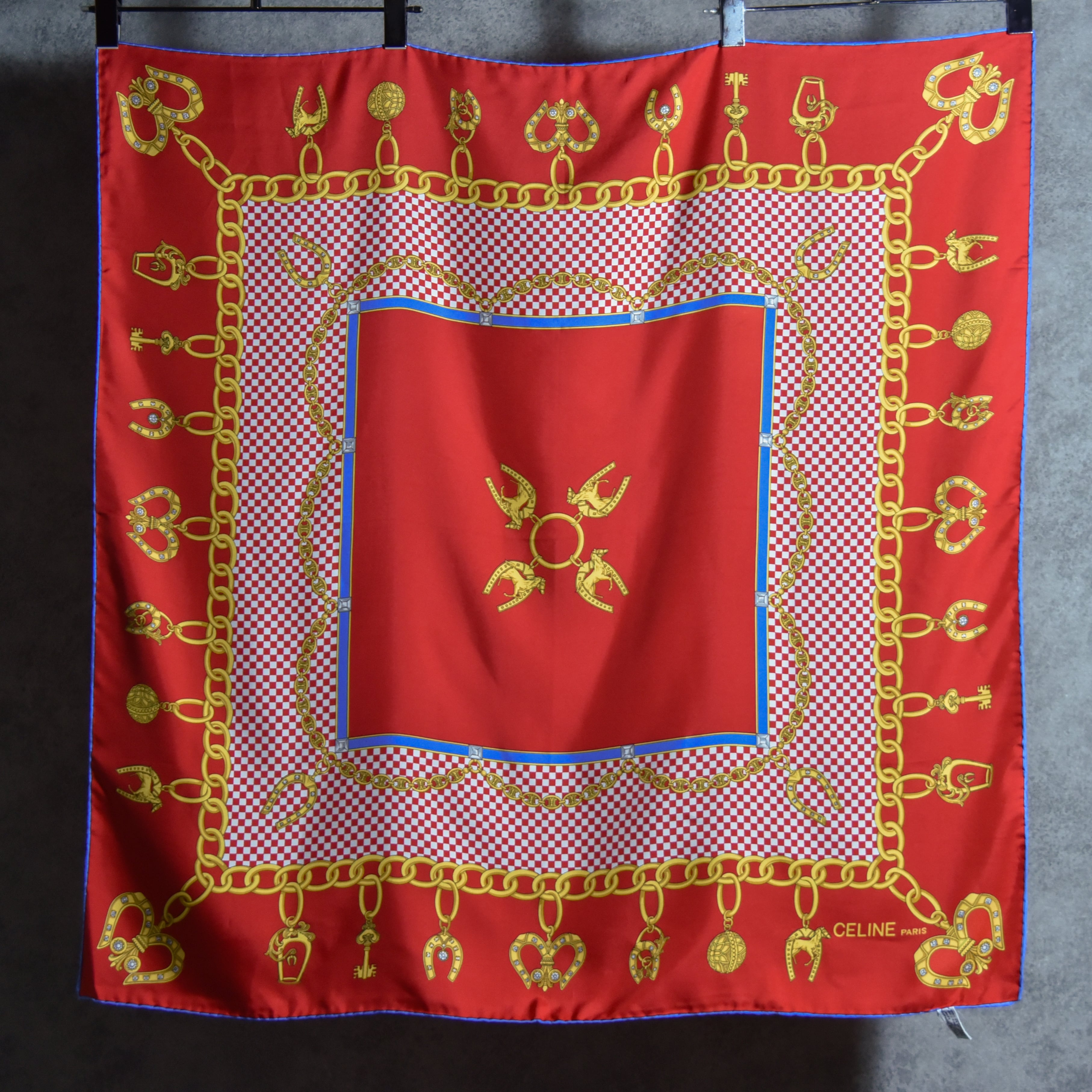 CELINE Vintage Silk Scarf Red セリーヌ 大判 シルク スカーフ レッド