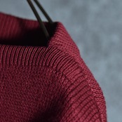 色は落ち着いたバーガンディで、ネイビーやブラックのアウターなどと合わせても相性の良さそうなカラーリング、襟元はボートネックで漁師達のワークウェアとしての象徴的なディテールの一着です。