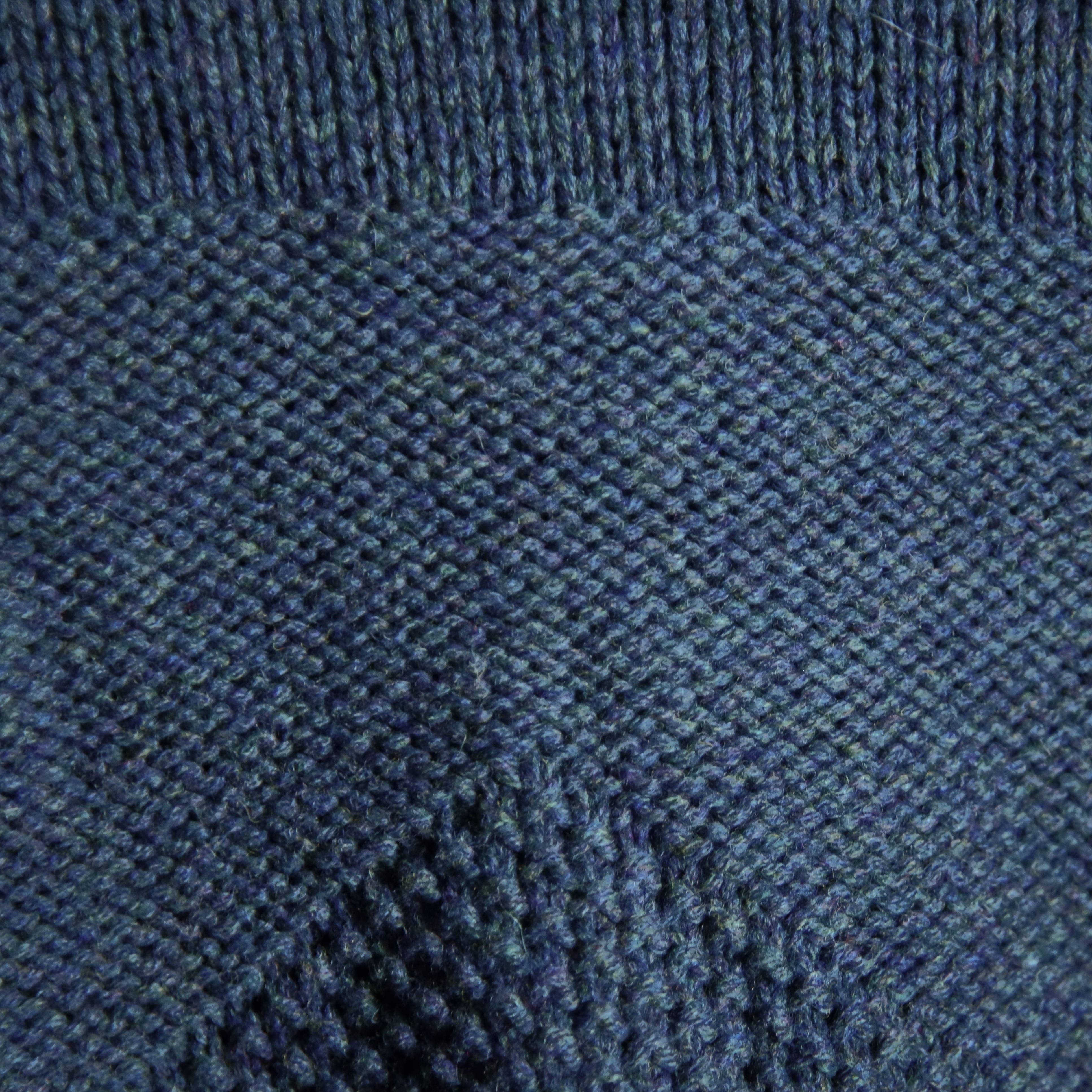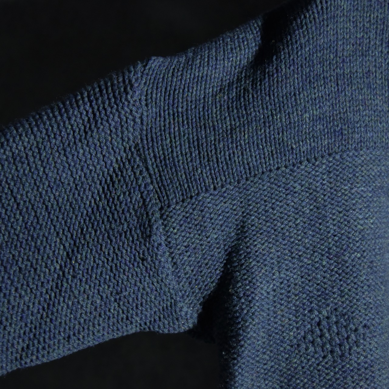素材は伝統的なイギリスのセーターによく見られる、羊毛を脱脂しないで使うナチュラルオイルドウールですが、オイルは抜けているためドライ風合いに変化しており、取り扱いが楽なところもポイントです。