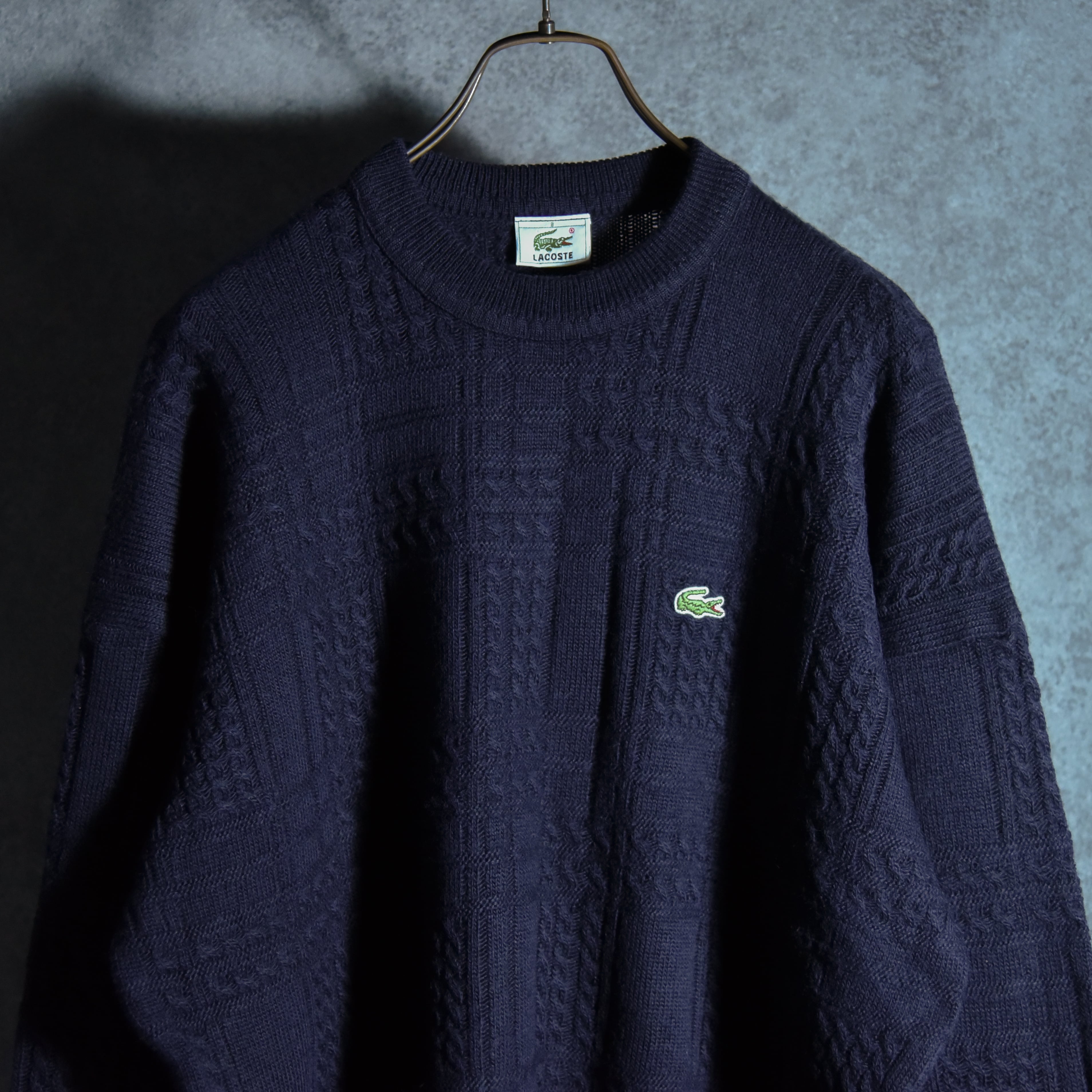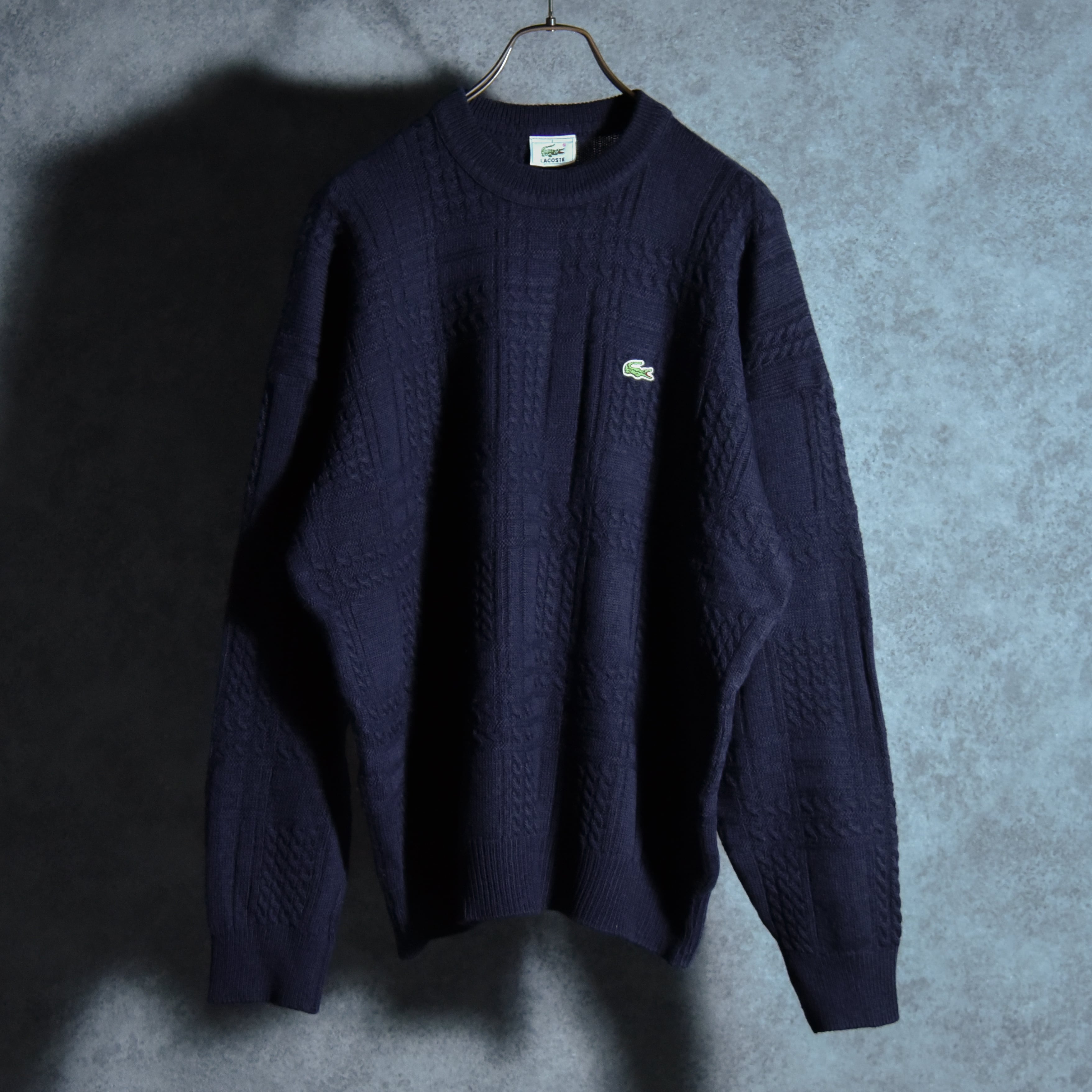 80-90s LACOSTE Crew-neck Sweater ラコステ 地柄 クルーネック セーター