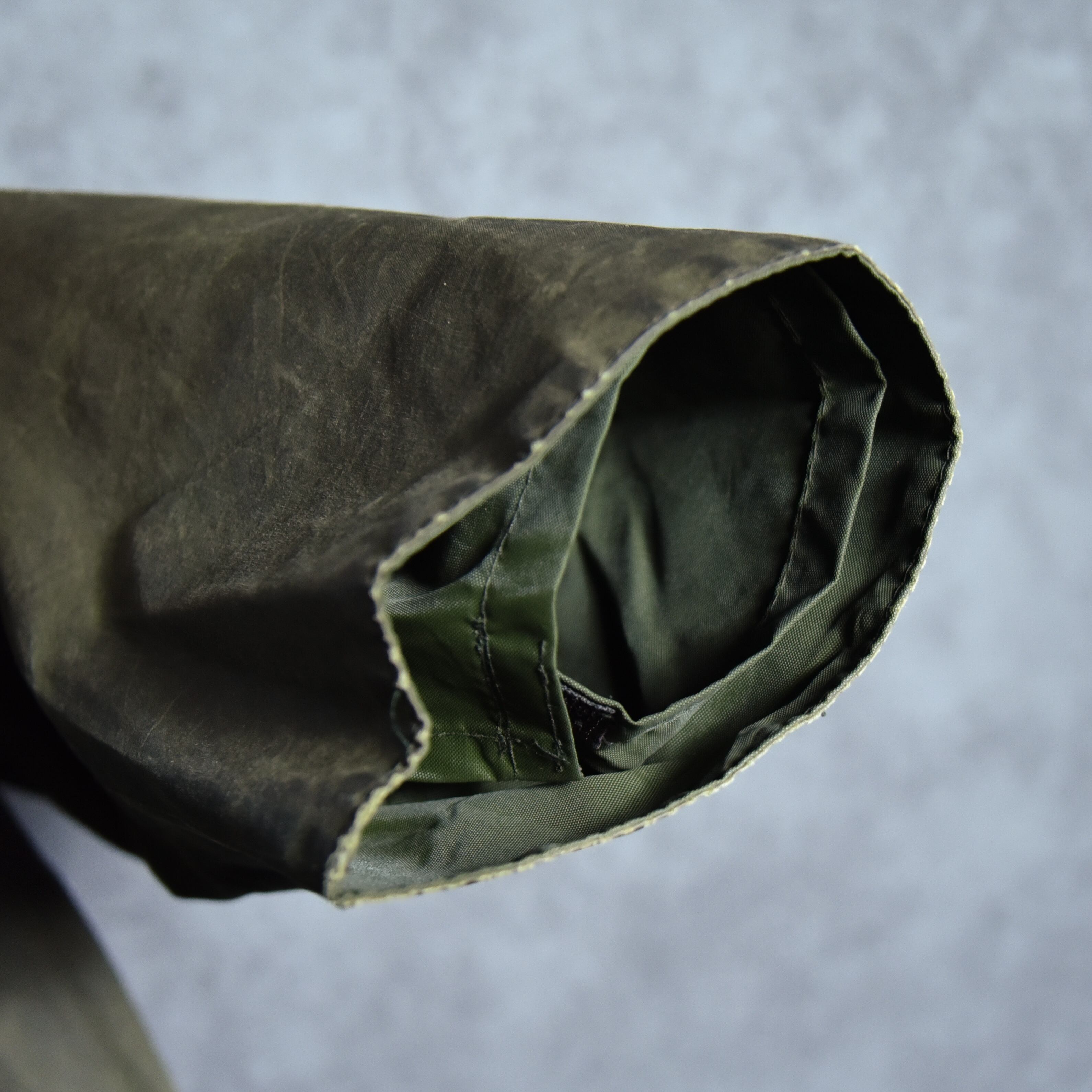 アウトドアなどハードな用途で着用されるため、状態の良いものになかなか出逢えないヴィンテージバブアーですが極端なベタつきや反対にカサつきもなく、オイルの状態も良好ですなコンディションの良い一着です。