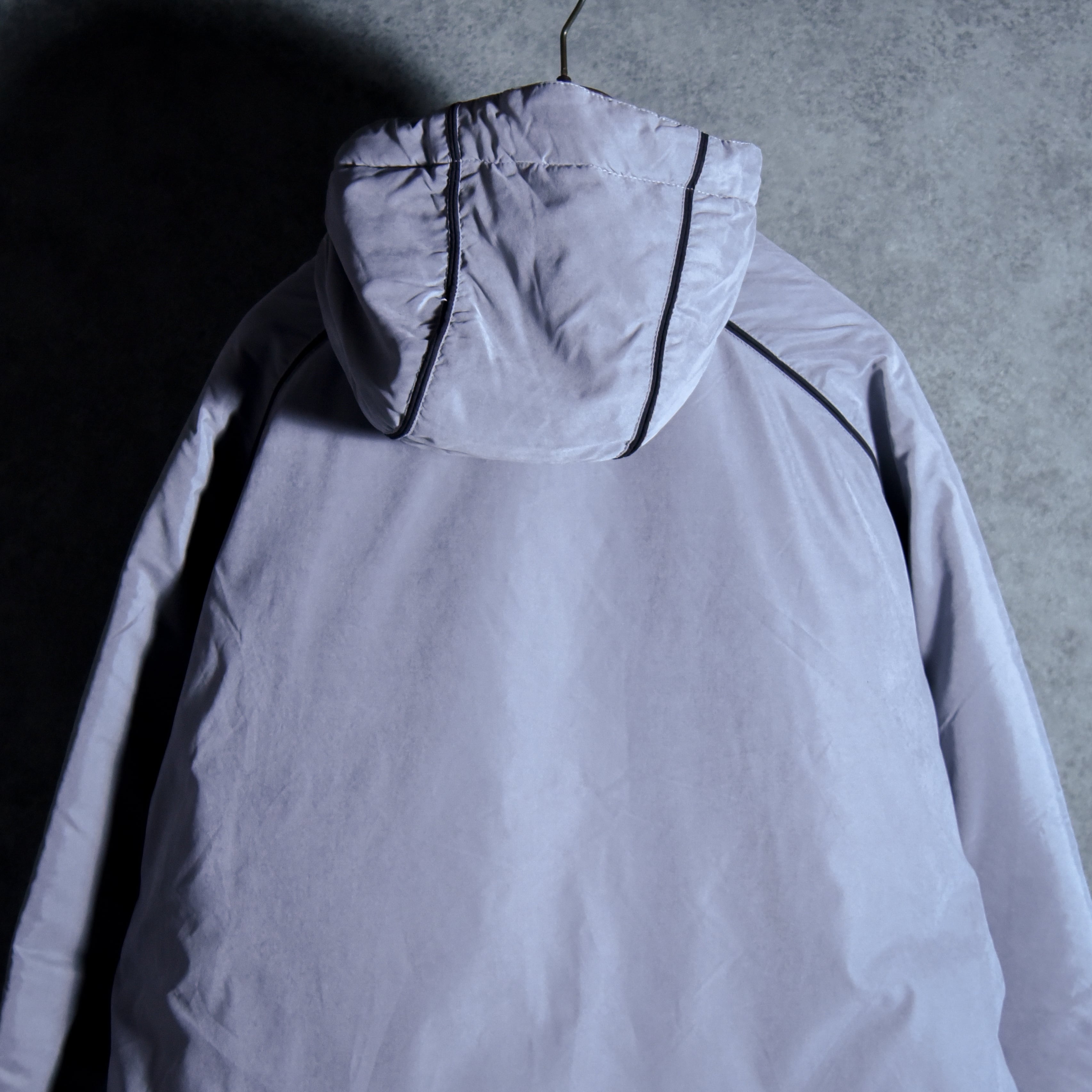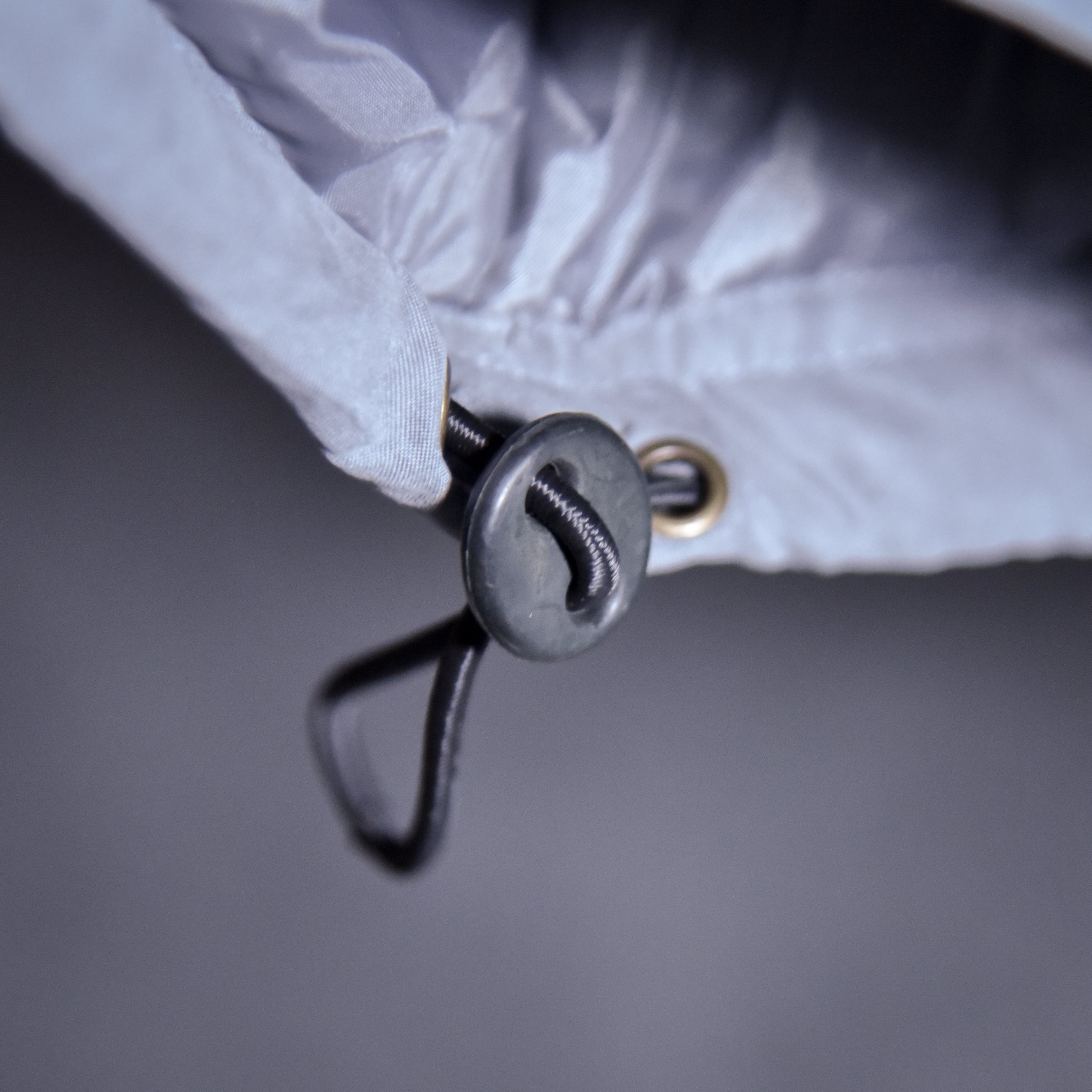 見た目からも暖かさが伝わるほどたっぷりと綿が入り、袖口のシャーリングゴムと裾とフードのドローコードにより、外気をシャットアウトし中の暖気を逃がさない合理的な構造で、なおかつ裾を絞ることでシルエット変化も楽しめます。