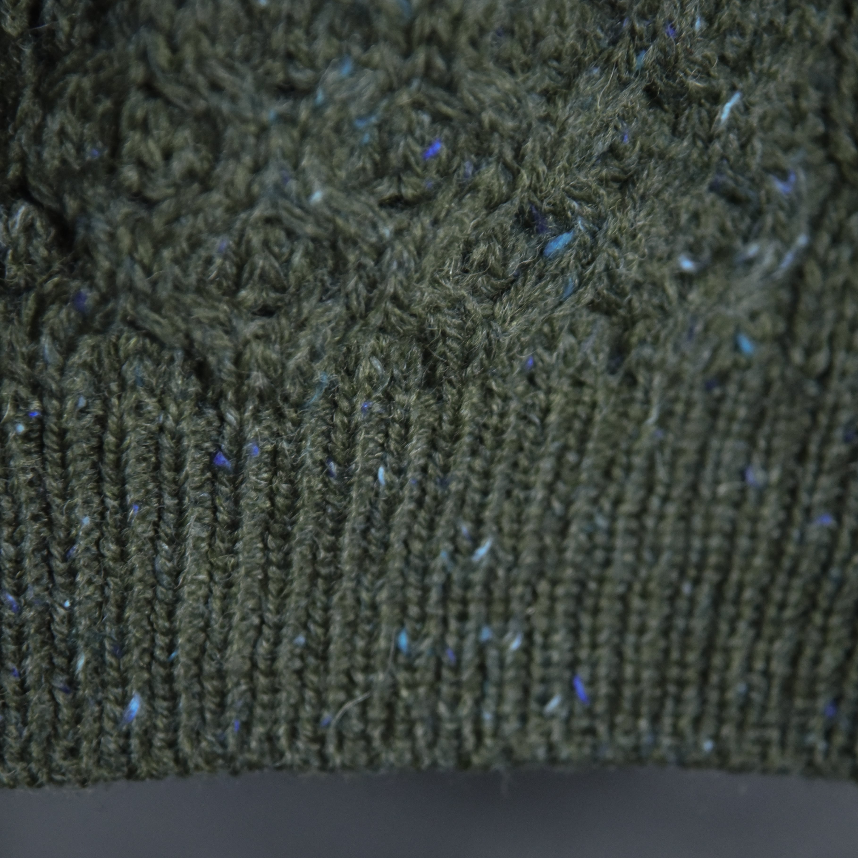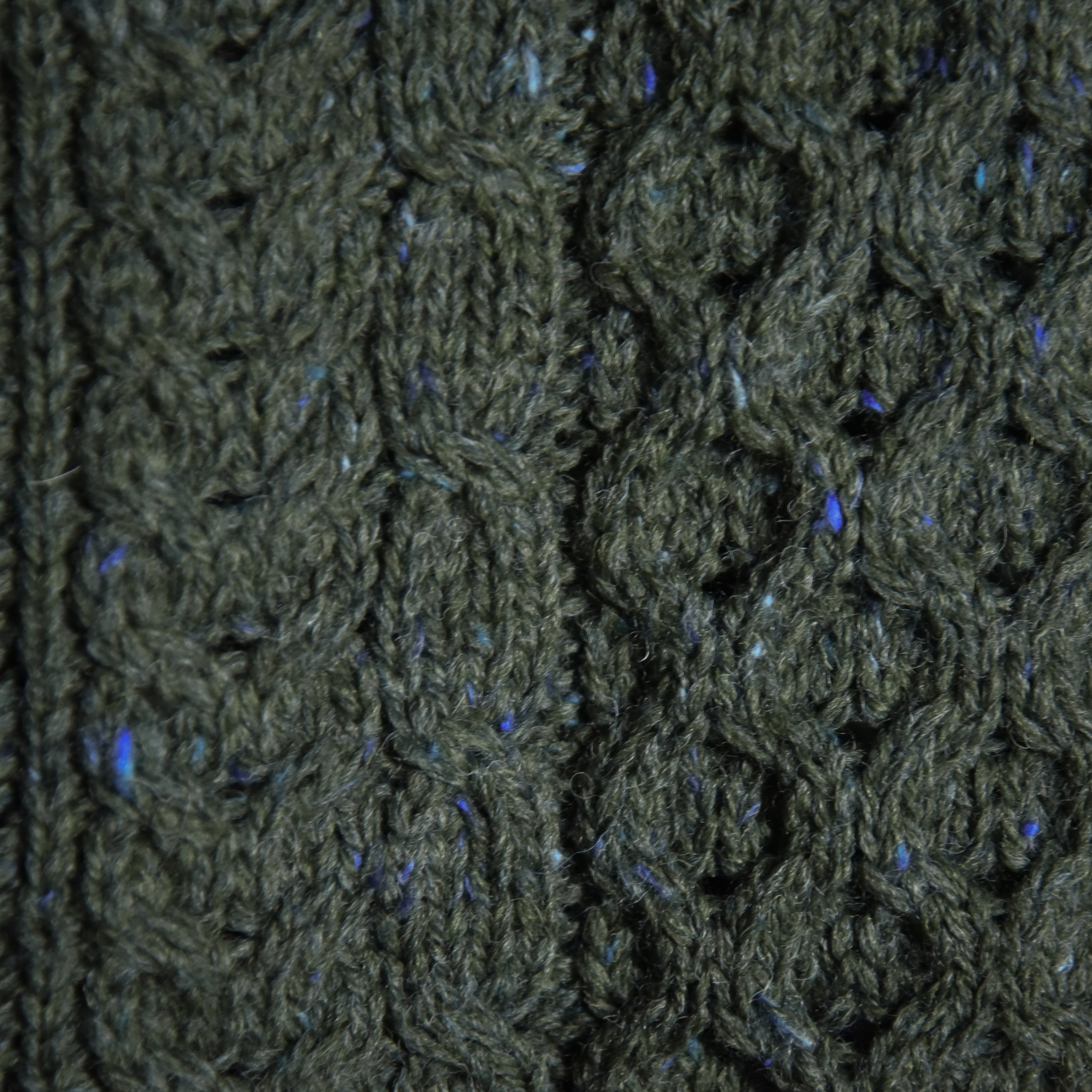 素材はピュアニューウール100%でしっかりと重みがあり、ウール本来の暖かみと素朴な風合いが活きた、この年代のアイルランド製ならではの上質な糸、編み地が特徴です。