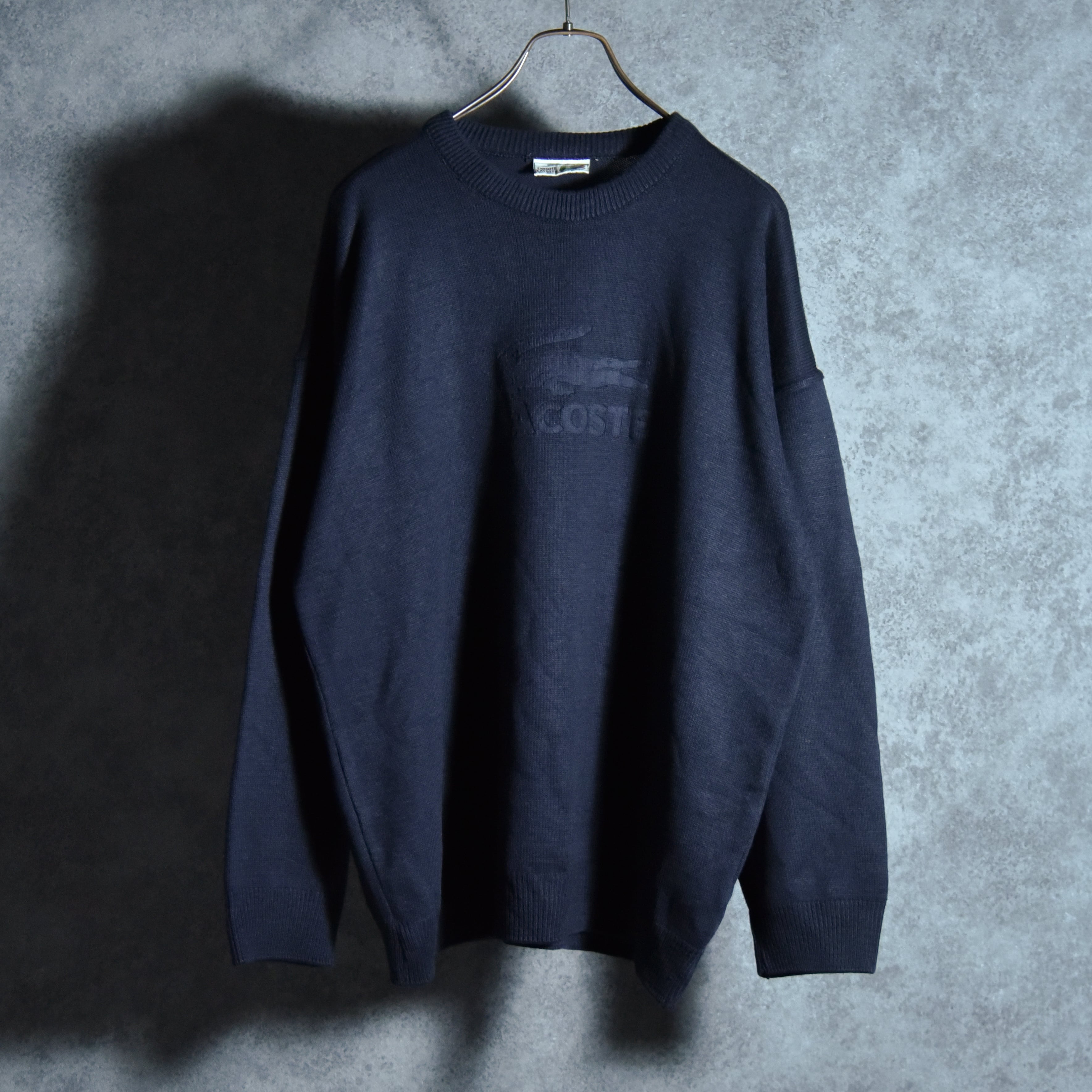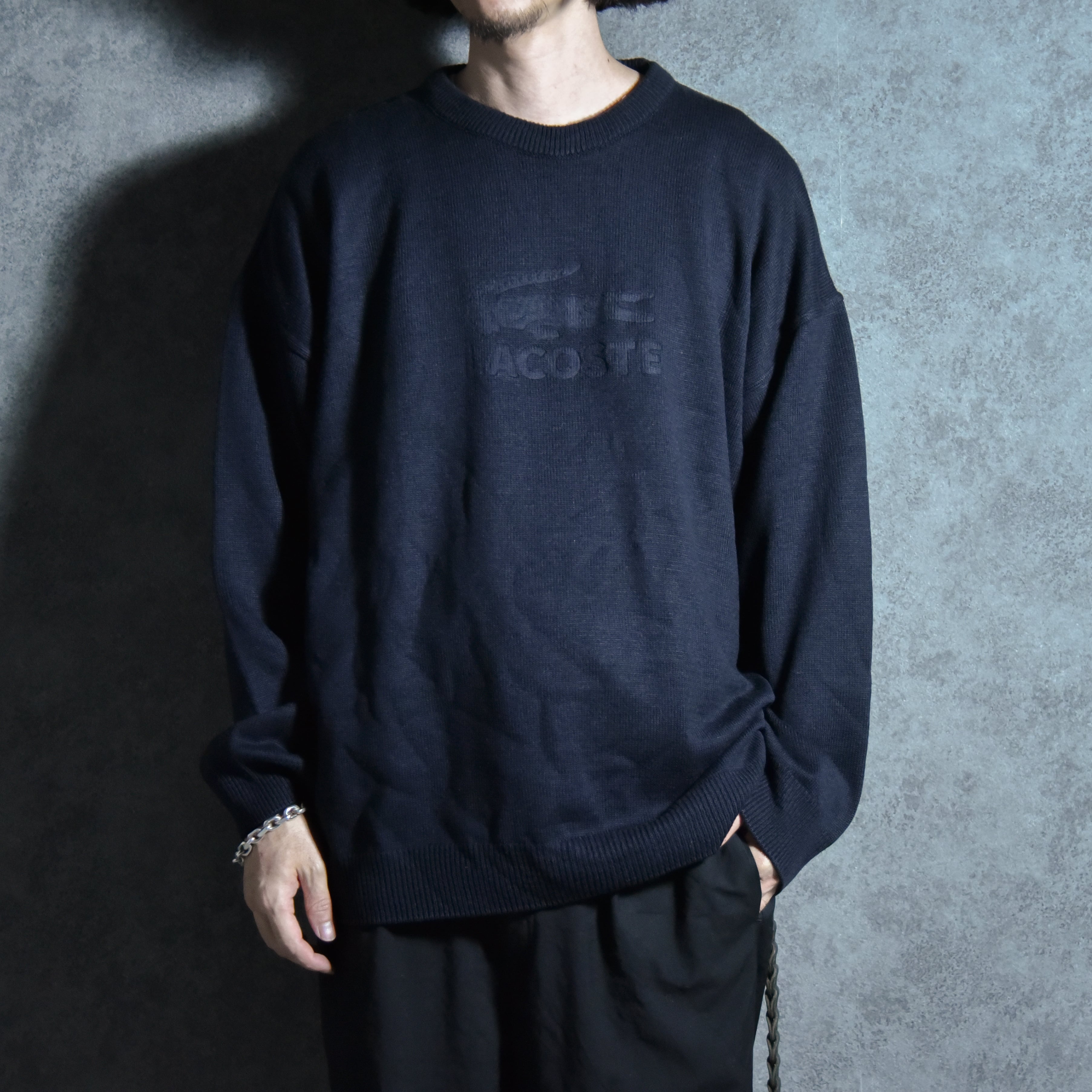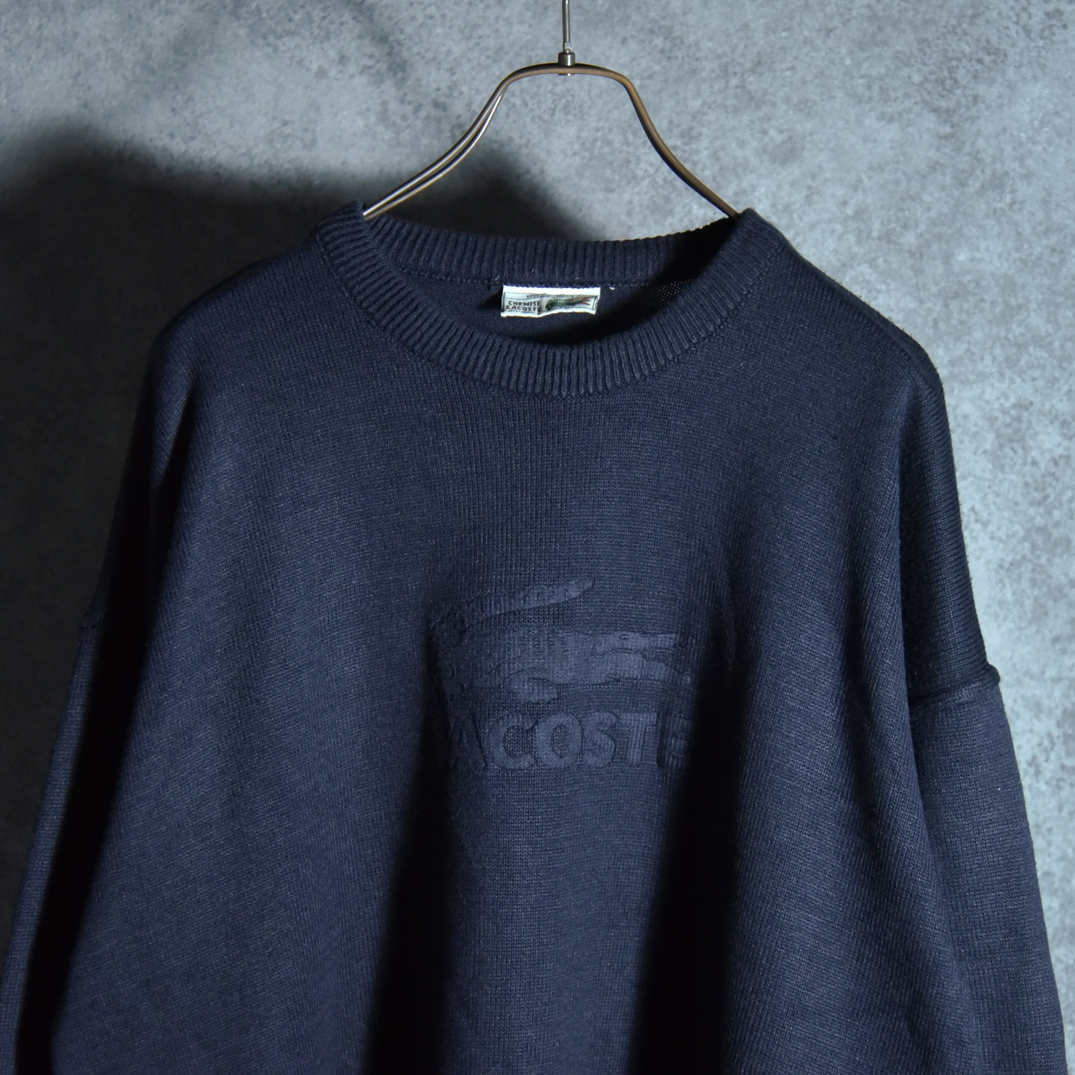 70s LACOSTE Franch Crew Neck Cotton Knit Sweater Black フレンチ ラコステ ウール クルーネック コットン ニット セーター ブラック