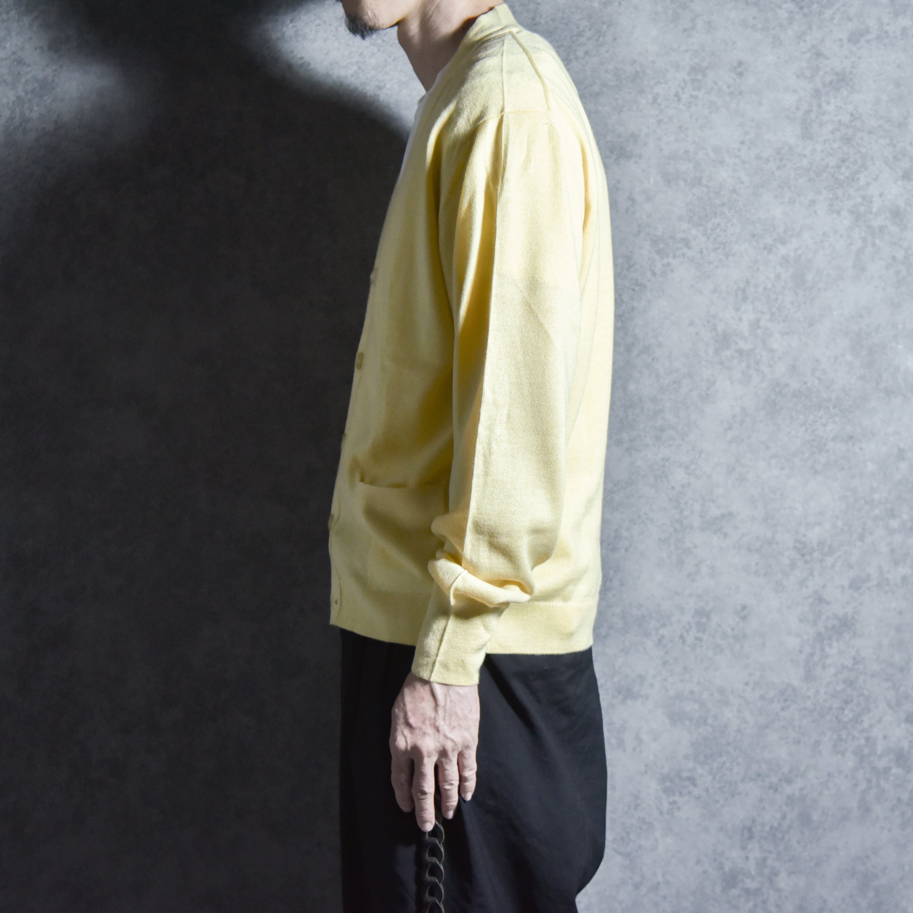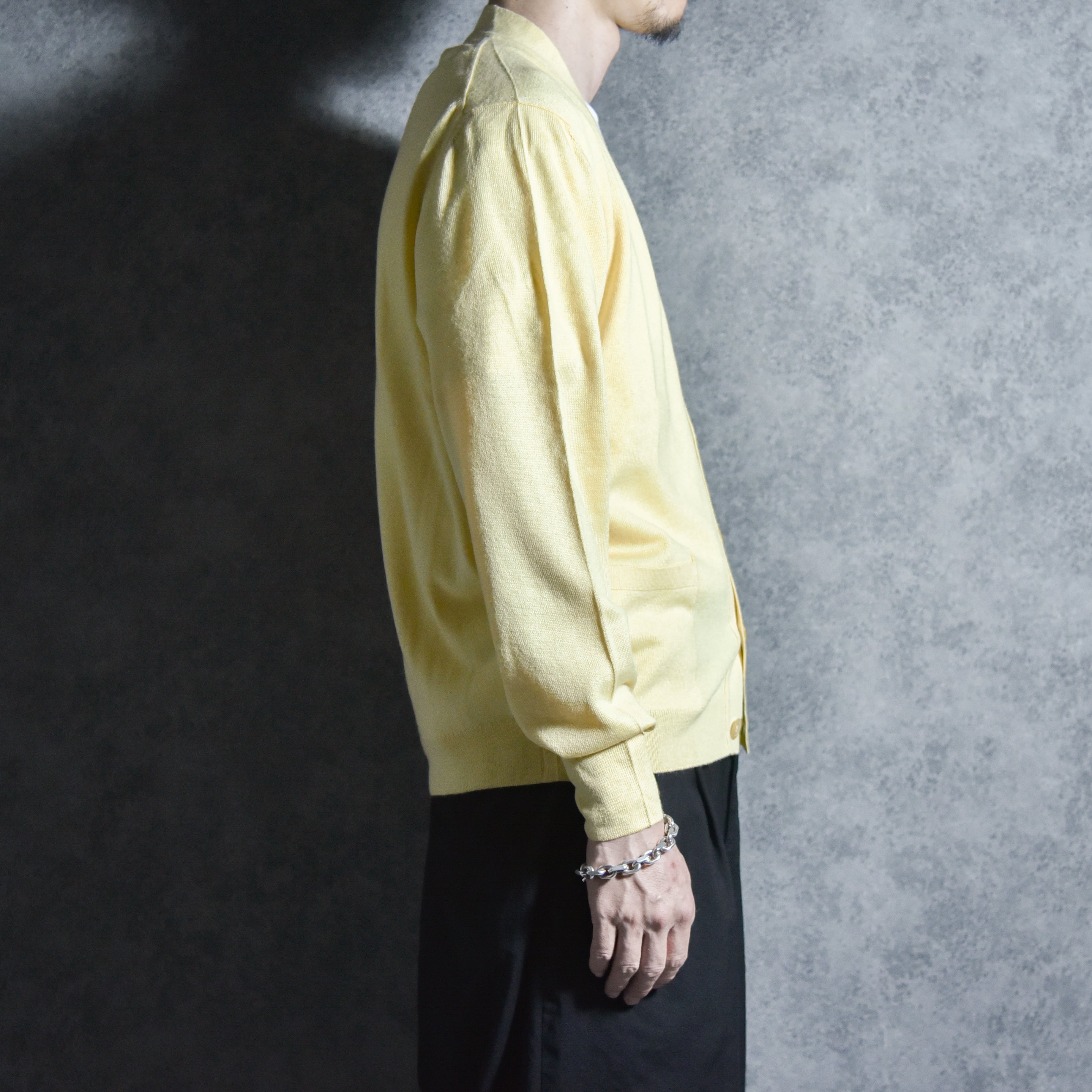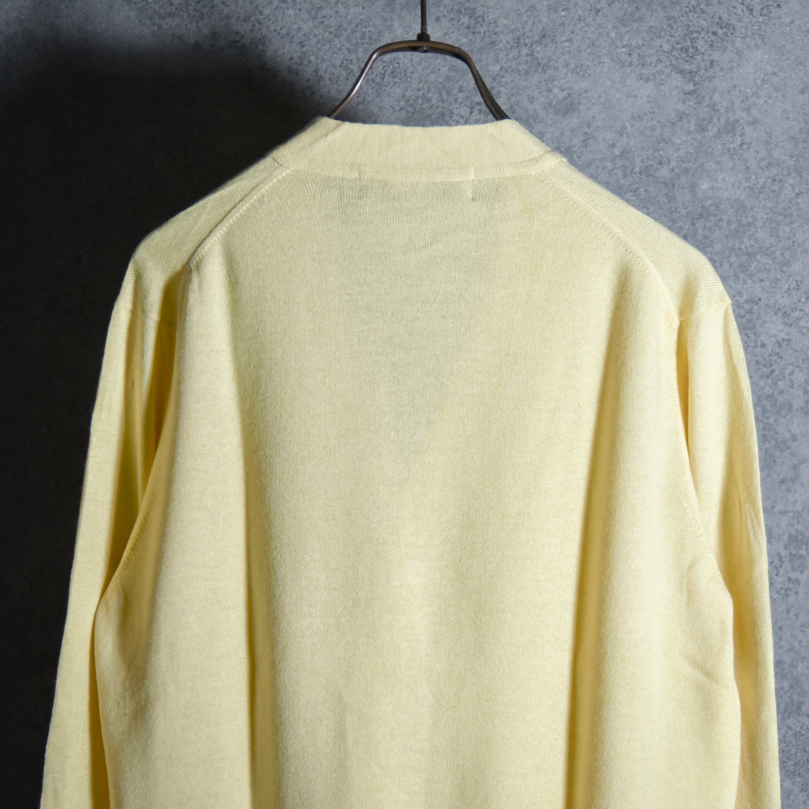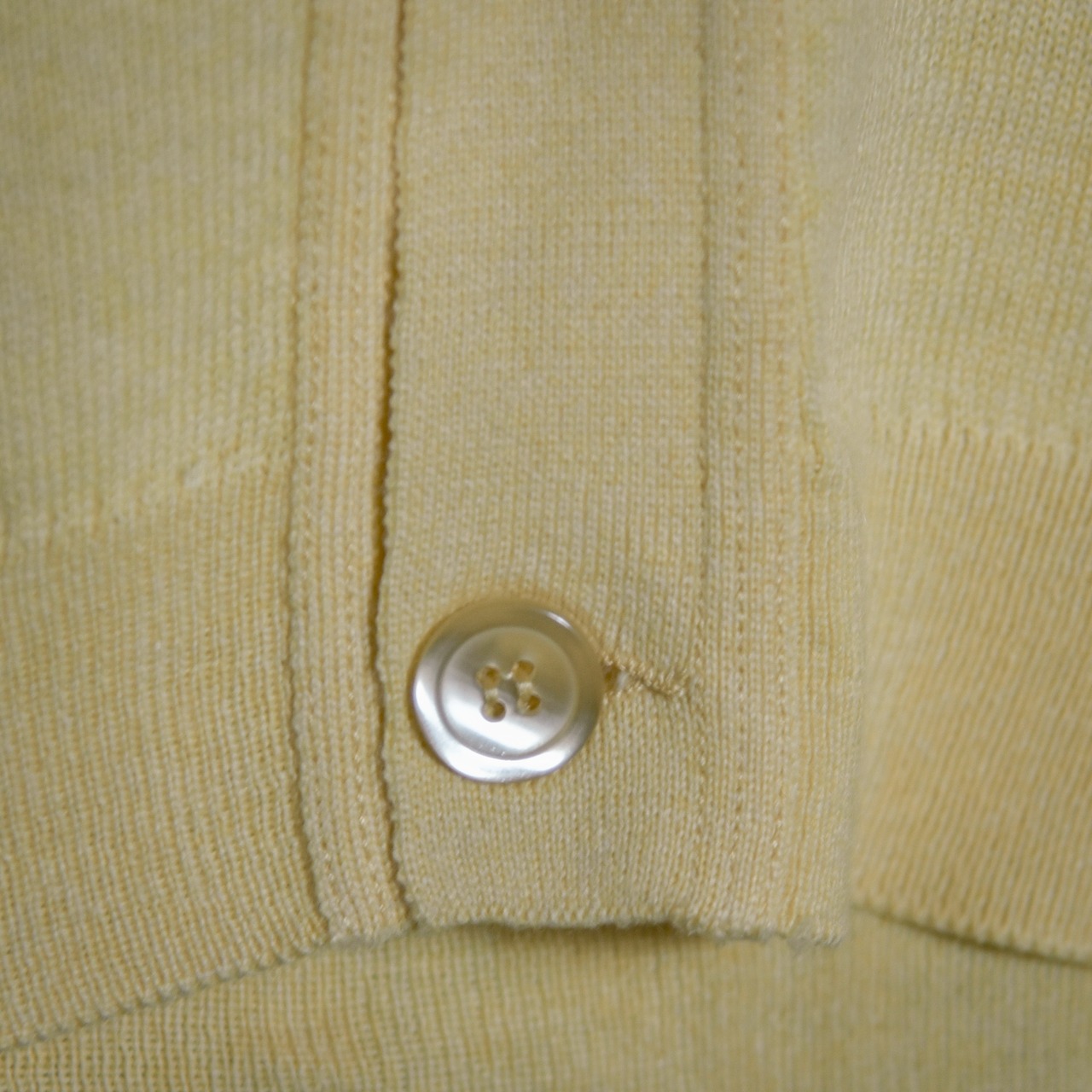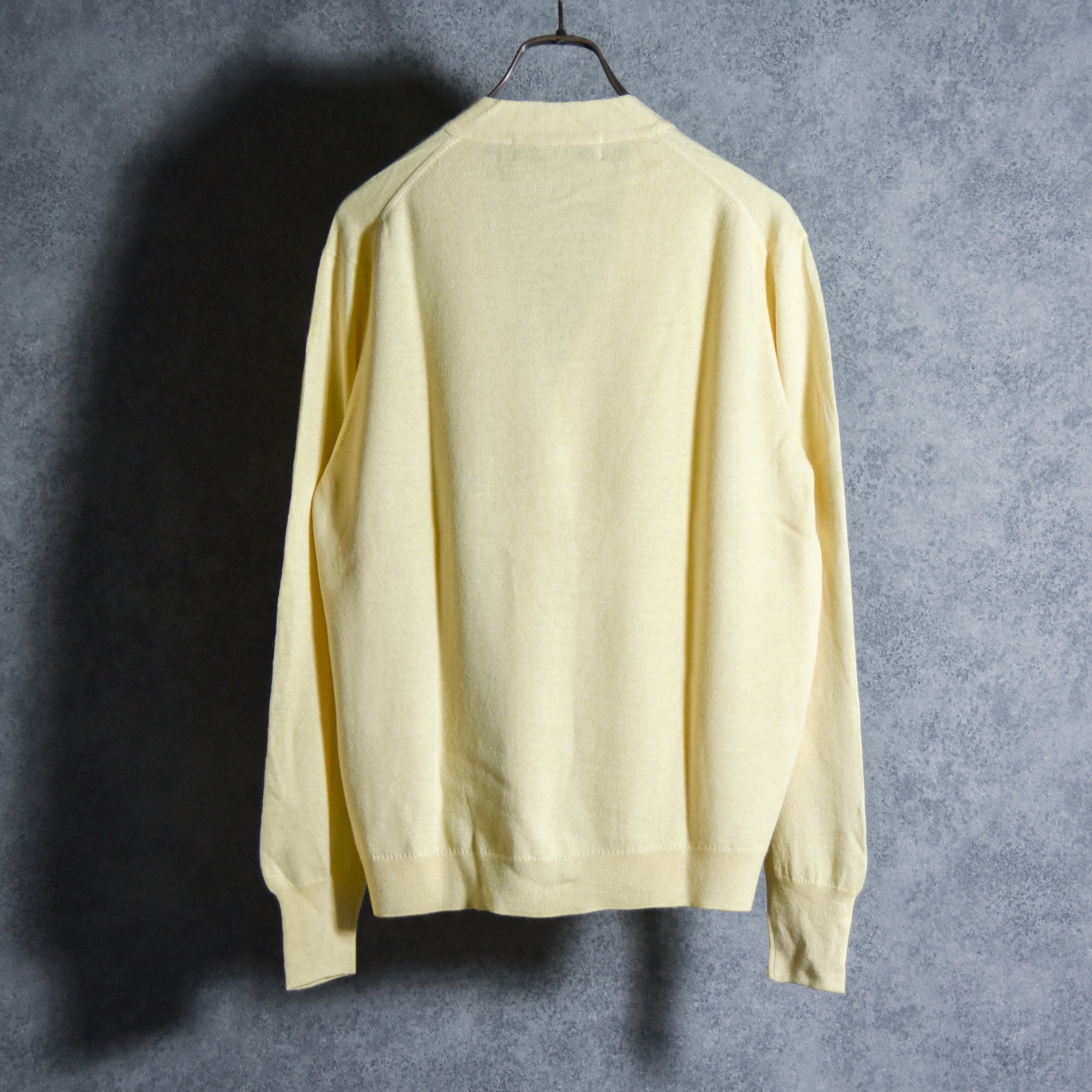 使いやすいVネックのカーディガンで、シングルリブの前立てに袖口やポケット付きのデザインなど、シンプルながらこれぞヨーロッパのニット黄金期といった丁寧な作りが特徴です。