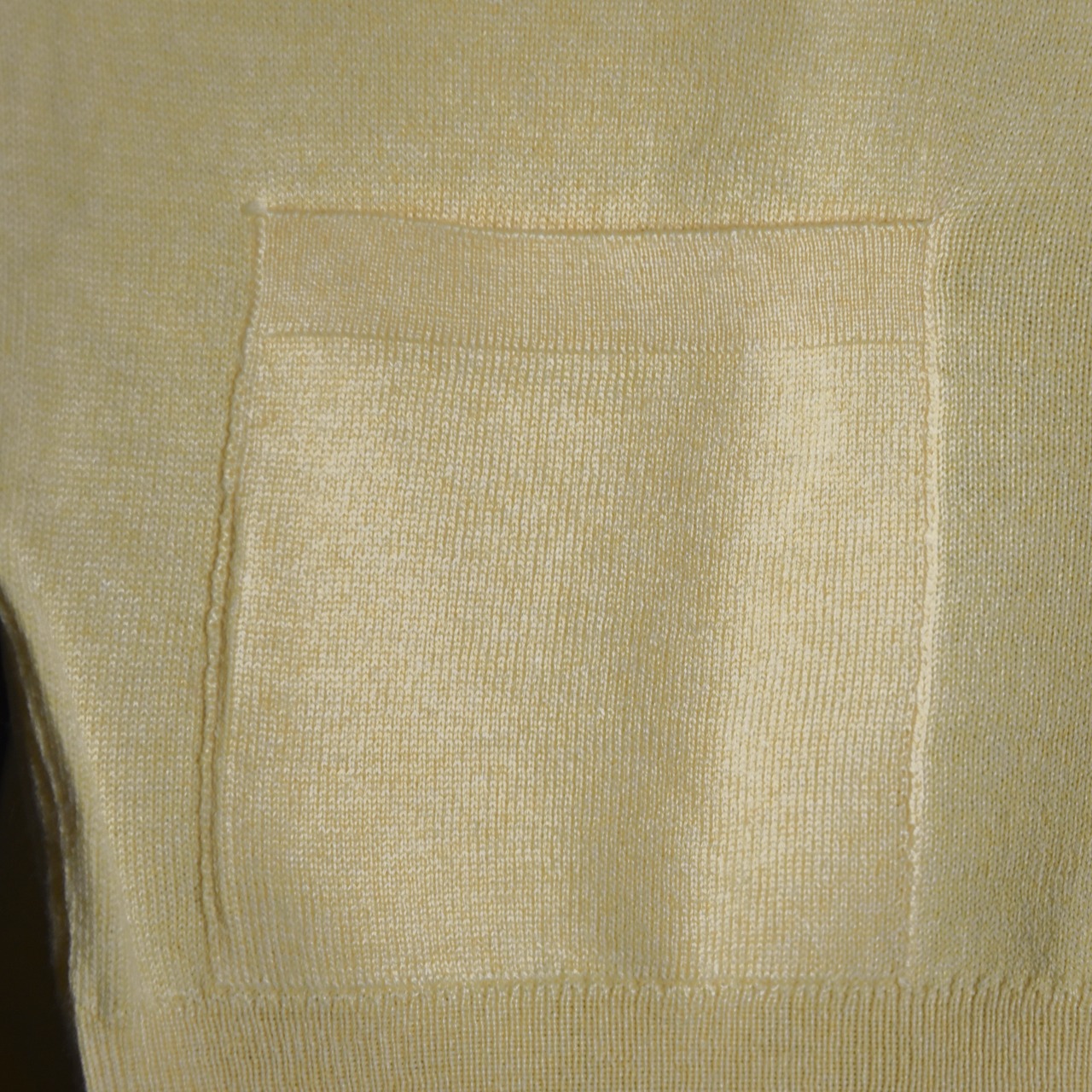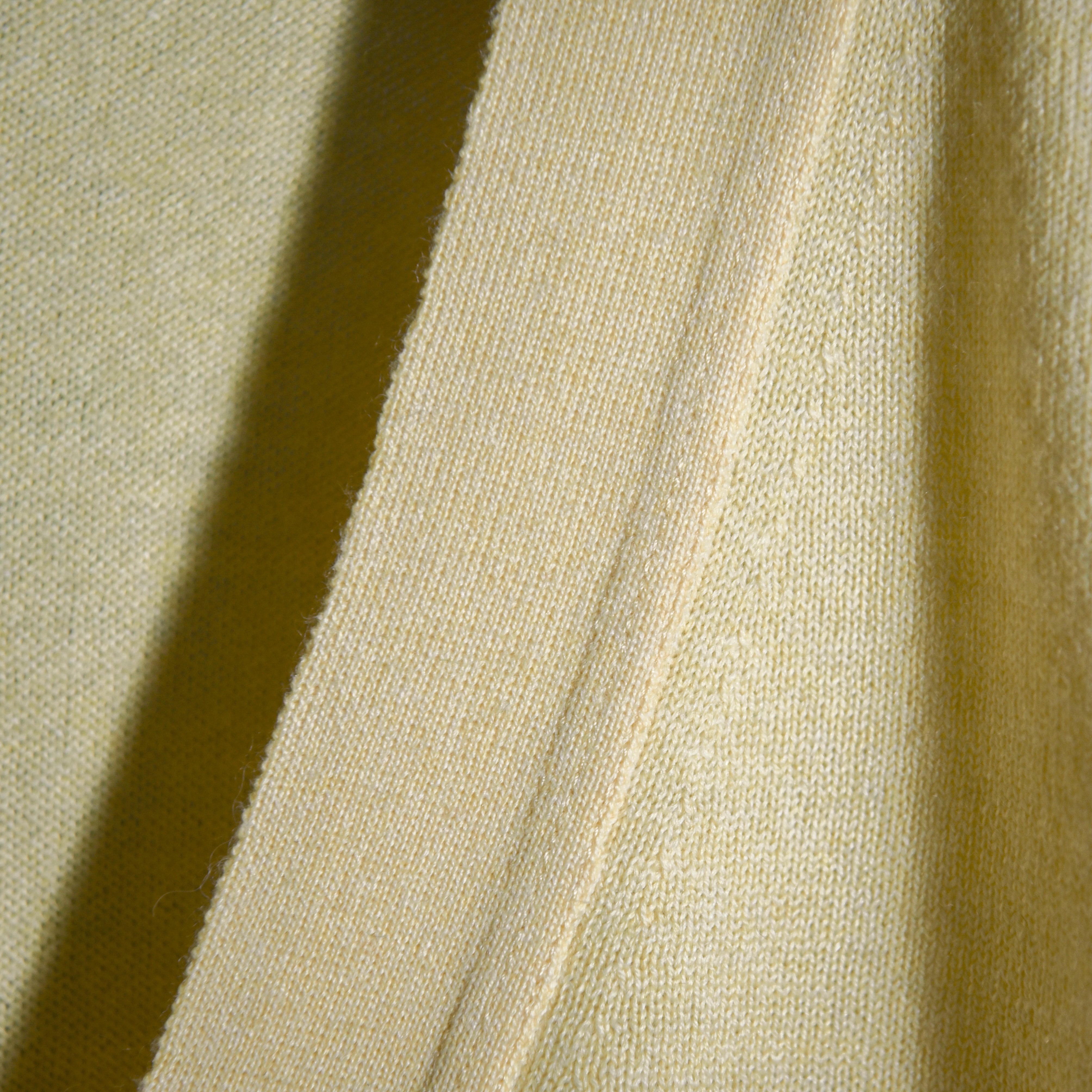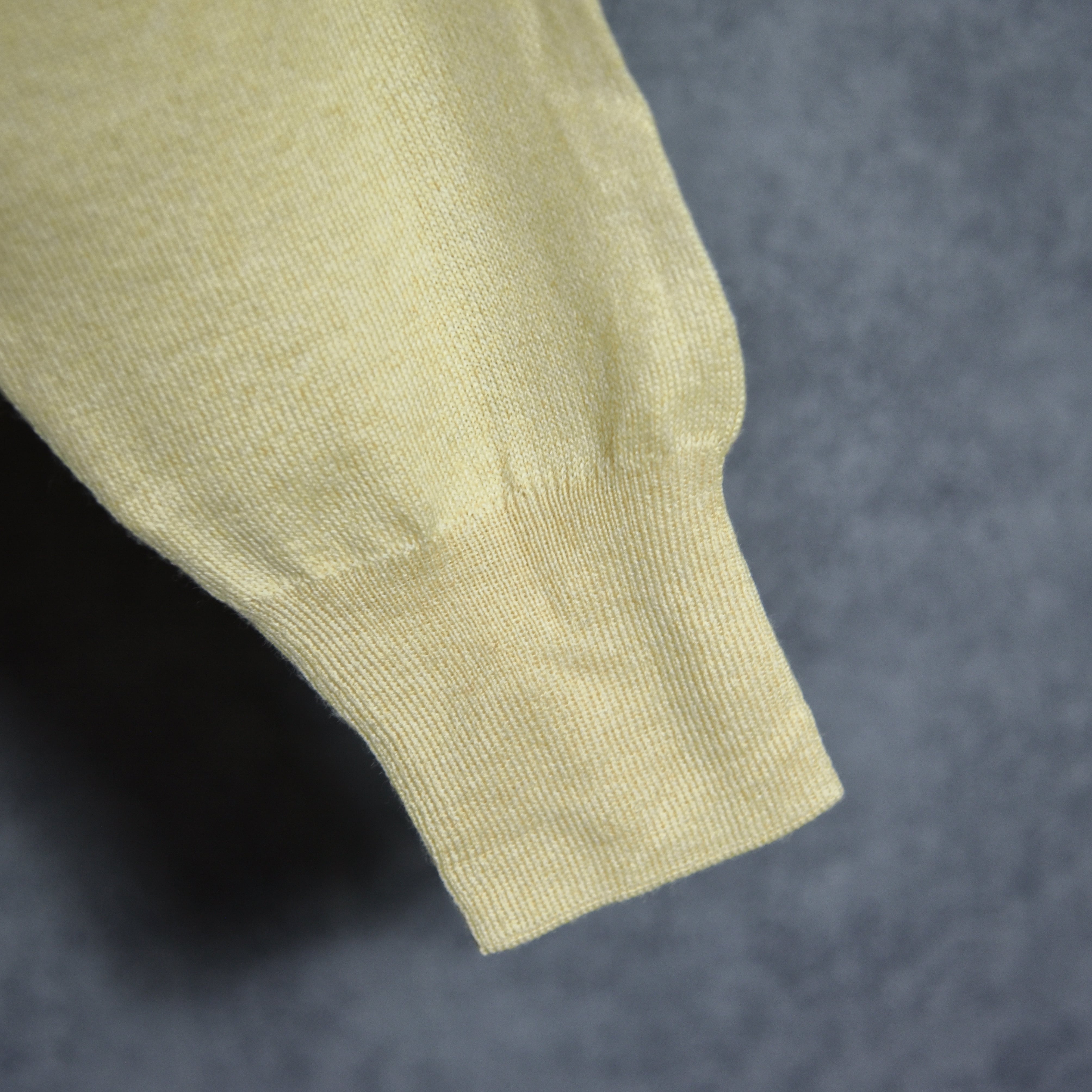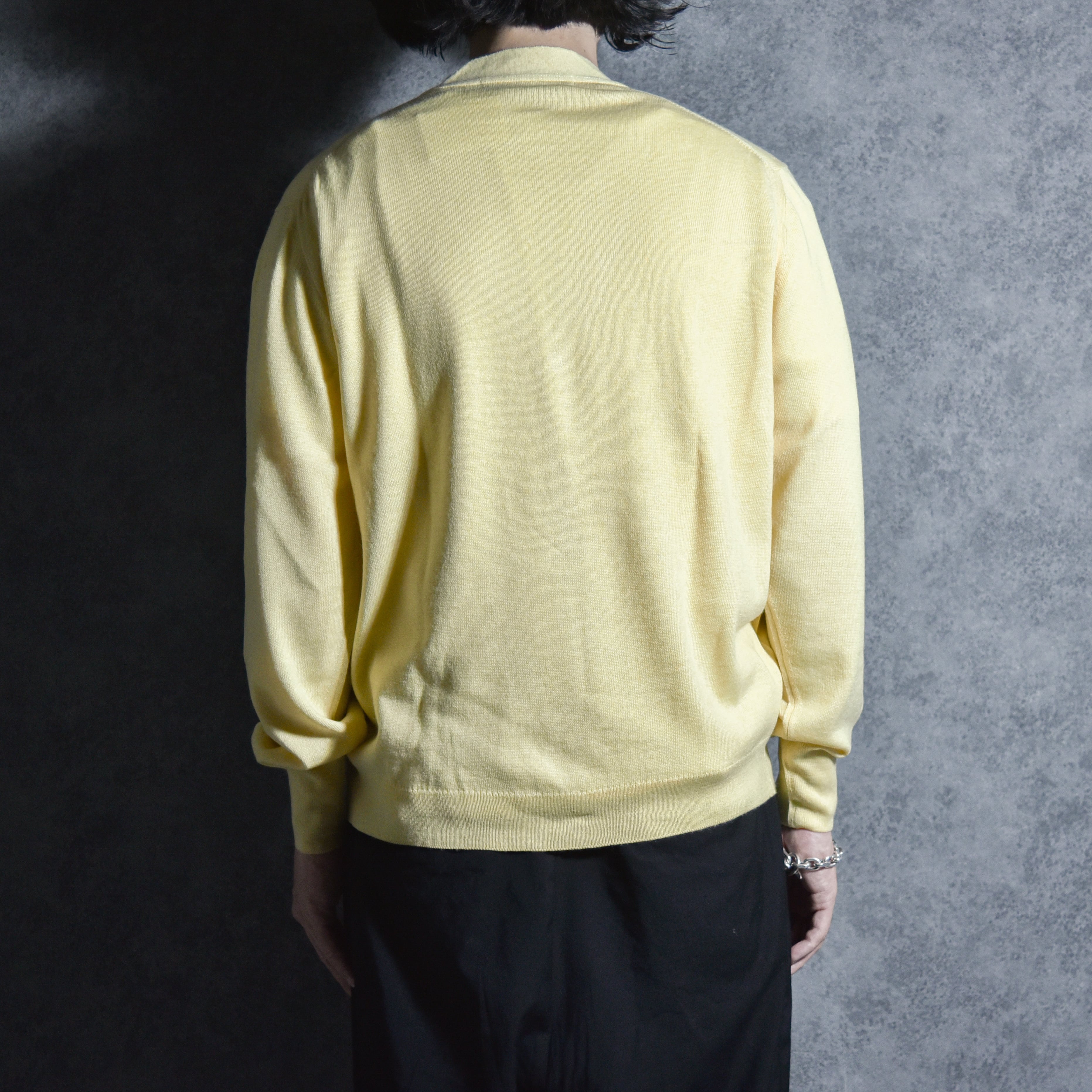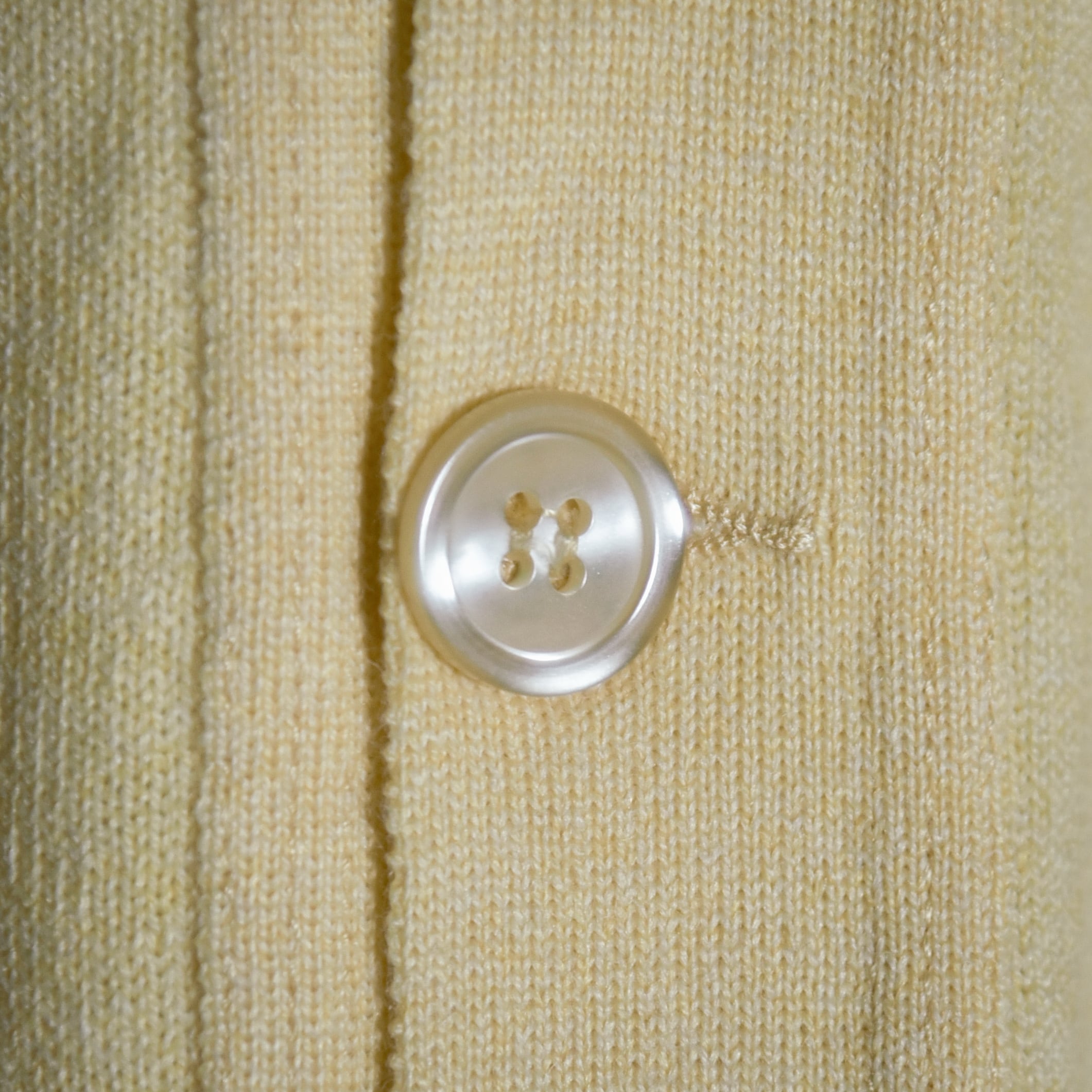 使いやすいVネックのカーディガンで、シングルリブの前立てに袖口やポケット付きのデザインなど、シンプルながらこれぞヨーロッパのニット黄金期といった丁寧な作りが特徴です。