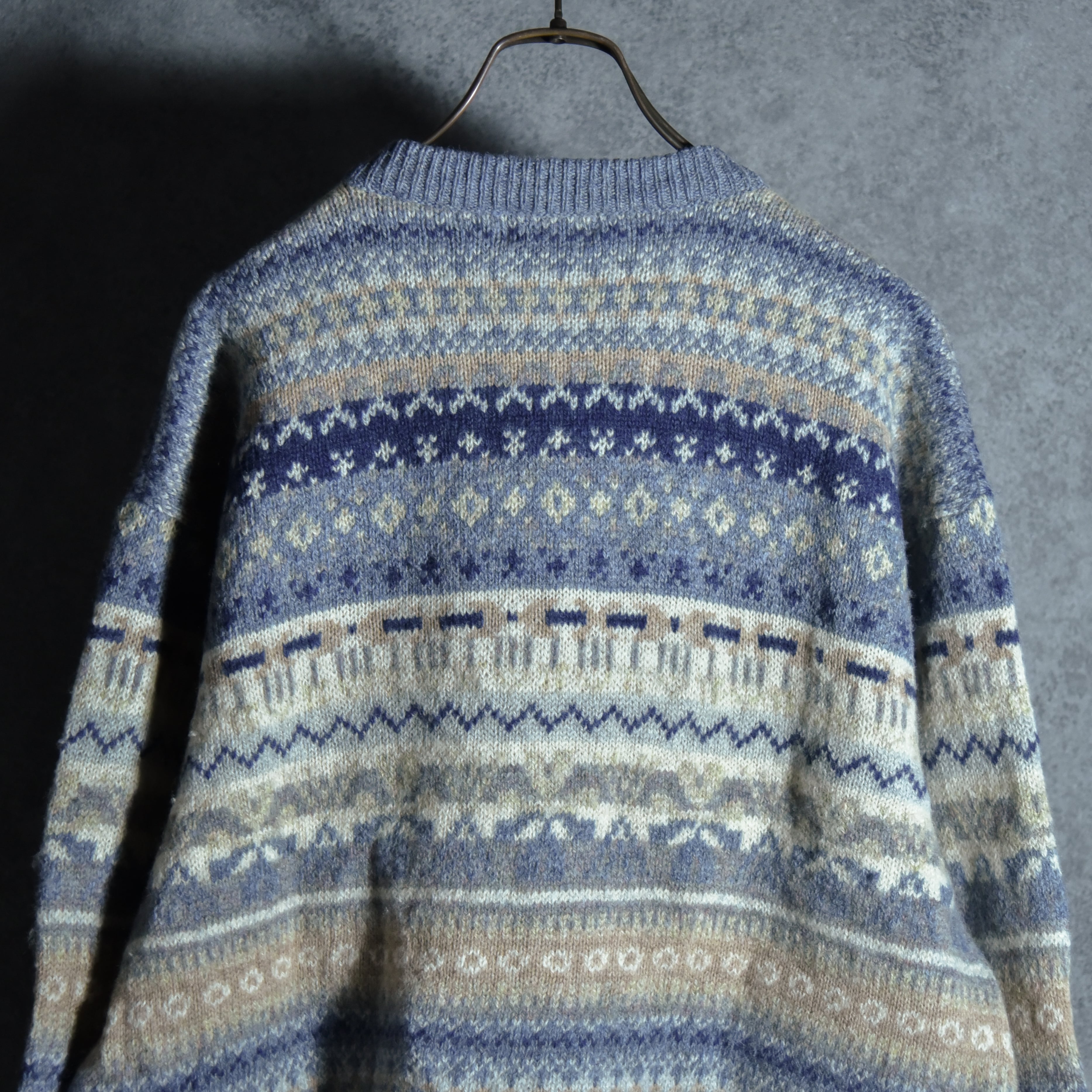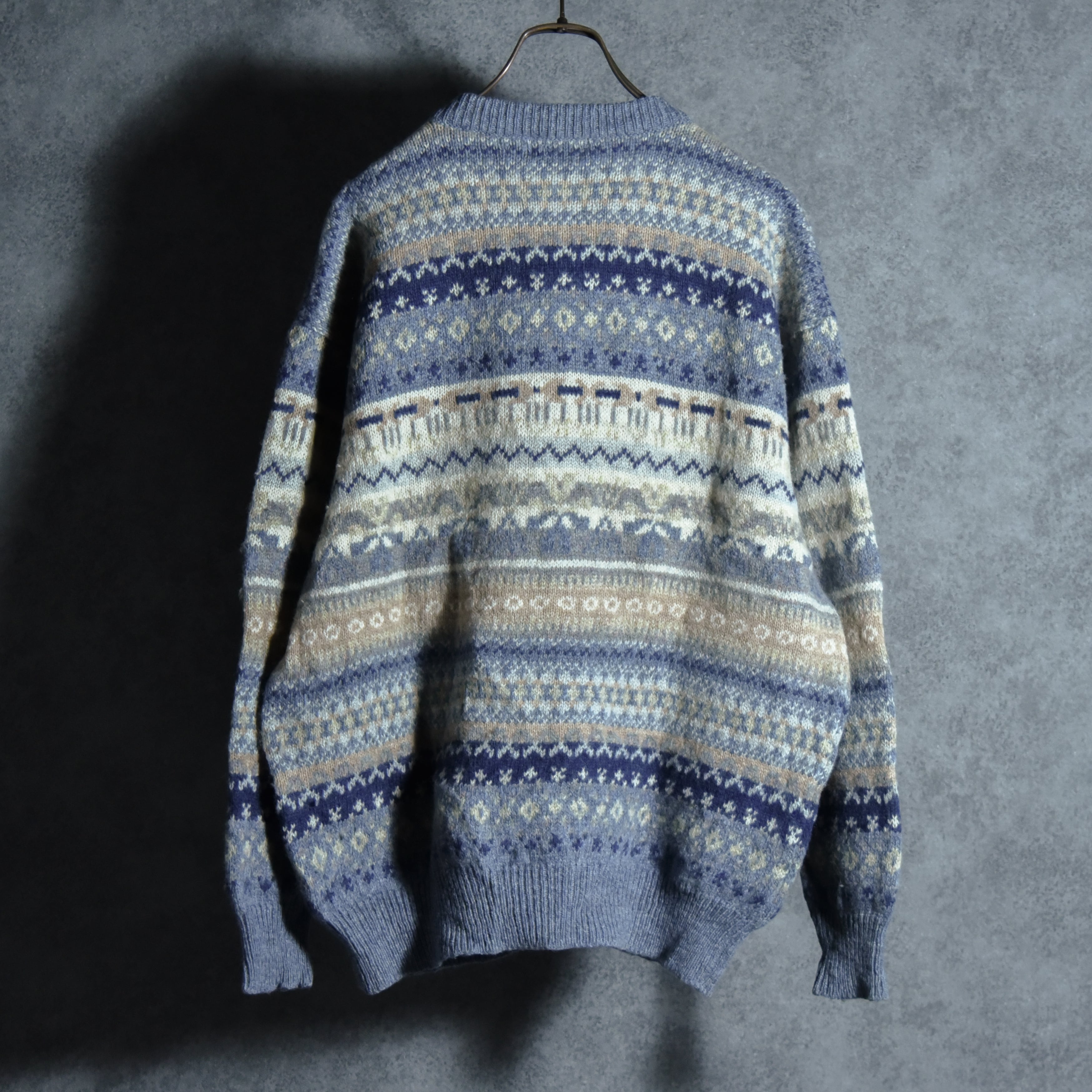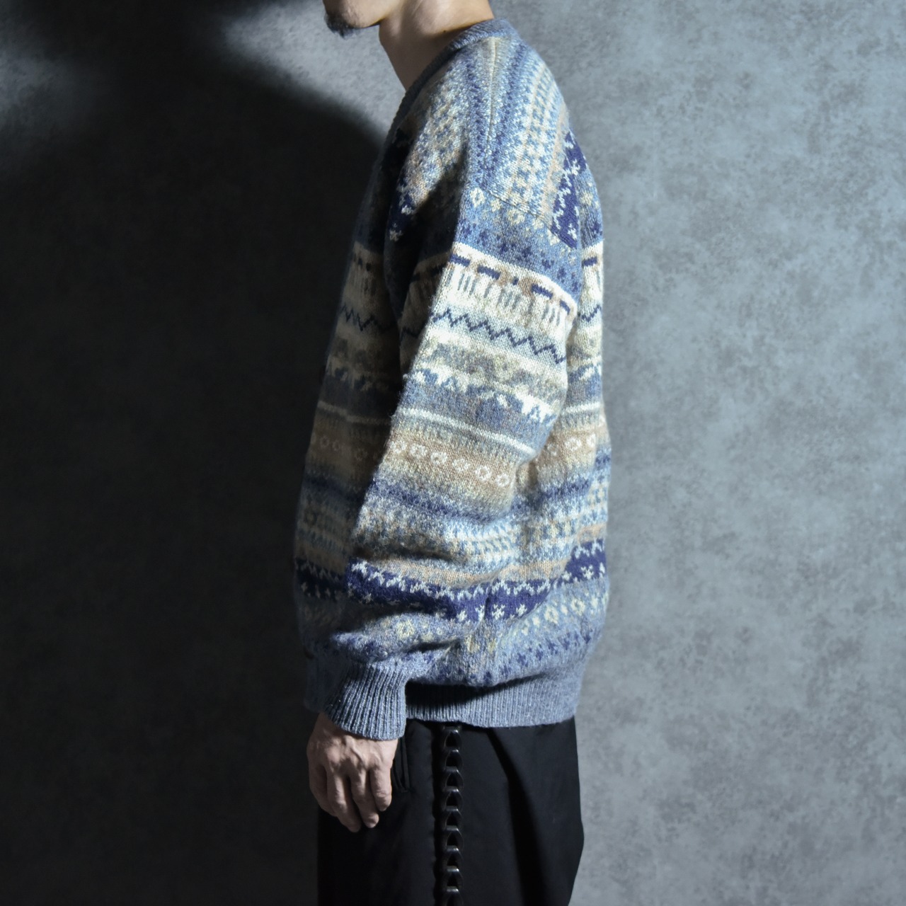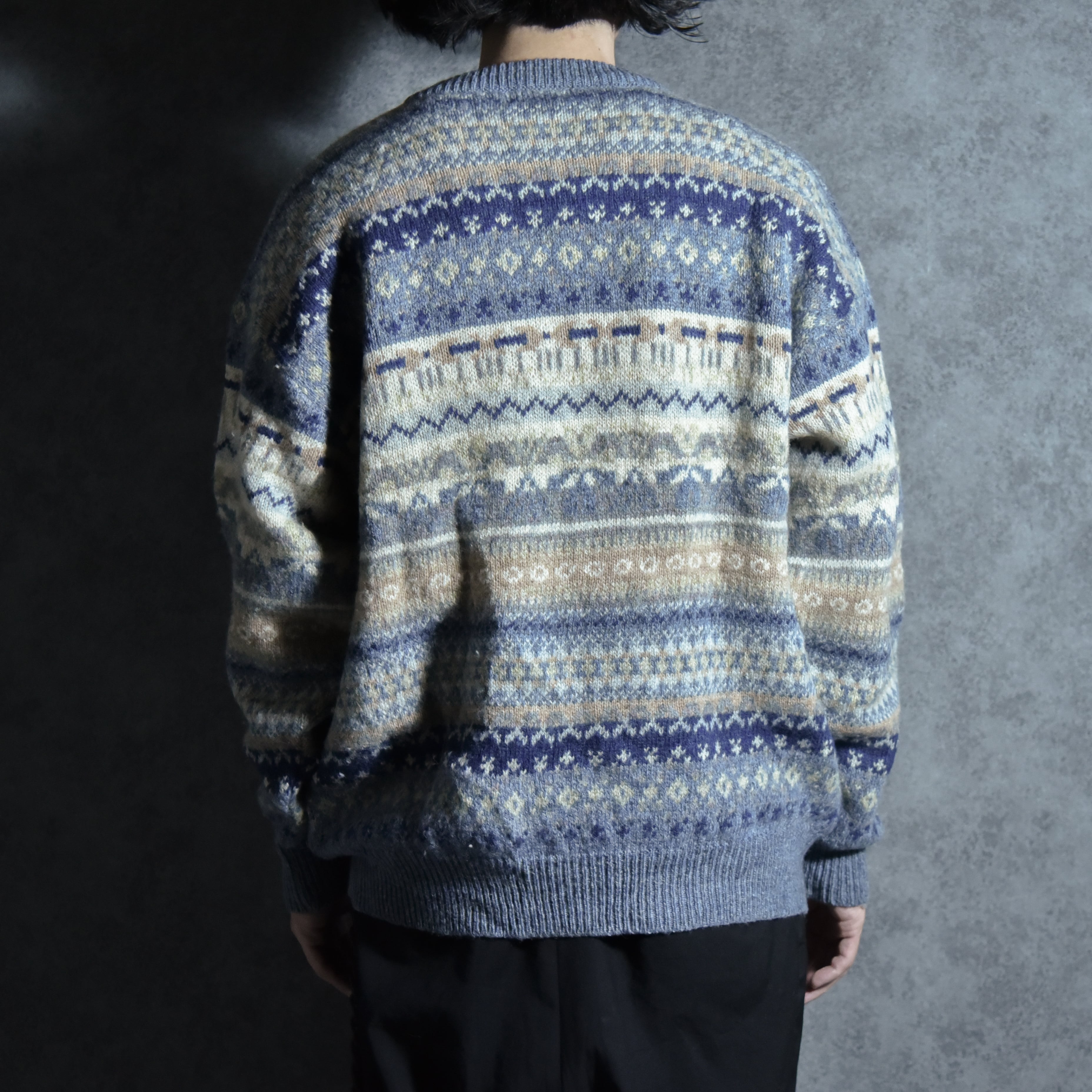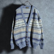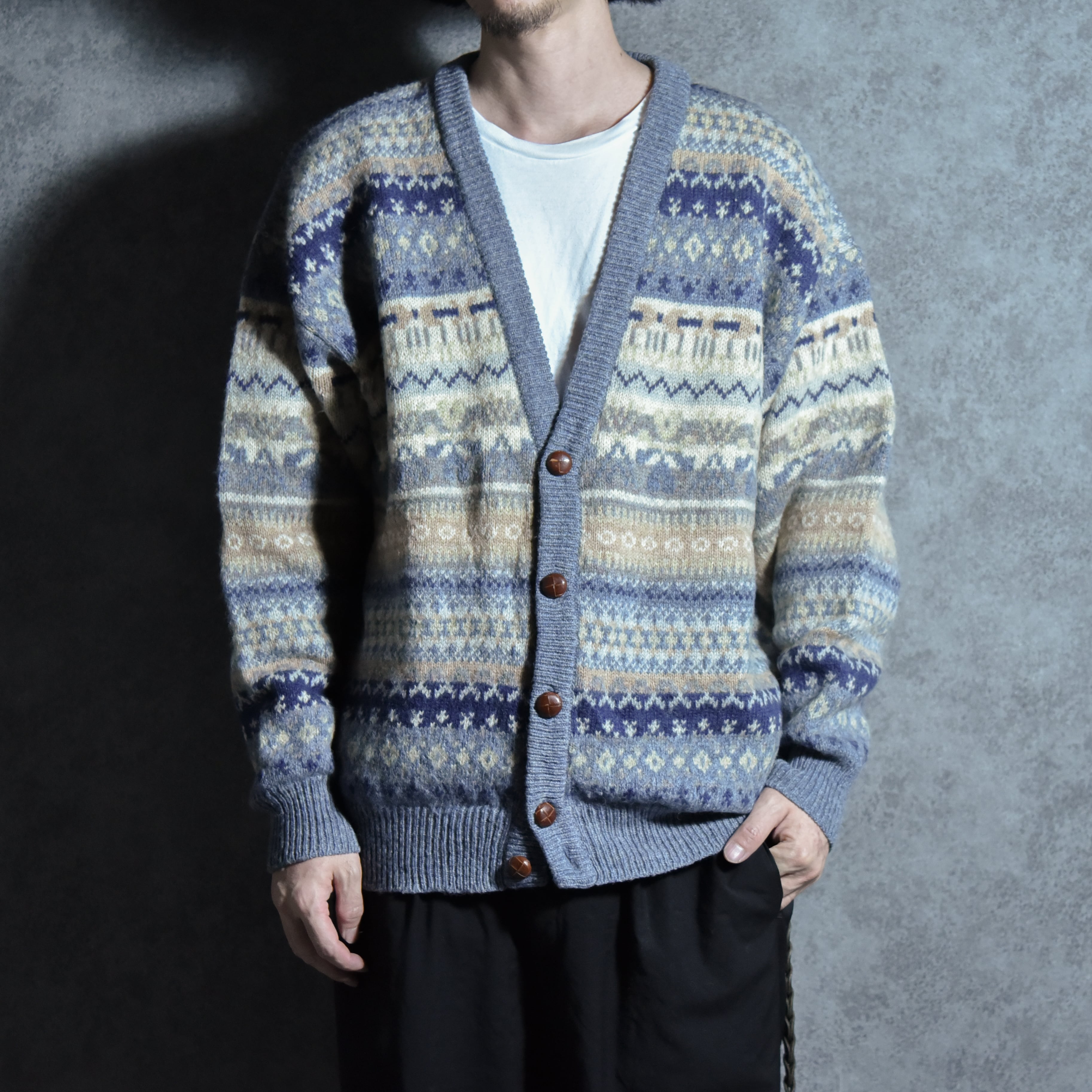 80s Spain Wool Jacquard Cardigan スペイン製 ウール ジャガード カーディガン