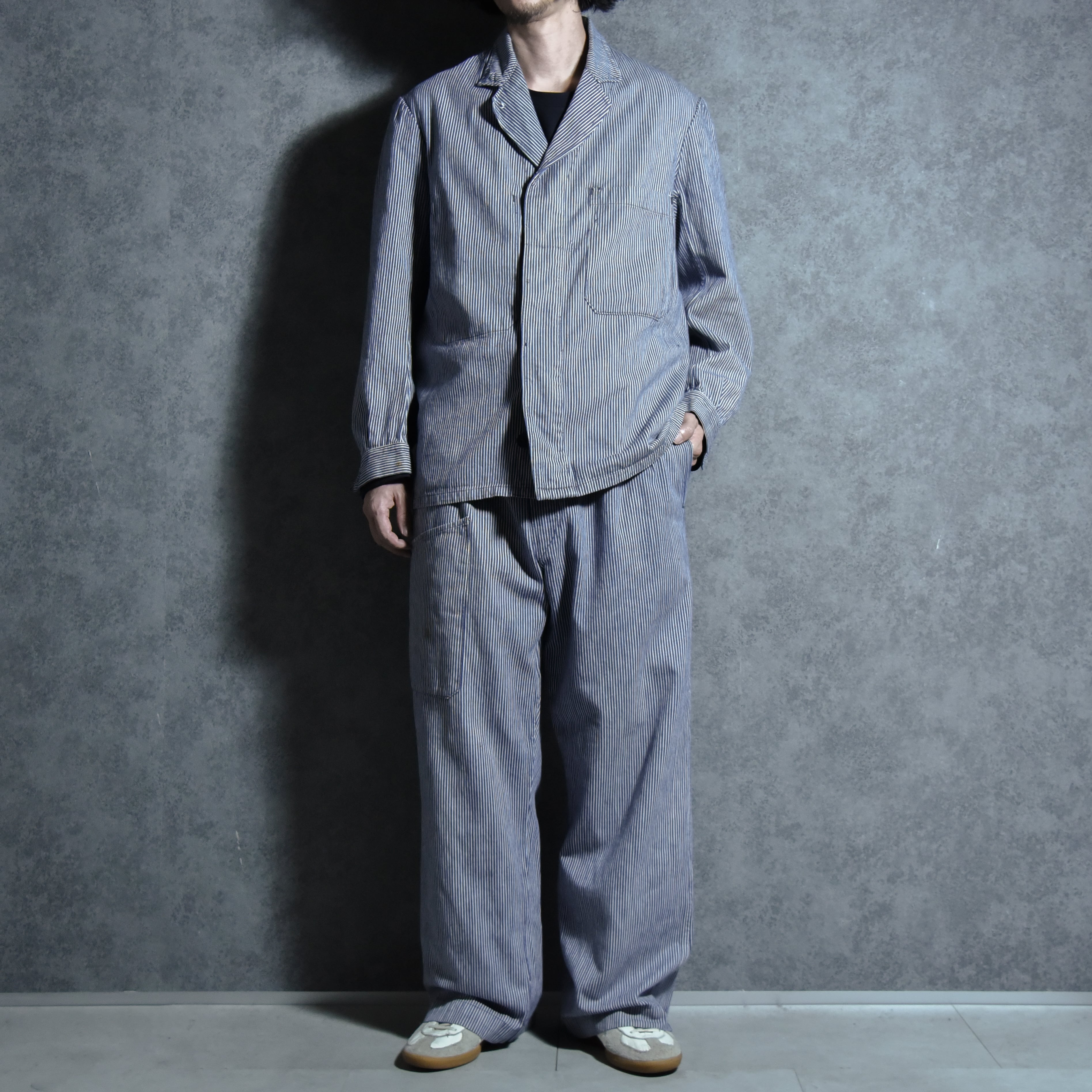 30s Adolphe lafont Hickory Stripe Work Jacket & Patns Setup アドルフラフォン ヒッコリーストライプ ワークジャケット パンツ セットアップ