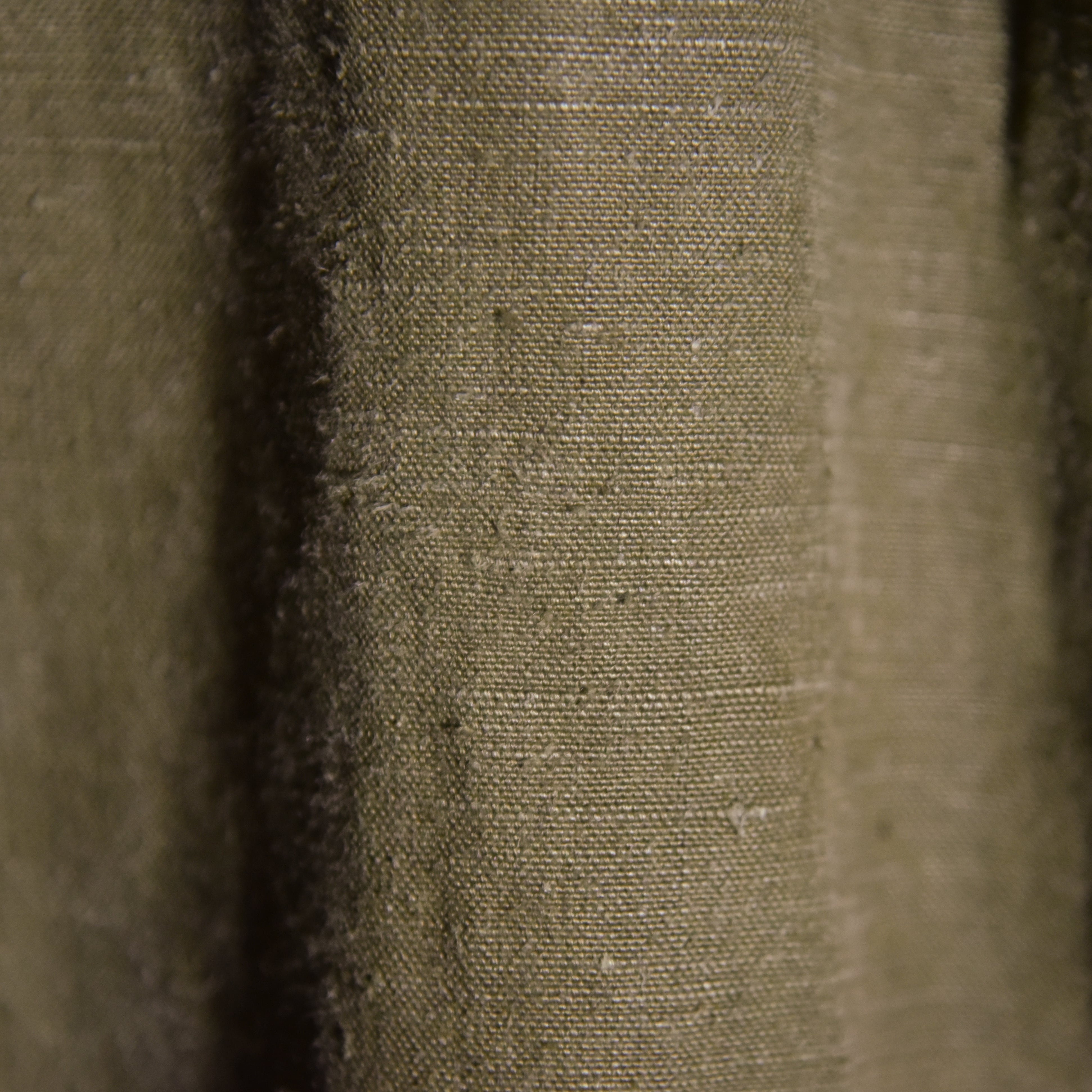 水を含んだような重みのある揺れを感じる独特の素材感、大振りで丸みのある襟、前身頃大きめにとることで後身頃まで回り込むよう仕様の二面体のパターン、身幅55cmに対して裾幅70cmの強烈かつ美しいAラインなど、フランスのワークウェアの礎となっていく洋服の歴史が内包された一着。