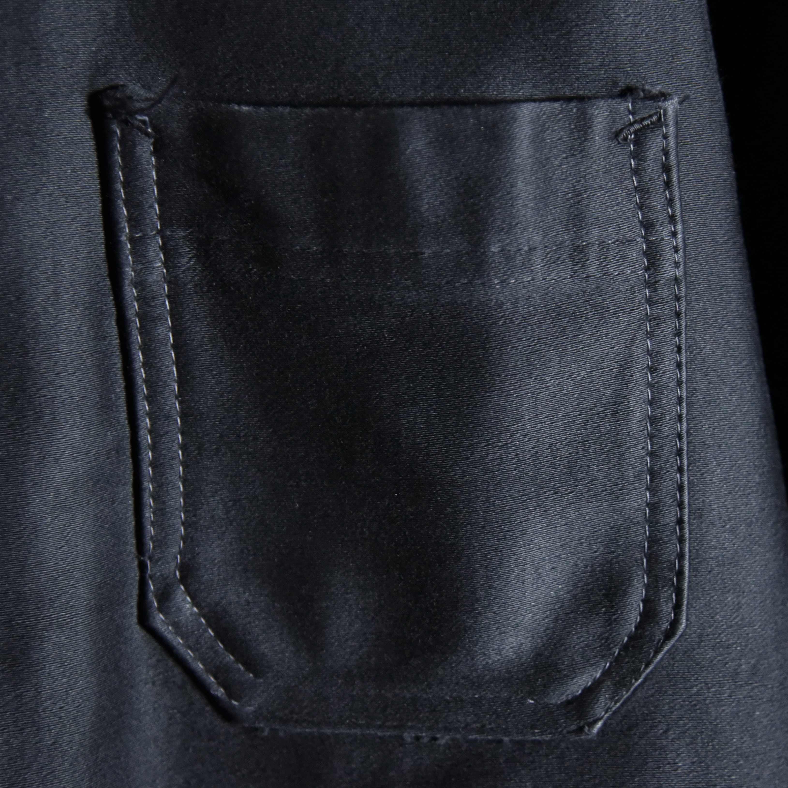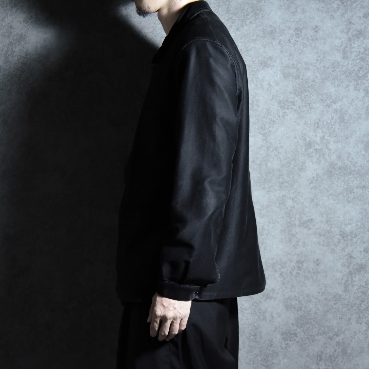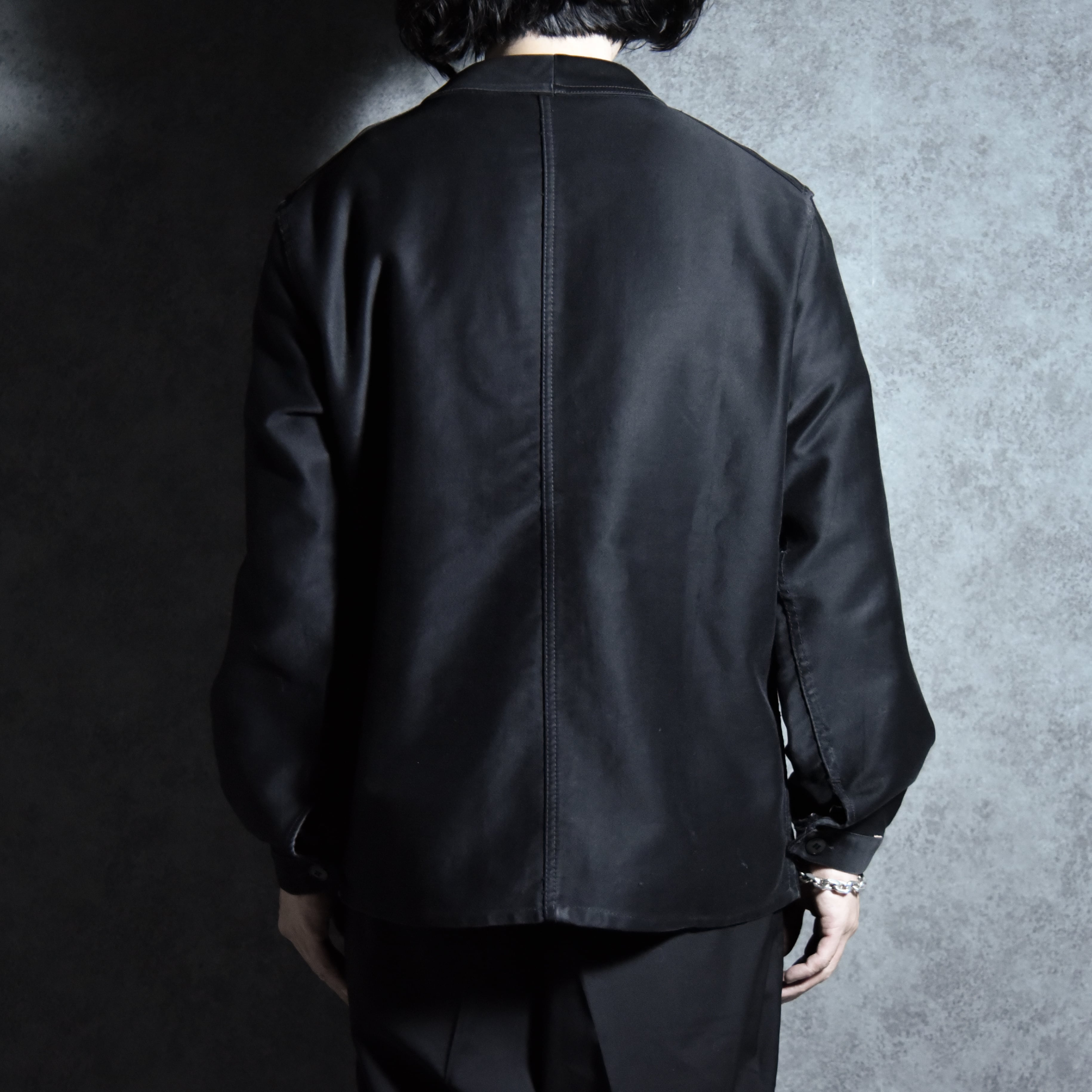 丸みを帯びた襟や内ポケットなど完成度が高く、生地は微起毛で光沢がありながらもタフな生地感の高密度に織られたモールスキン。