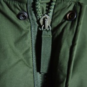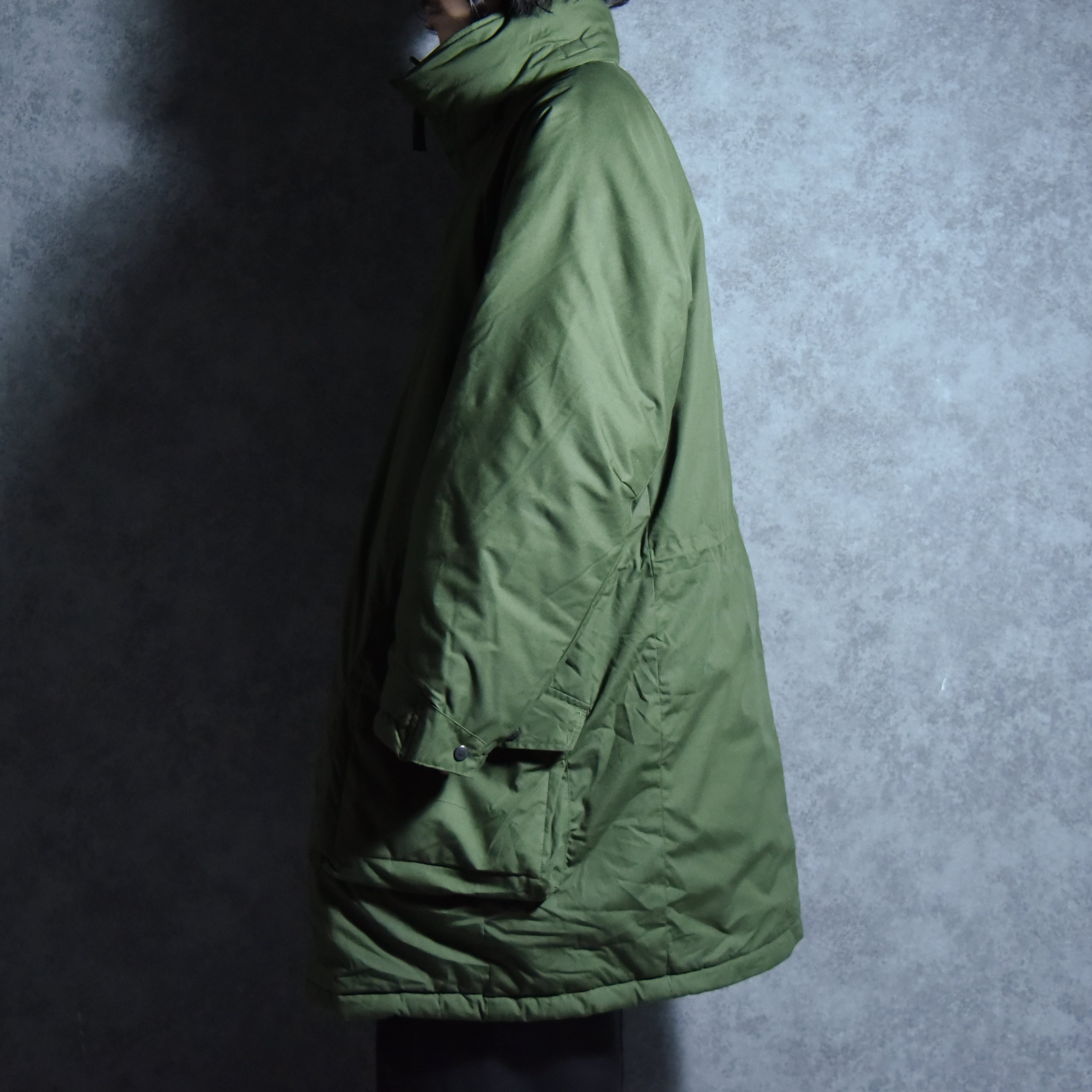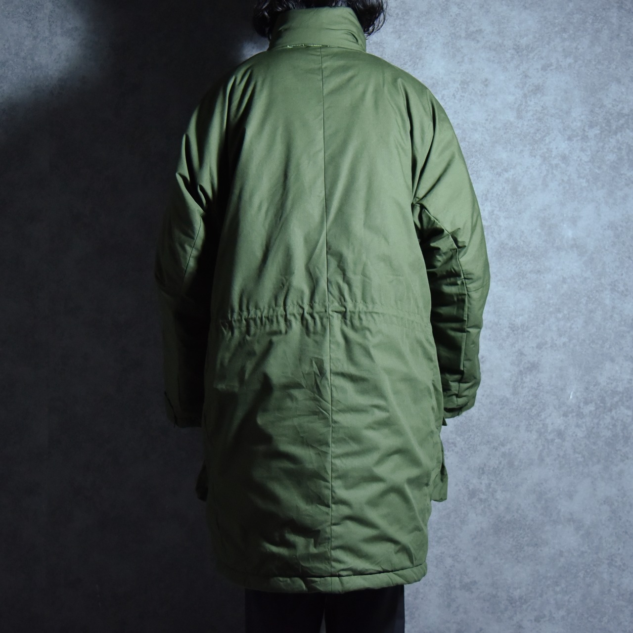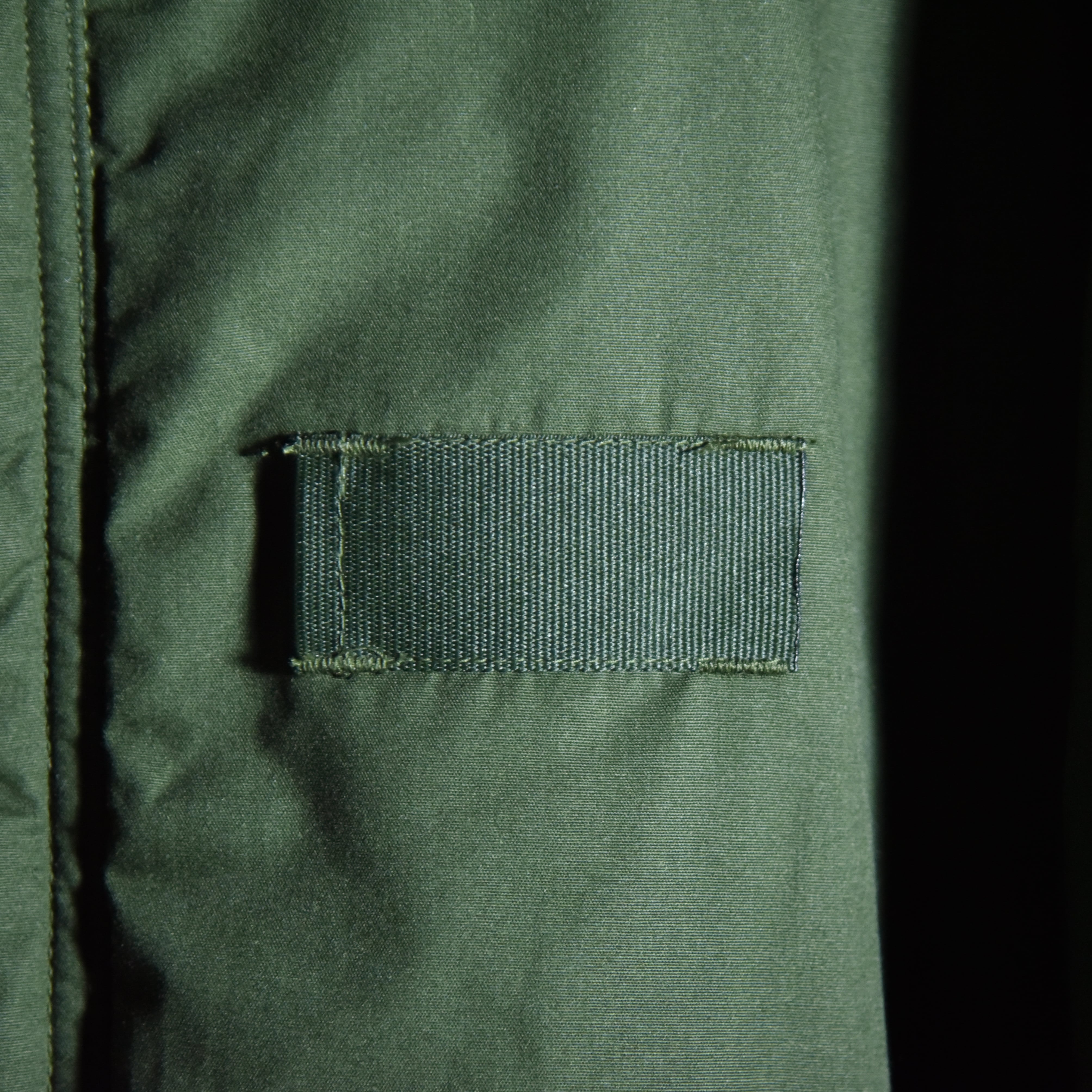 フロントはダブルジップとドットボタン留めの二重構造、腰にはマチ付きのパッチ&フラップポケット、袖口はアジャストタブで調節ができ、腰回りも内側のドローコードで絞れる仕様など、防寒性を追求しデザインも完成された用の美を体現した一着です。