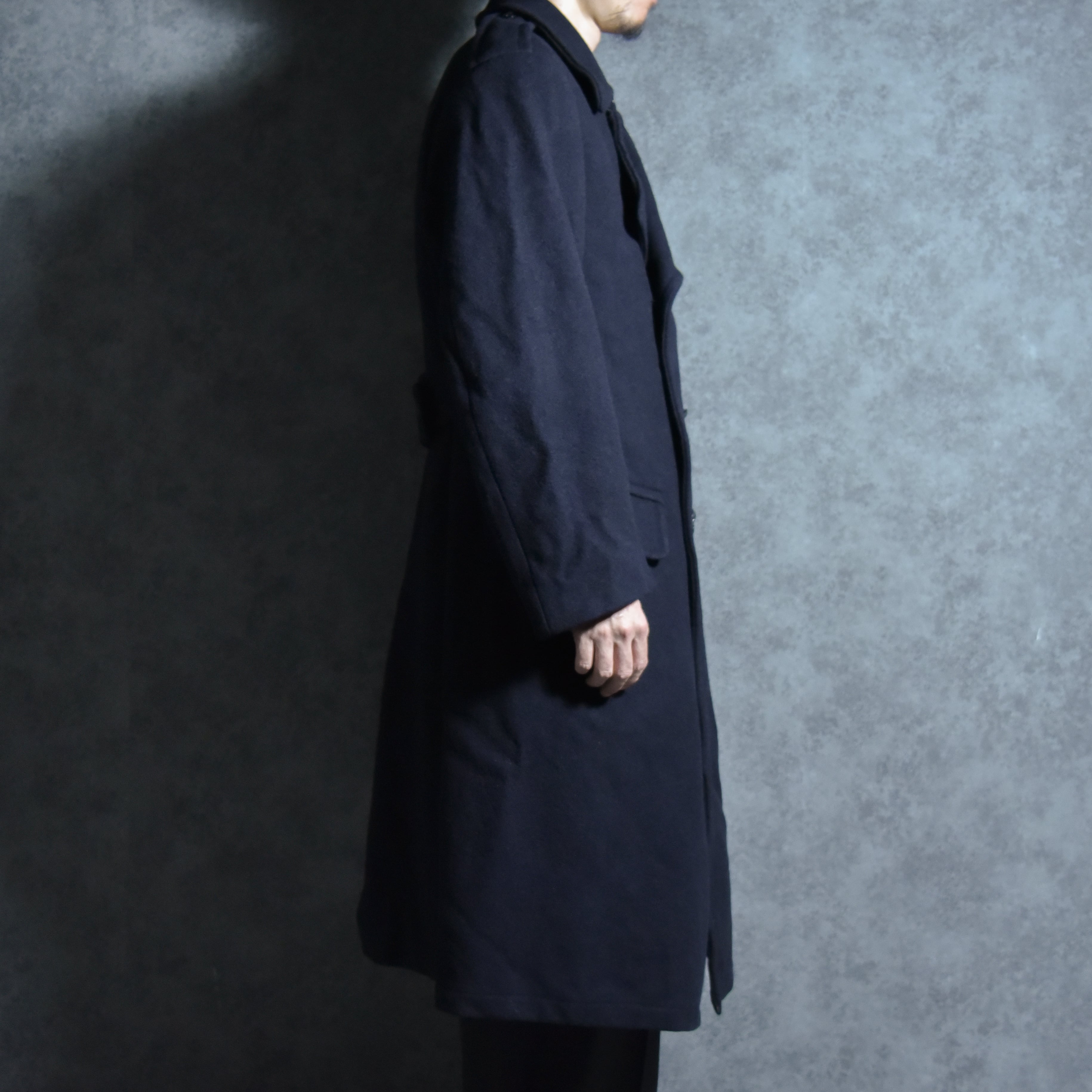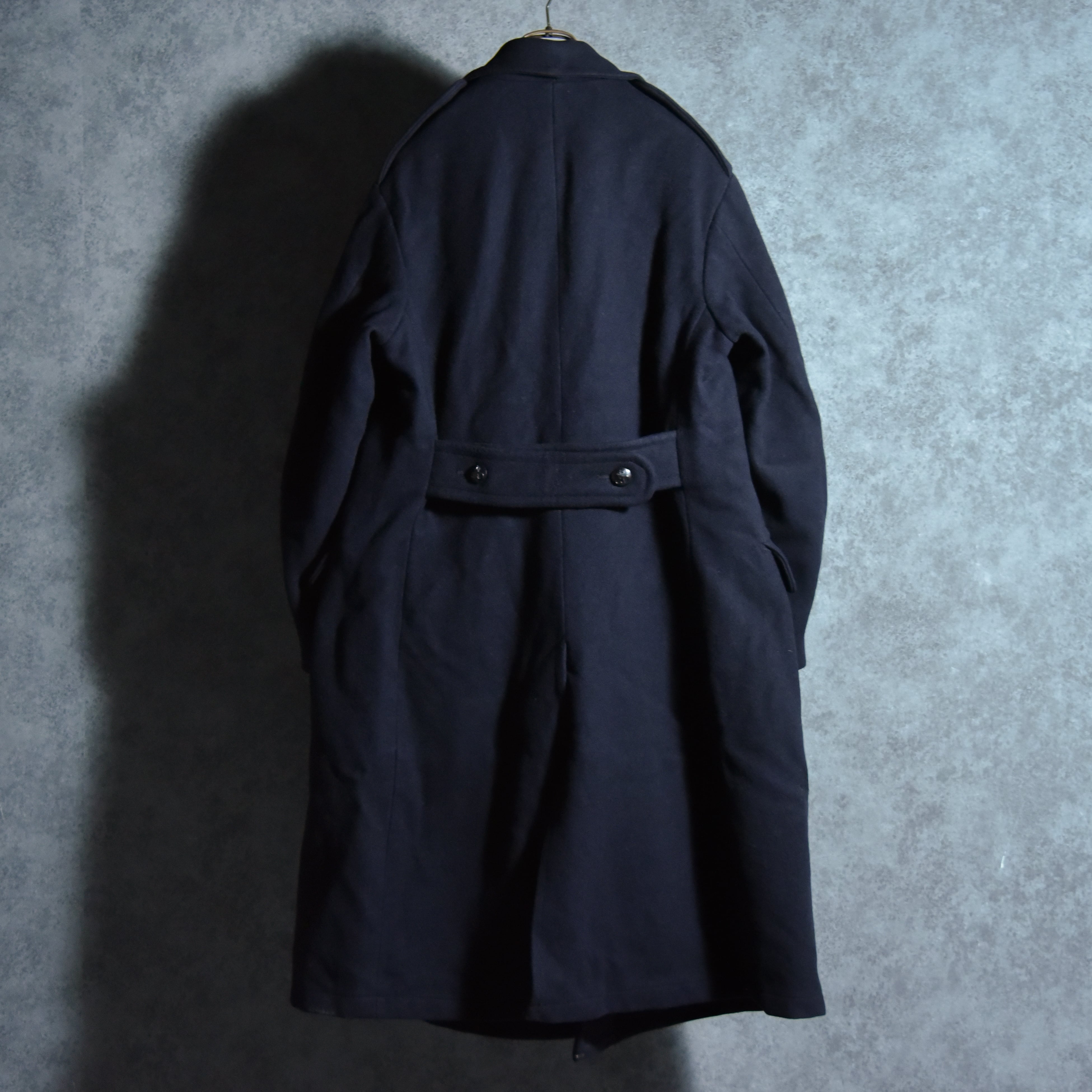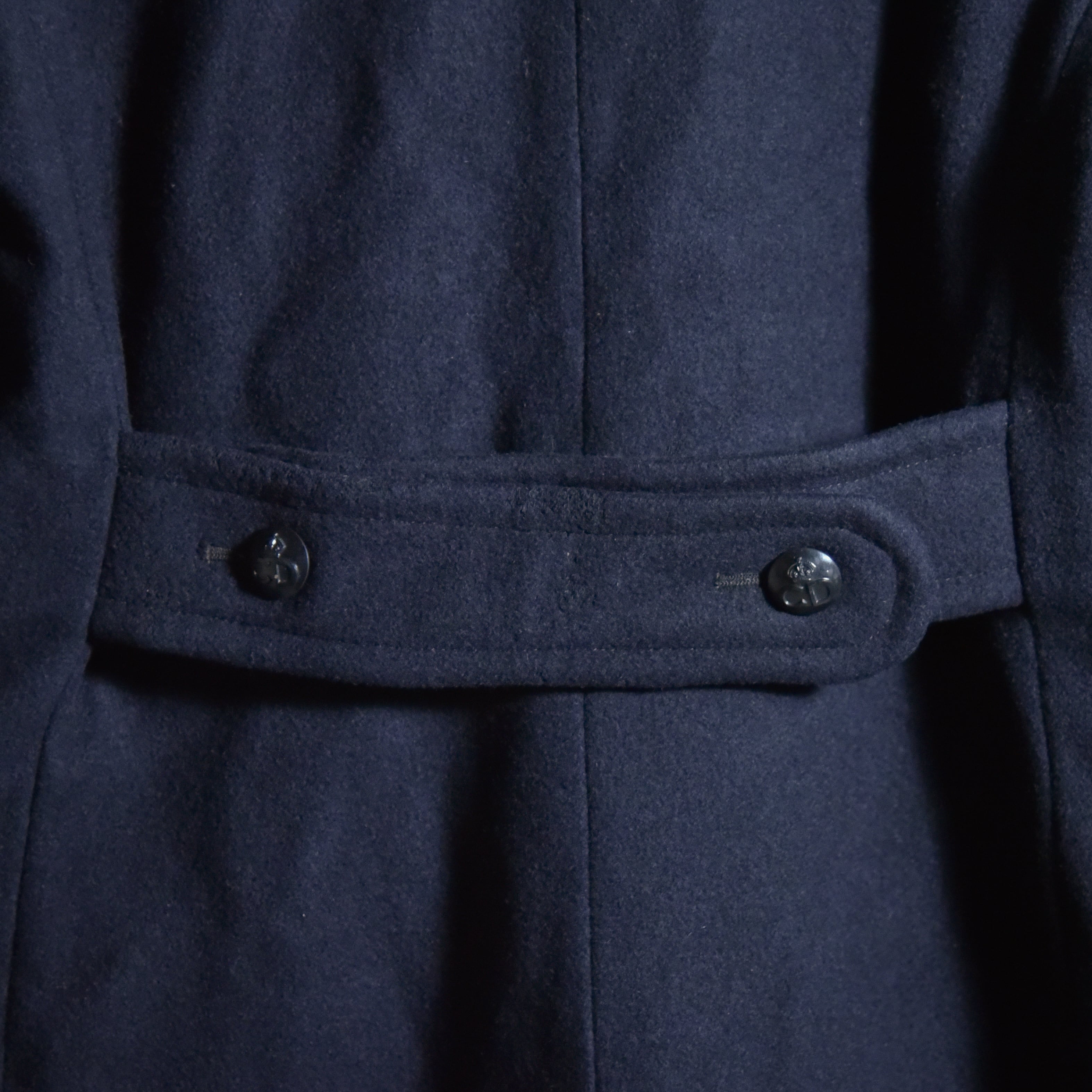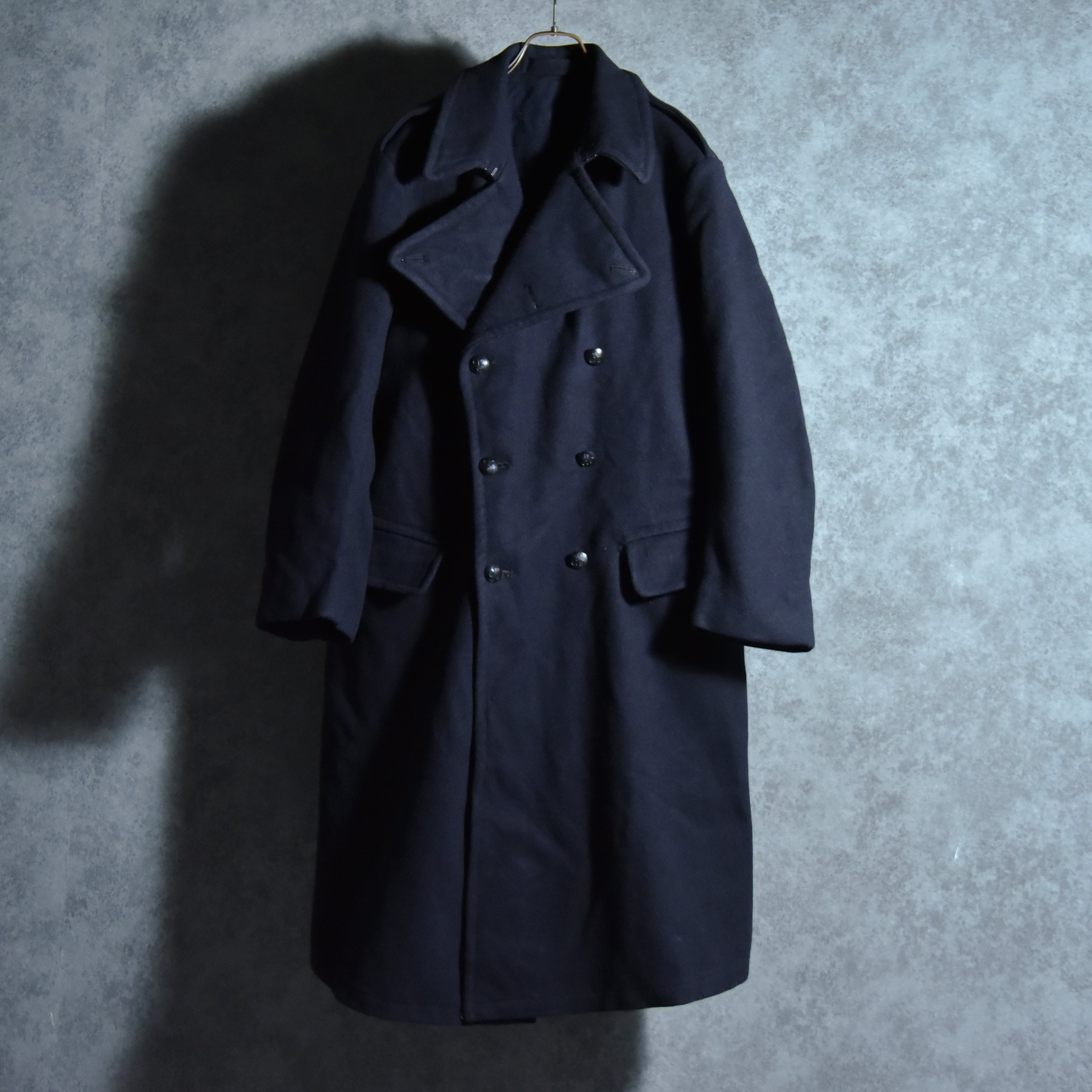 非常に厚手ながら柔らかなメルトンウール、フロントはダブルブレスト仕様で風を通さず、膝下まで守ってくれるロング丈はまさにモデル名通りの貴重なグレートコートです。