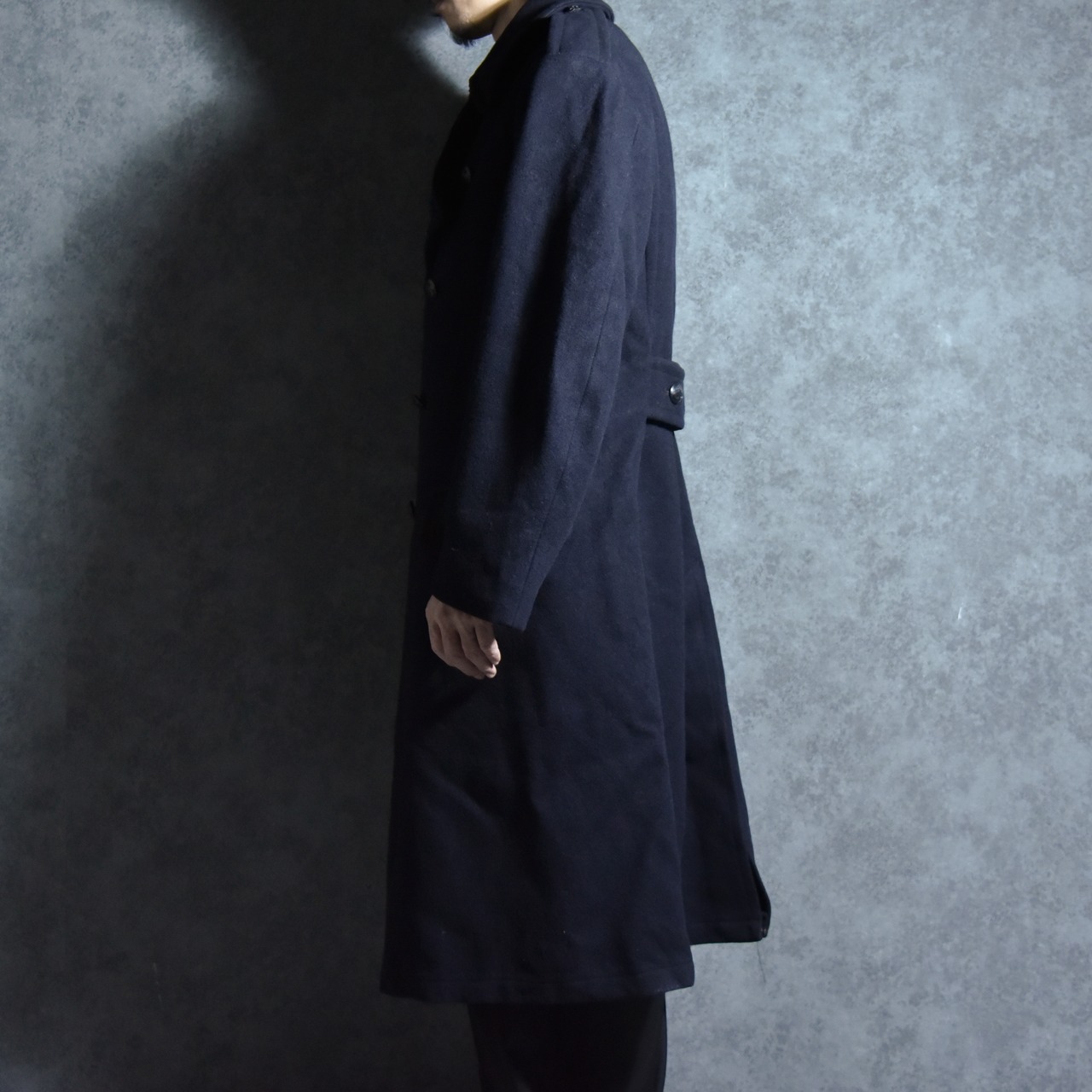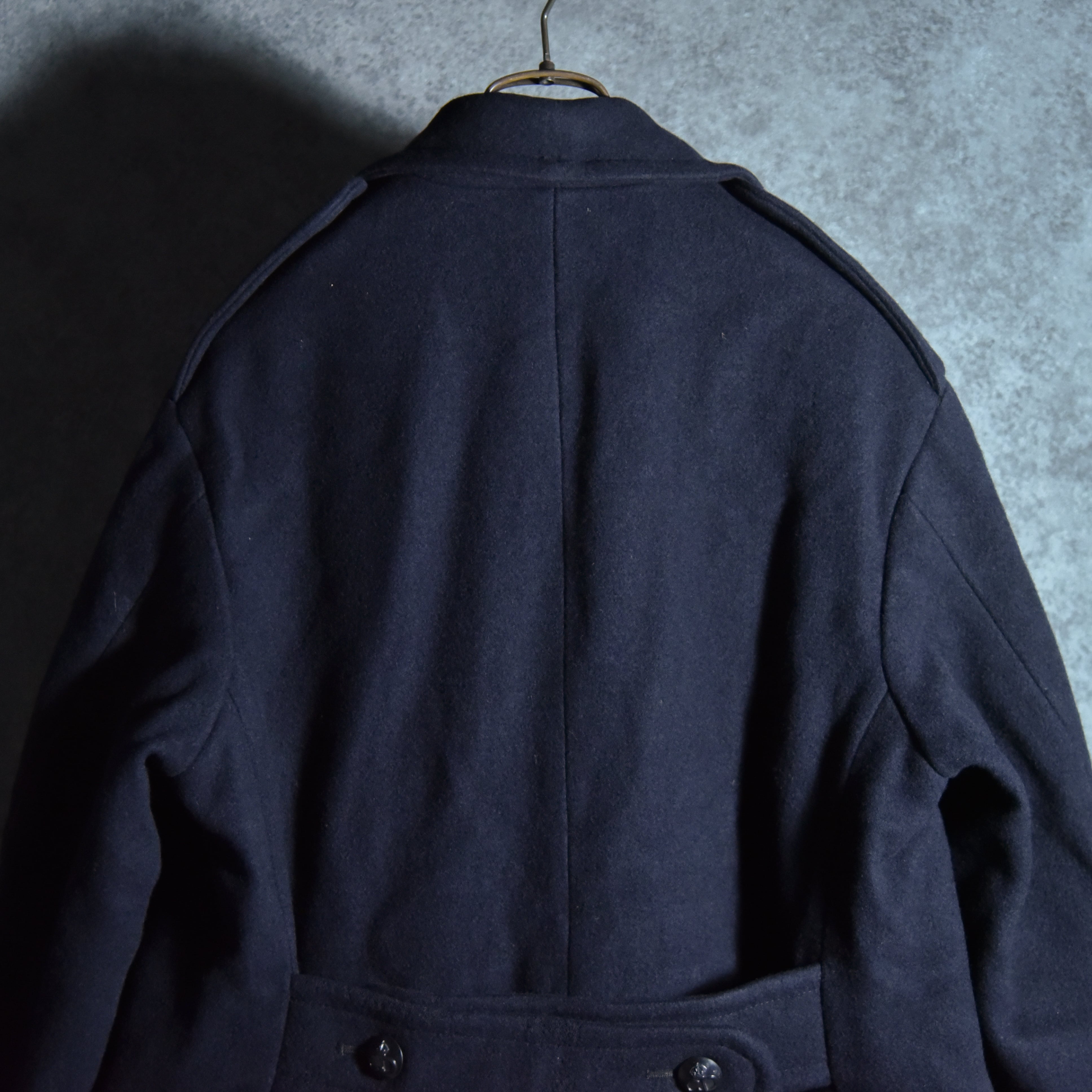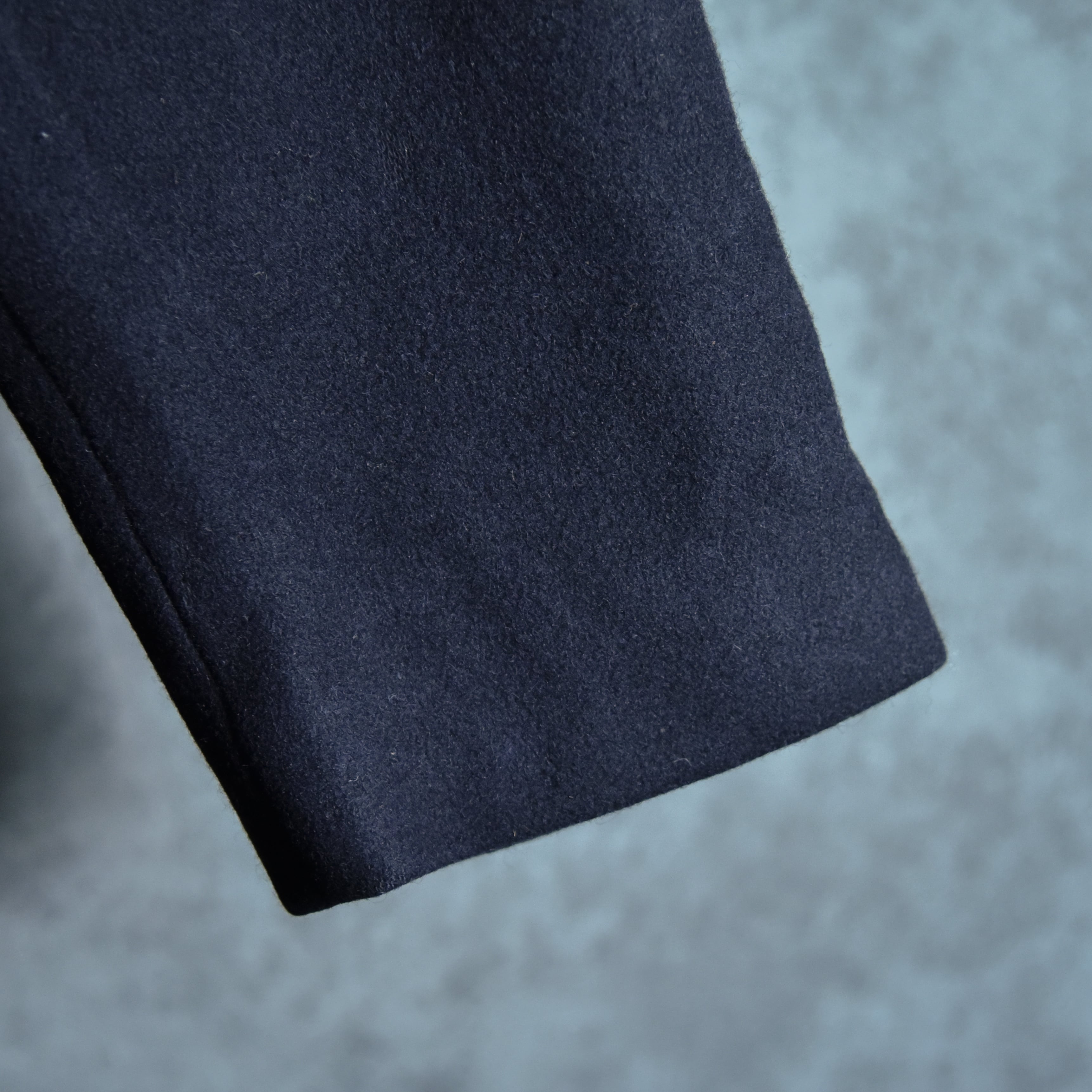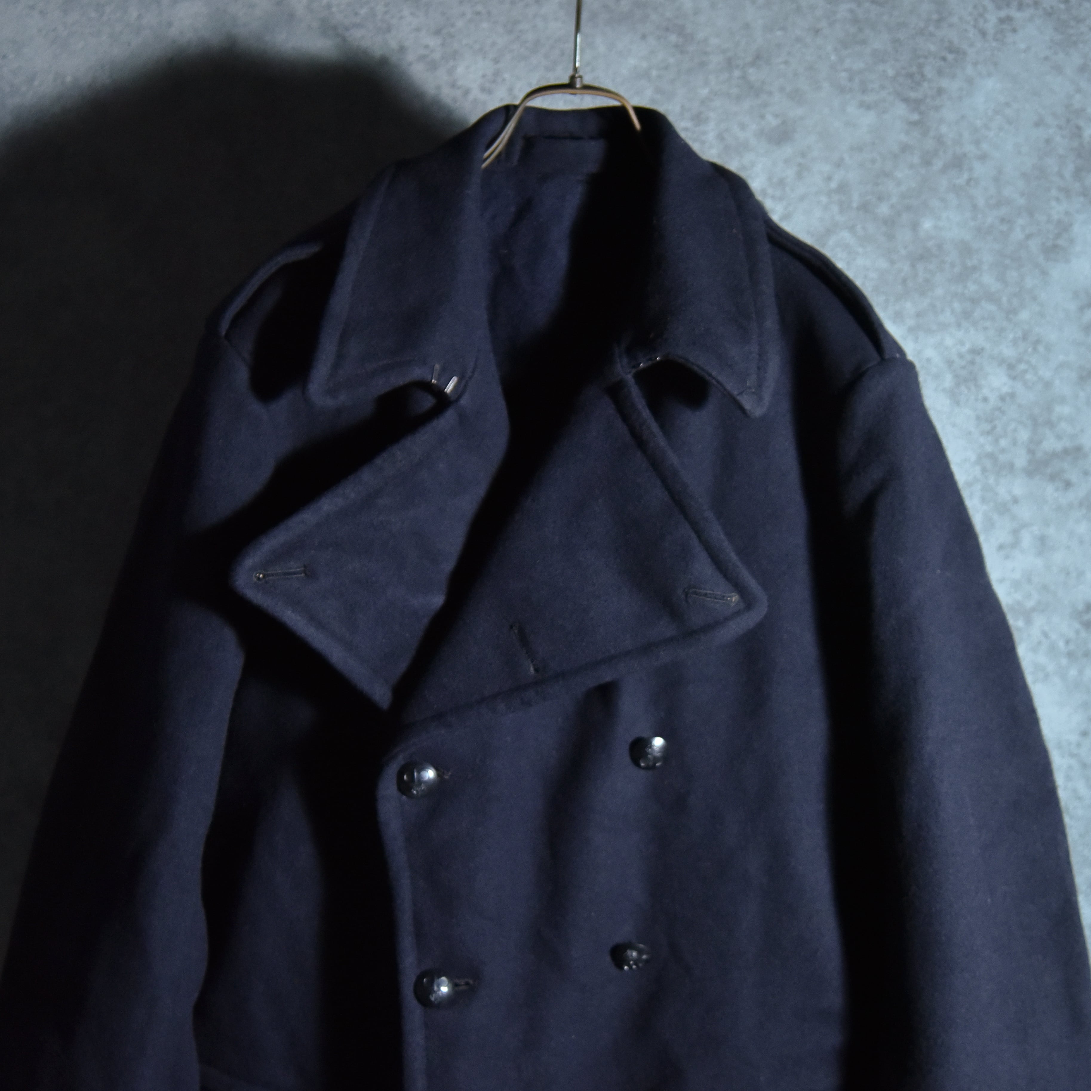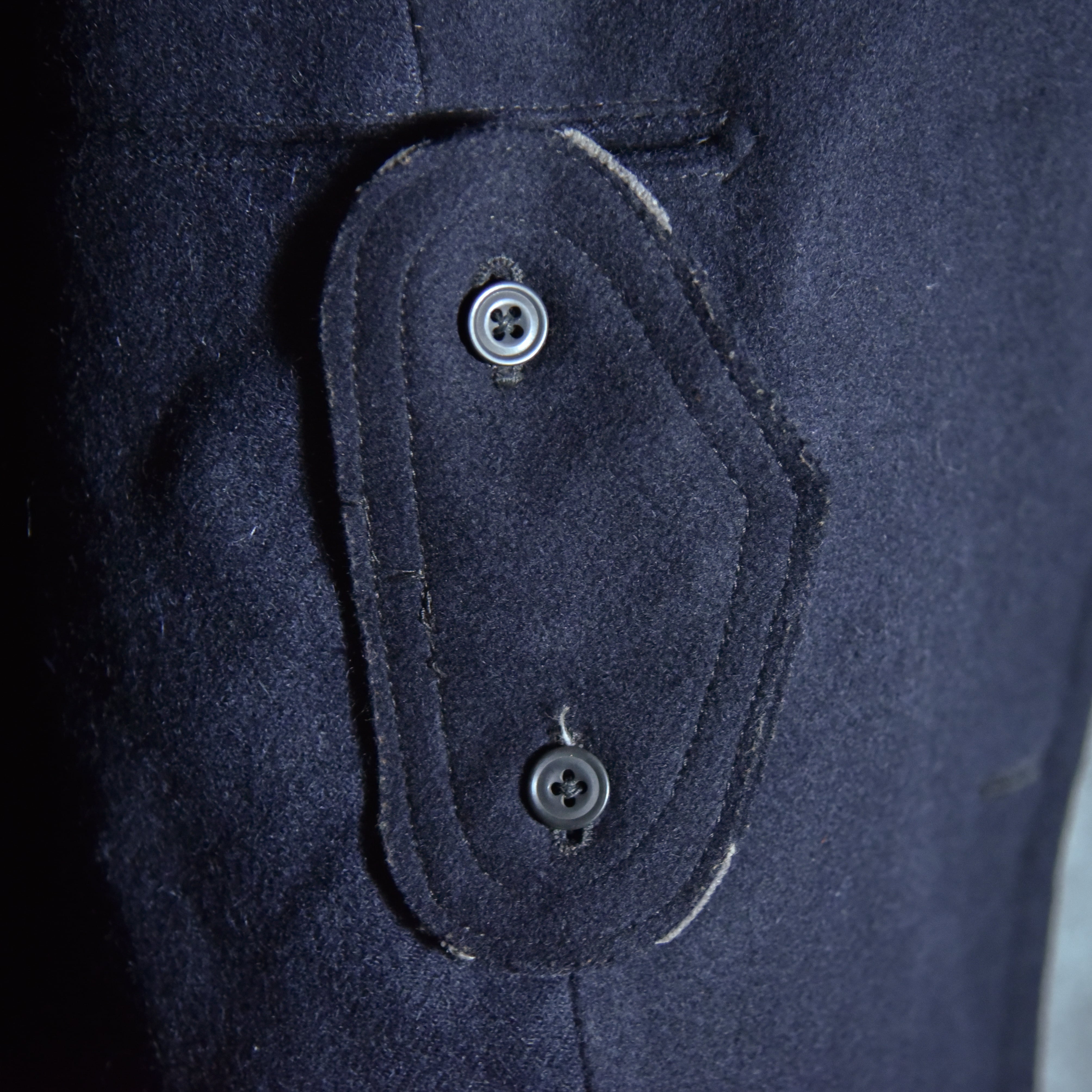 非常に厚手ながら柔らかなメルトンウール、フロントはダブルブレスト仕様で風を通さず、膝下まで守ってくれるロング丈はまさにモデル名通りの貴重なグレートコートです。