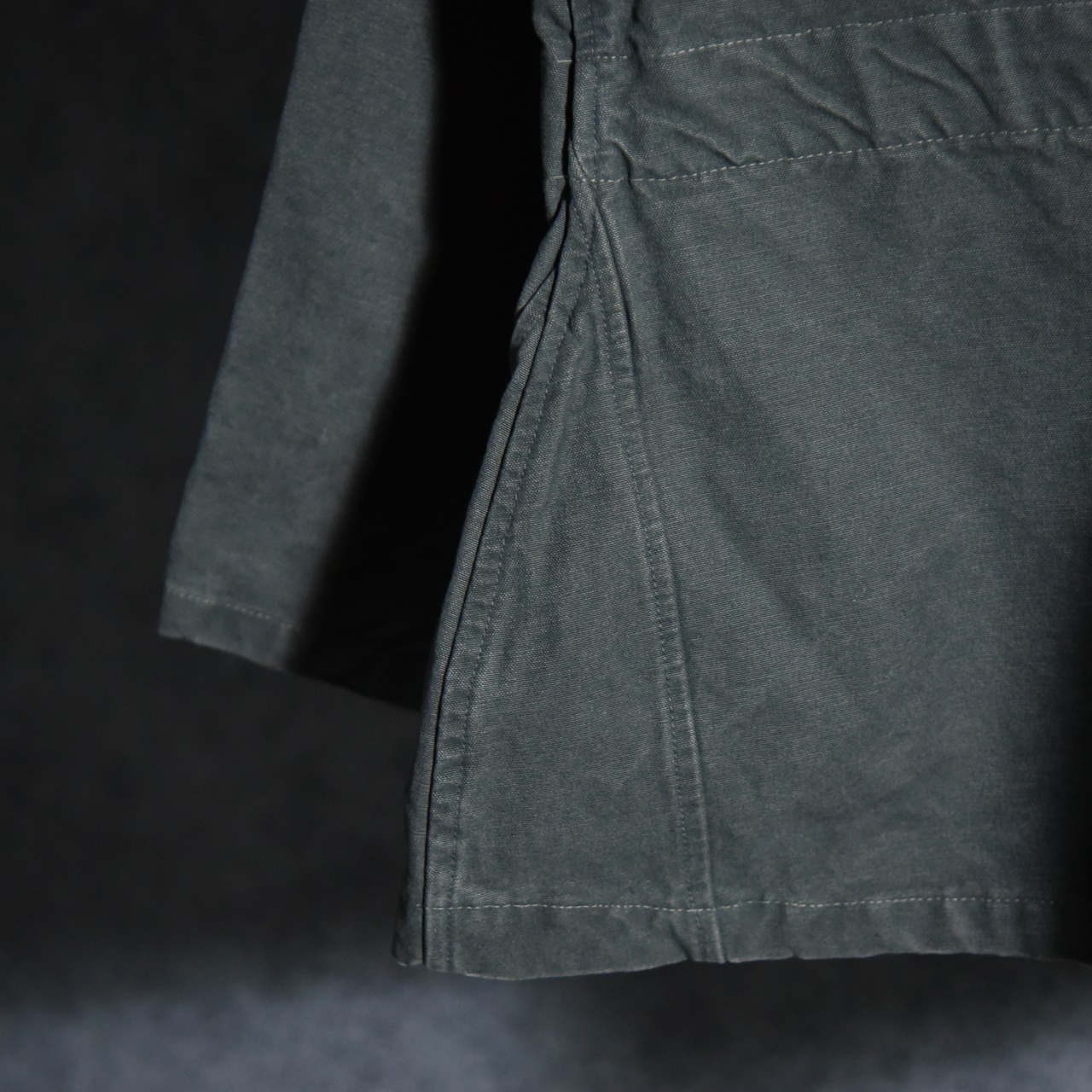 素材は適度な張り感がありつつ柔らかさも両立した、服として非常に着やすいミドルウェイトのコットンダックで、僅かに裏面が起毛しているため肌触りも良く、色味は若干のフェード感はあるもののダメージ等はない良好なコンディションです。