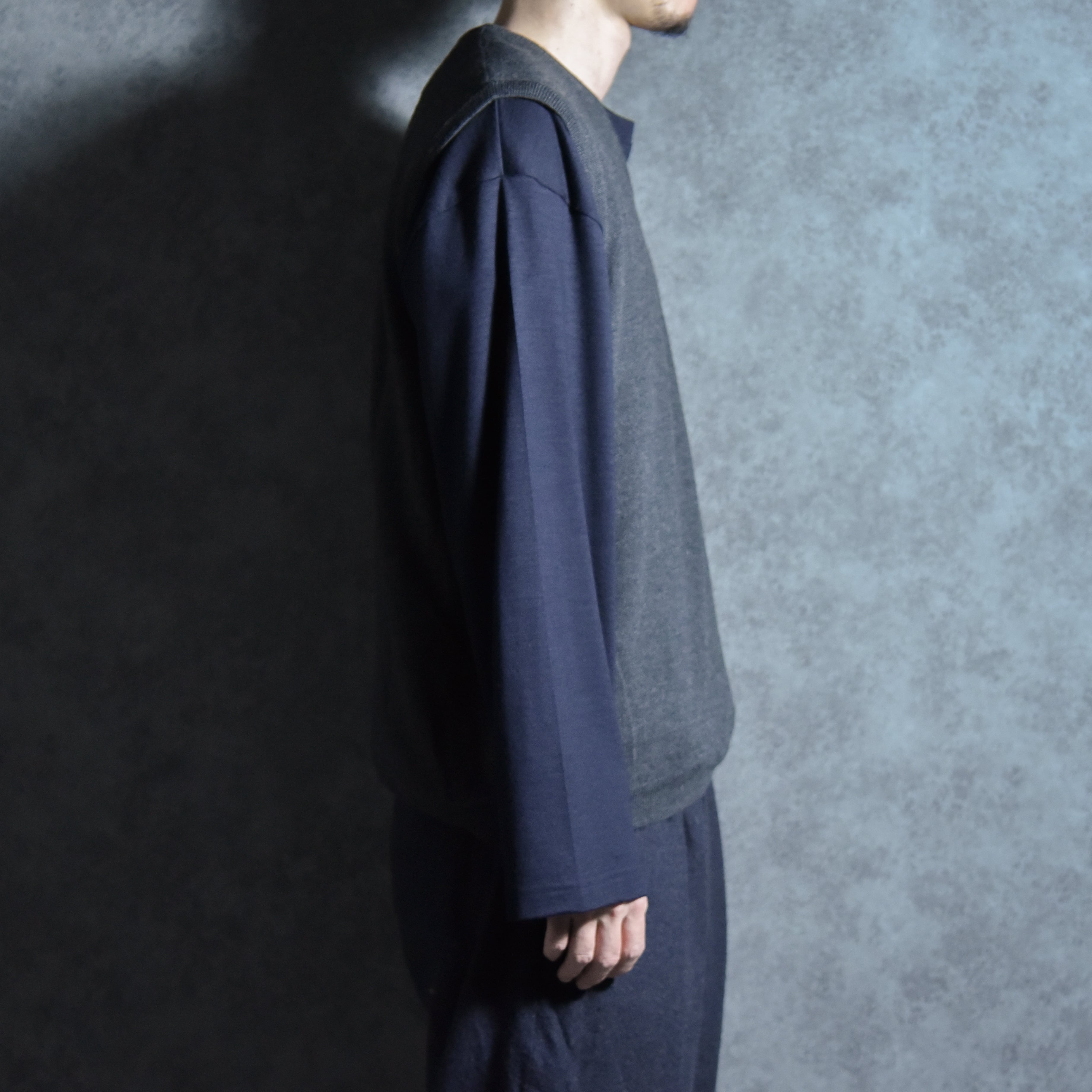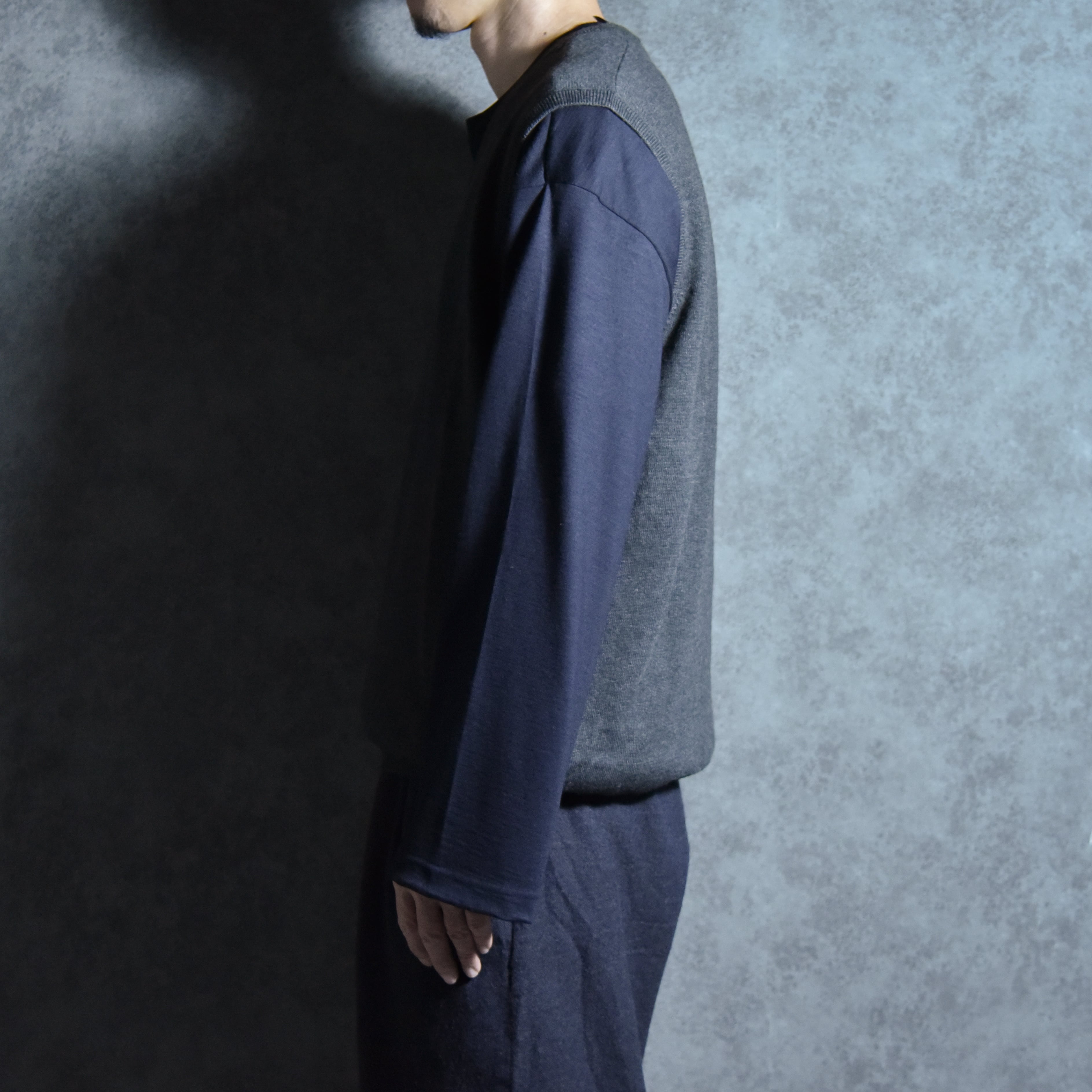 素材は梳毛メリノのピュアニューウール100%で非常に肌触りが良く、薄手でしなやかなため綺麗なドレープ感も楽しめます。