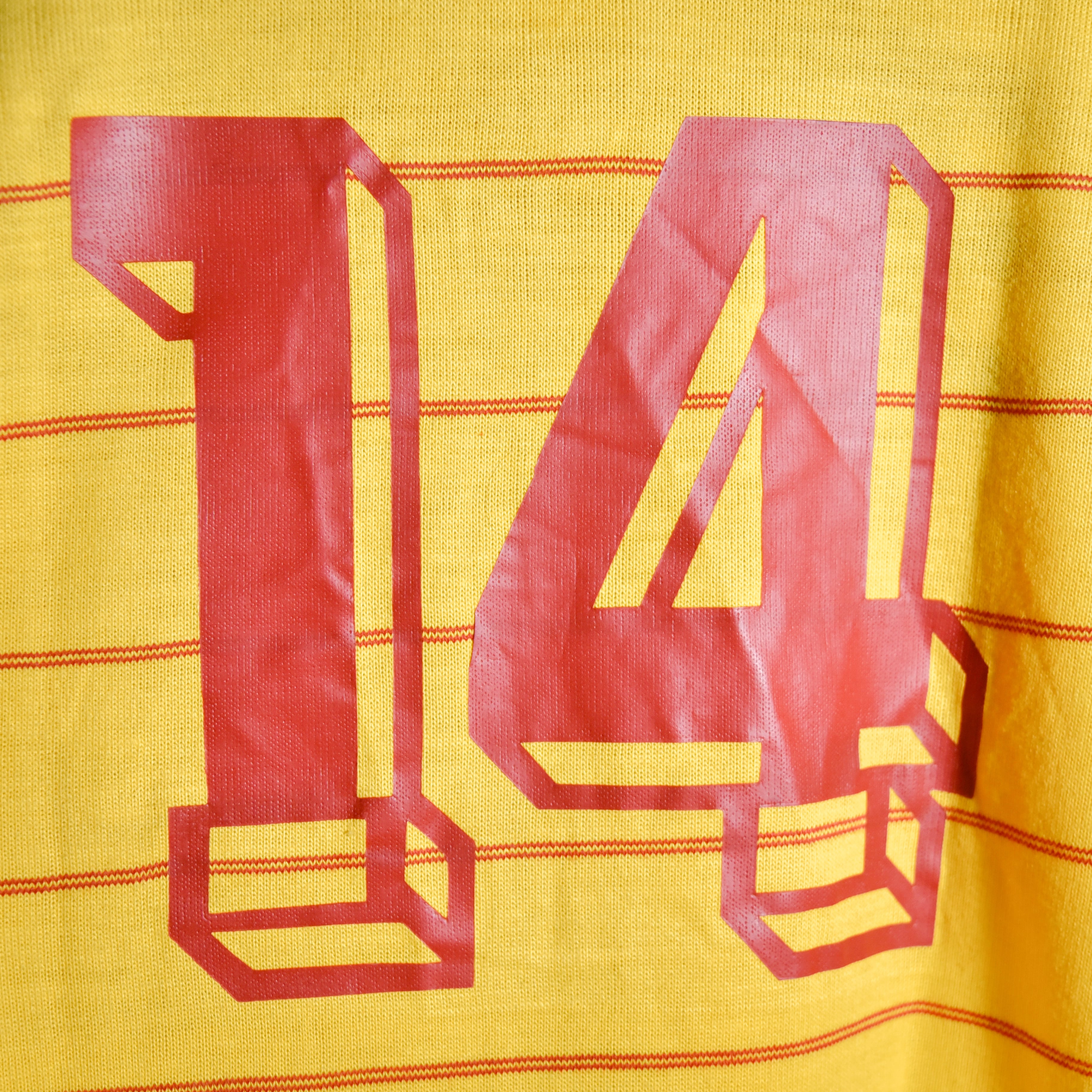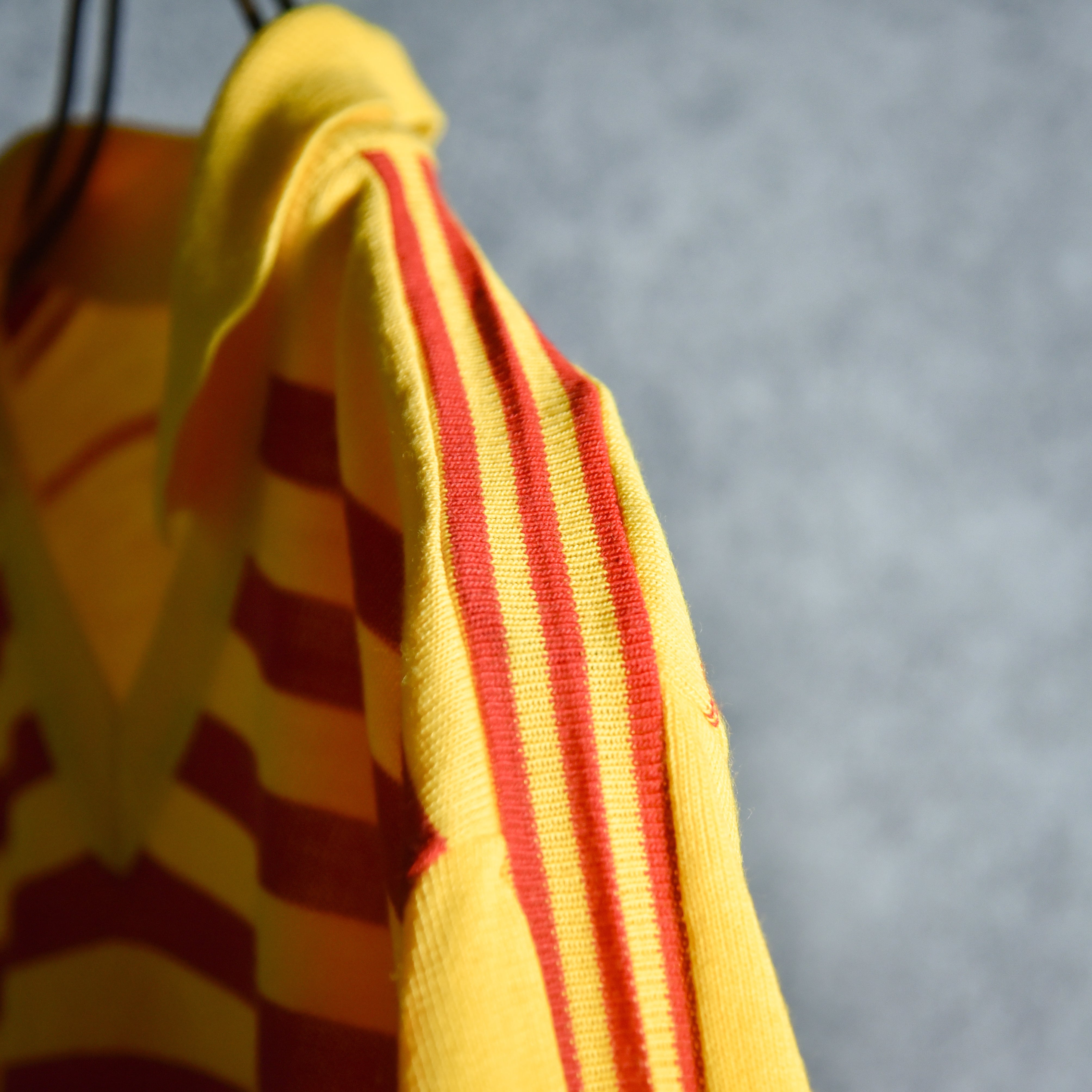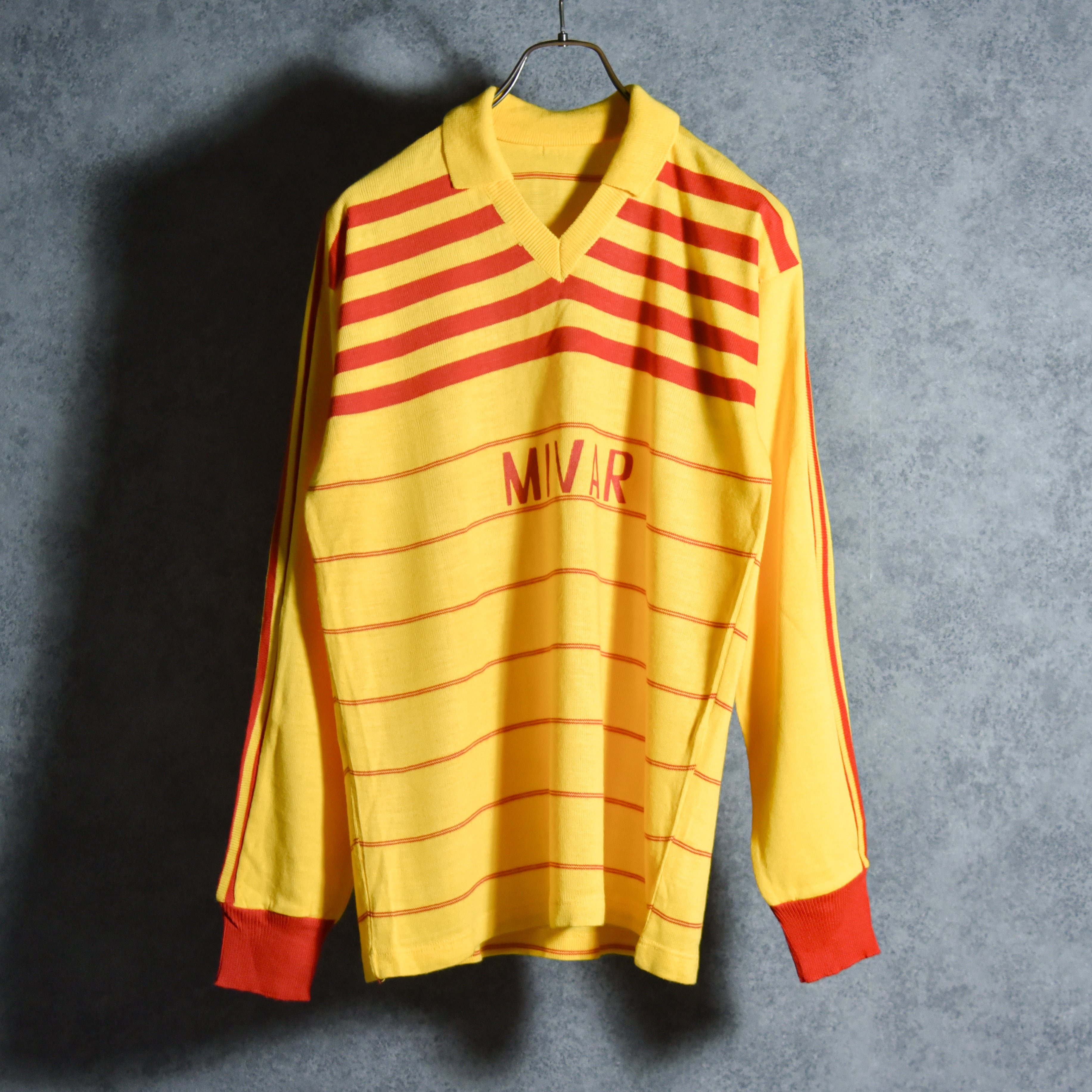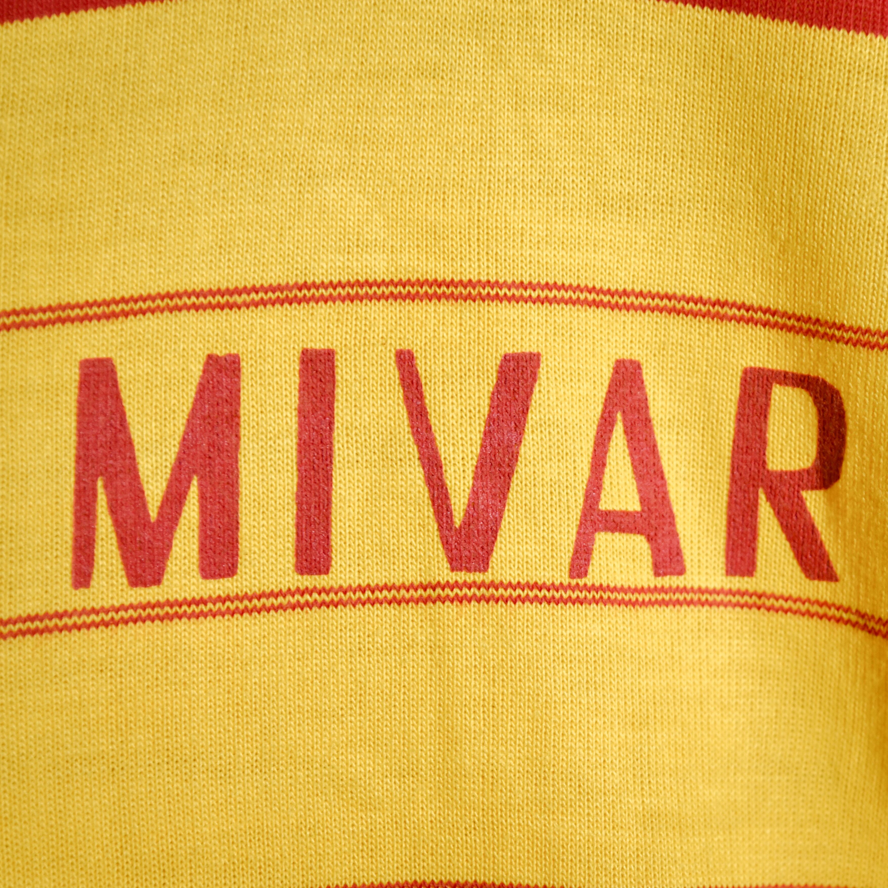 同年代らしくクラシックな雰囲気漂うデザインと配色で、MIVARというイタリアの老舗家電メーカーがスポンサーについていることから、おそらくサッカーの下部リーグかアマチュアチームのユニフォームとして作られた一着。