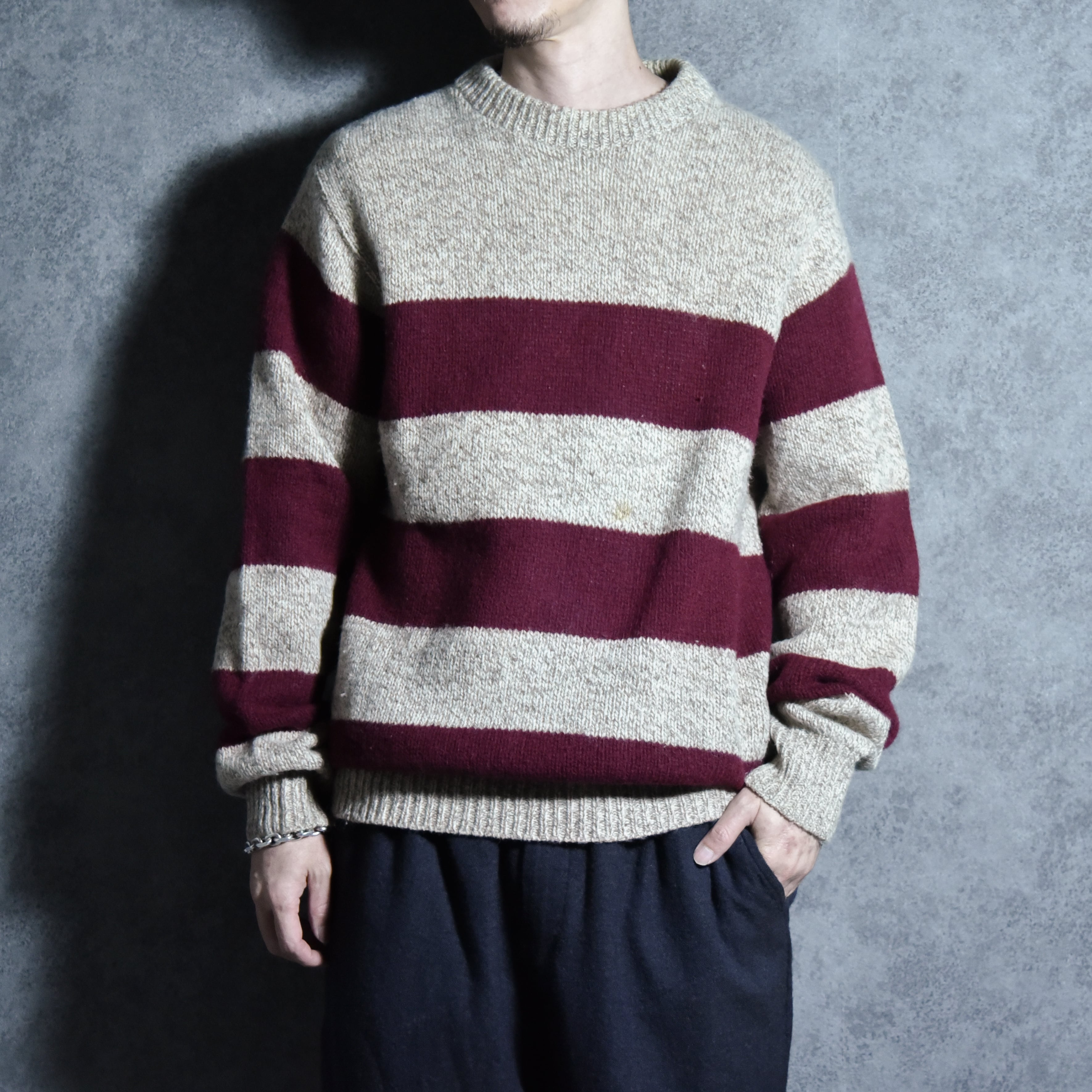 70-80s L.L.Bean Border Crew Neck Knit Sweater Made in USA エルエルビーン ボーダー クルー ネック ニット セーター