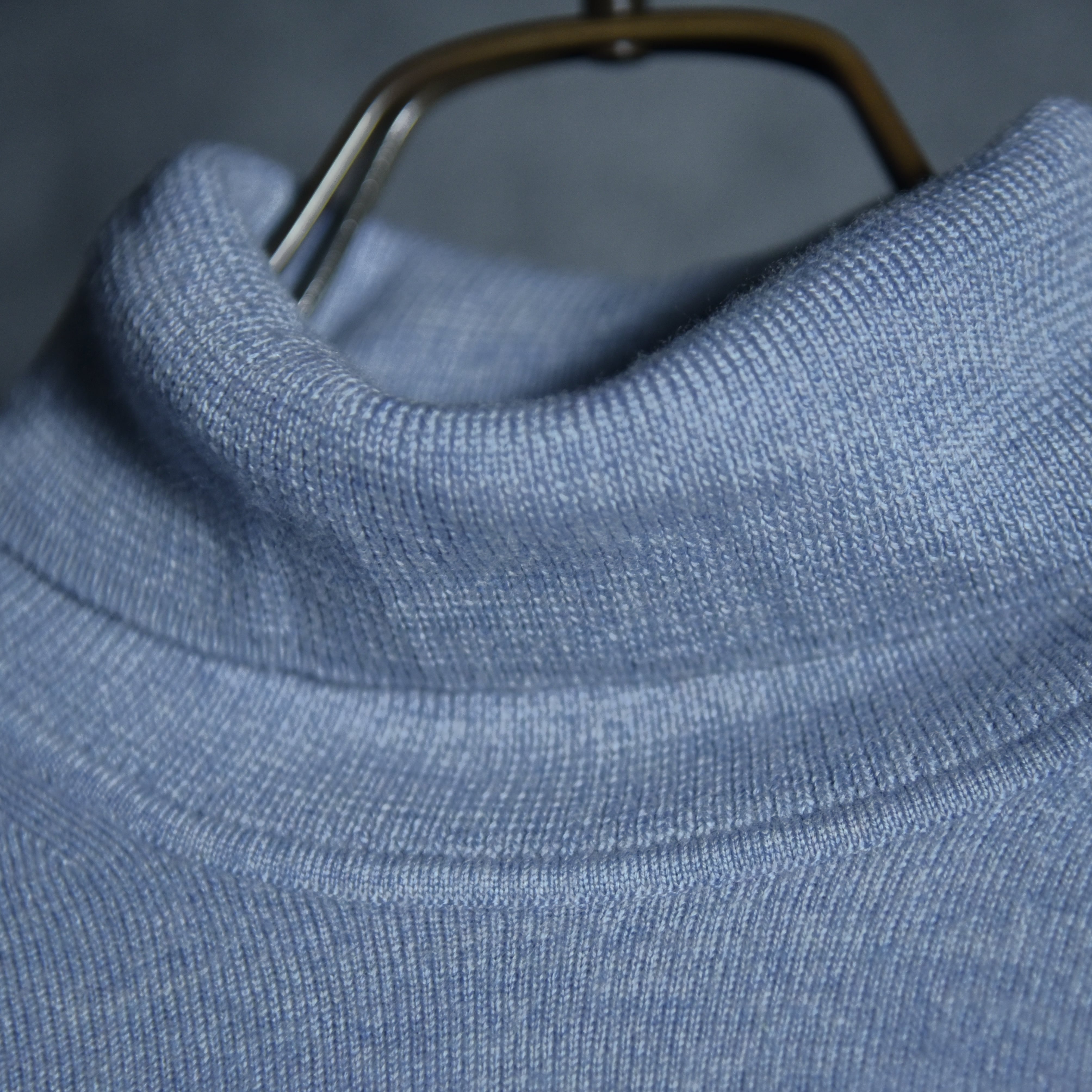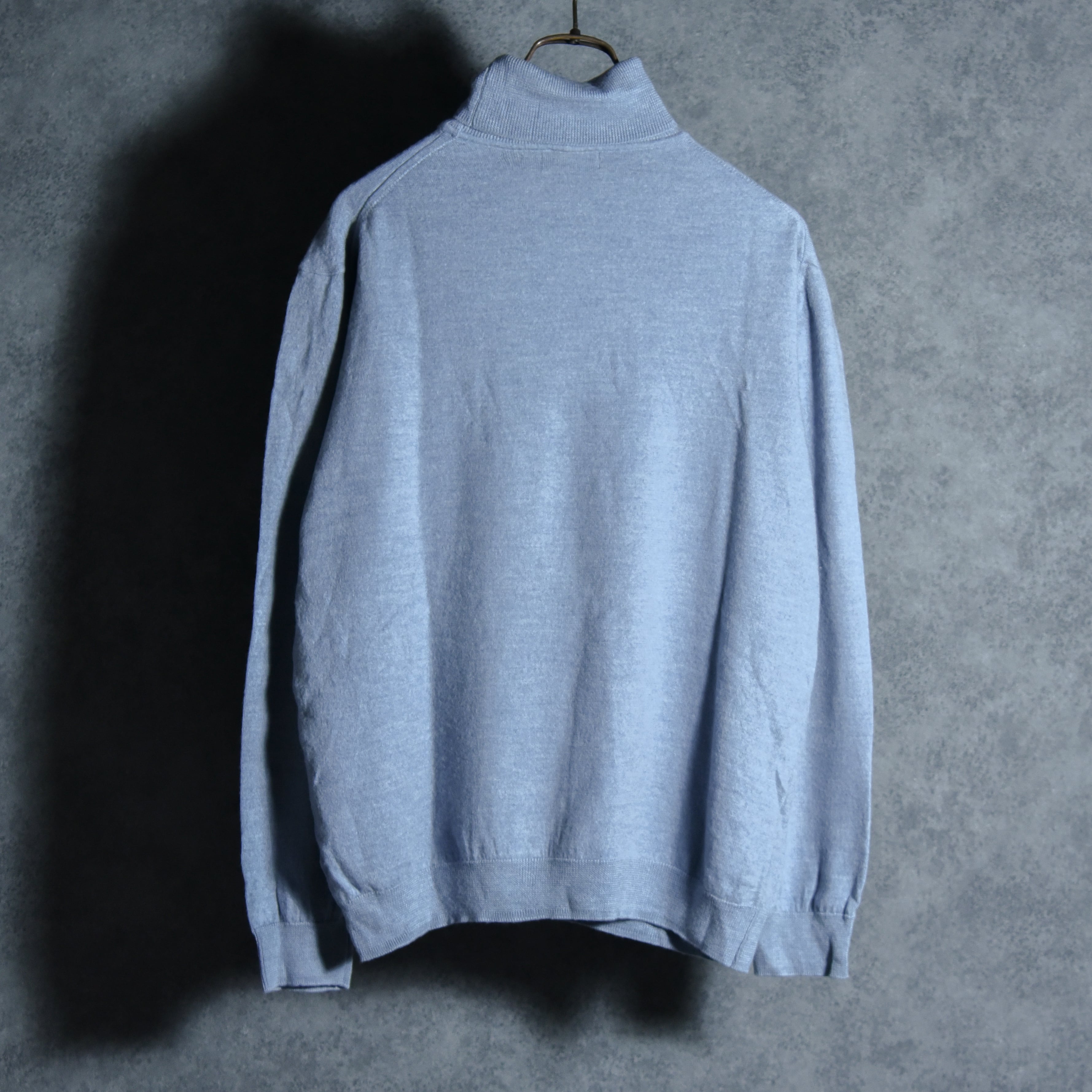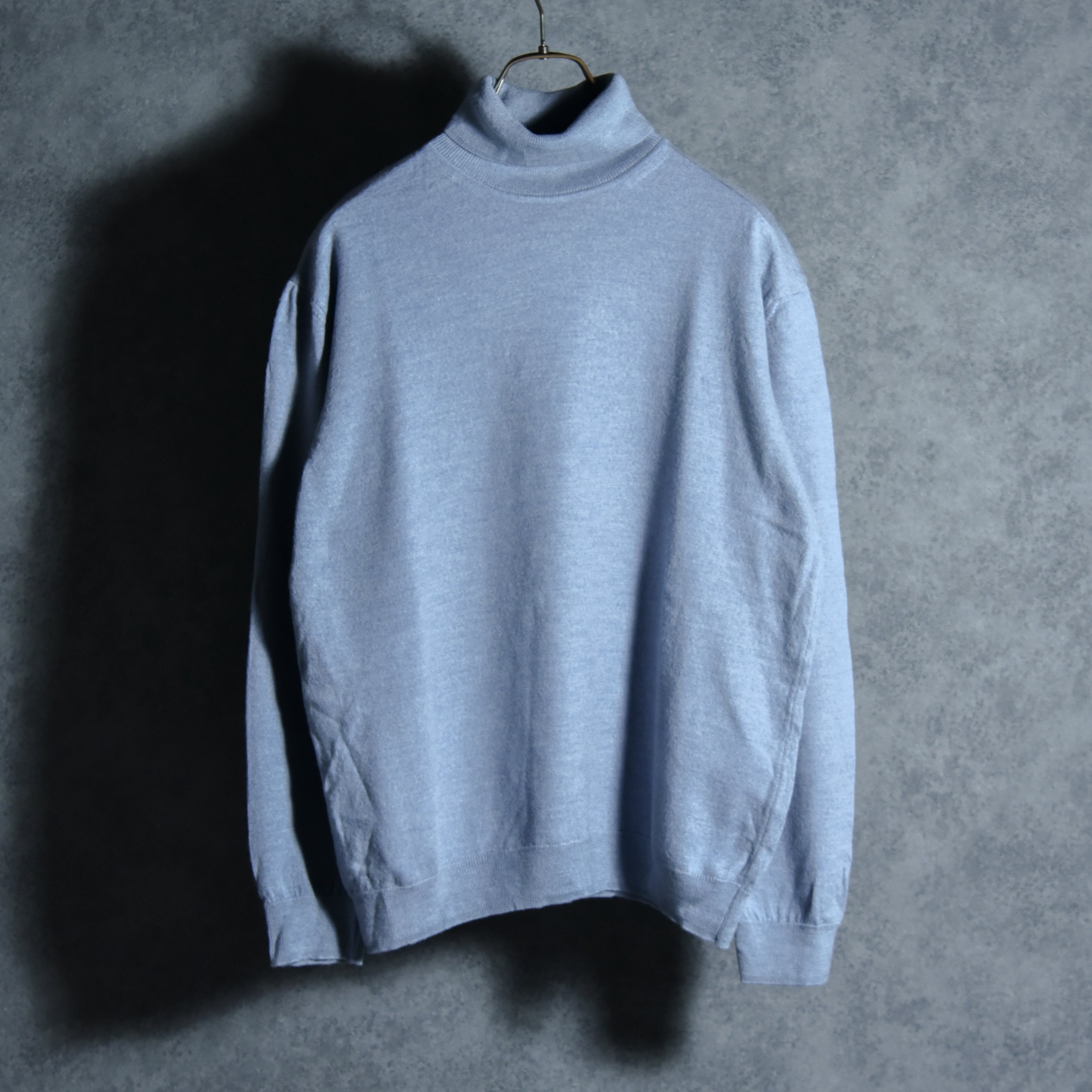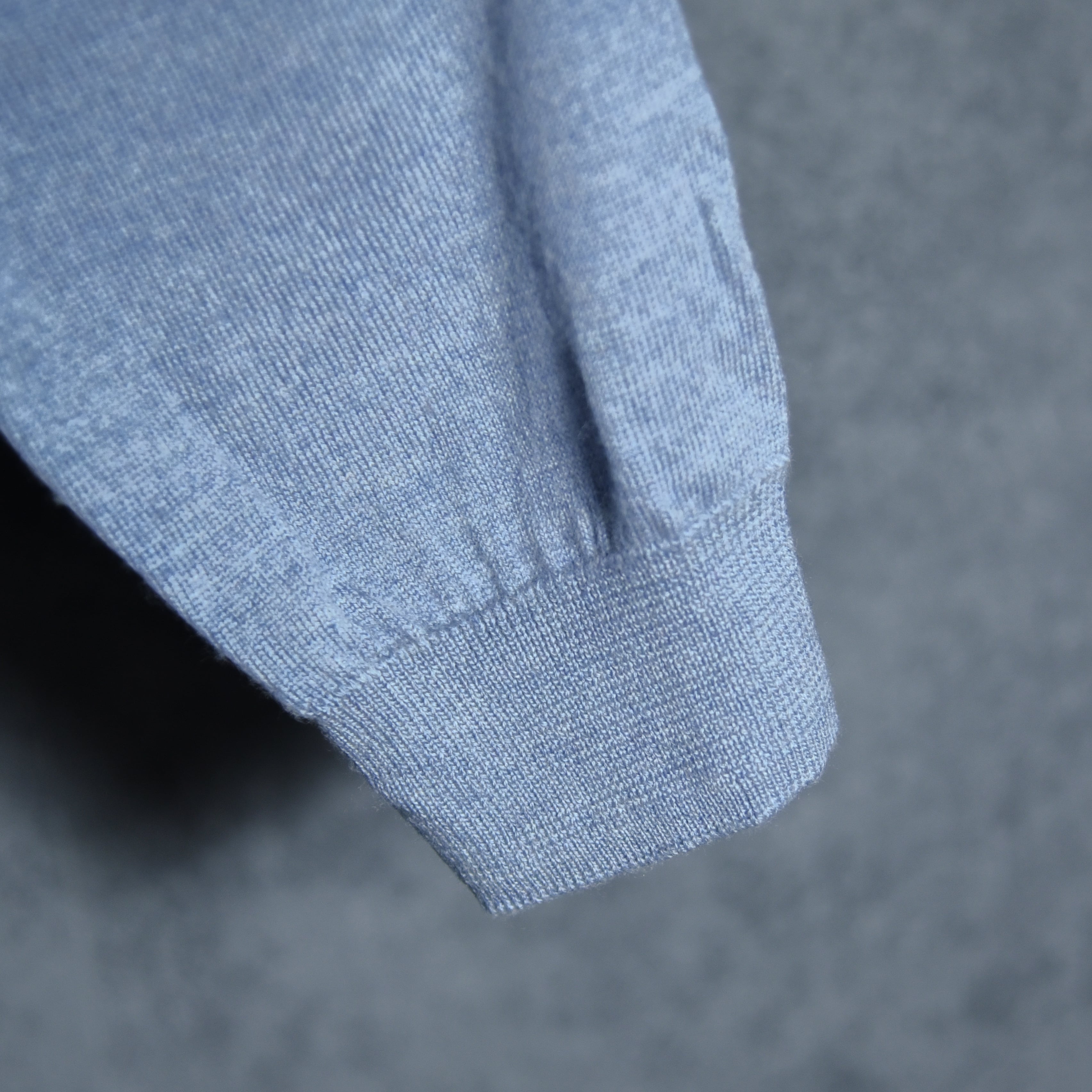 フランスやイタリアなどに輸出用として作られたもので、ベーシックなデザインながら丁寧な編み地とセンスのいい落ち着いたサックスカラーが、探すとなかなかない所謂グッドレギュラーと呼べる一着。