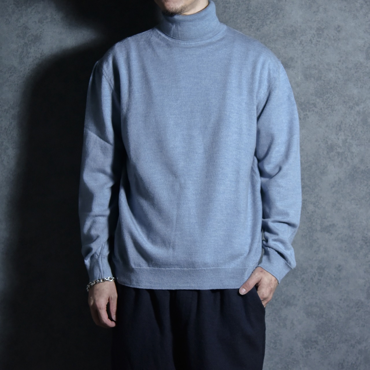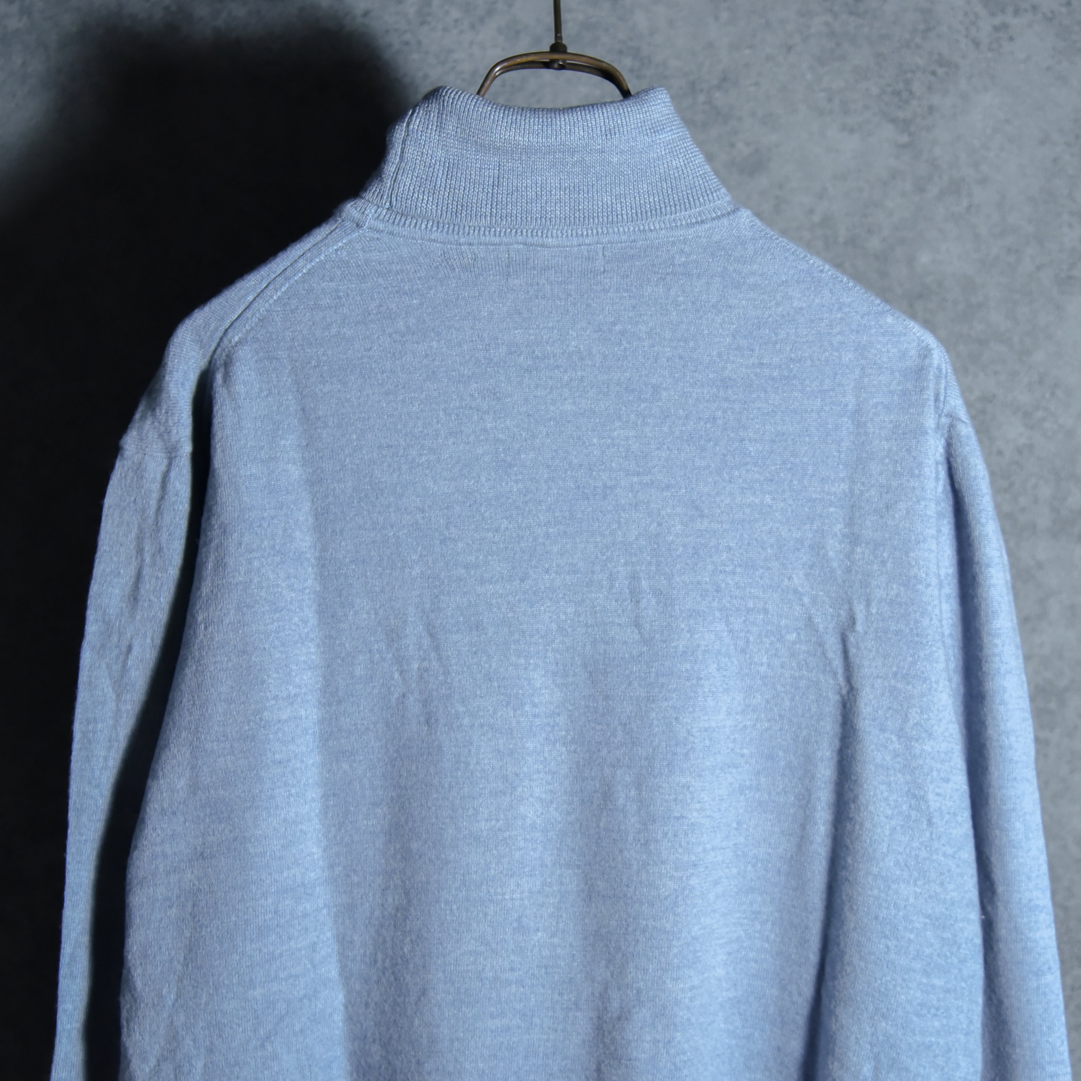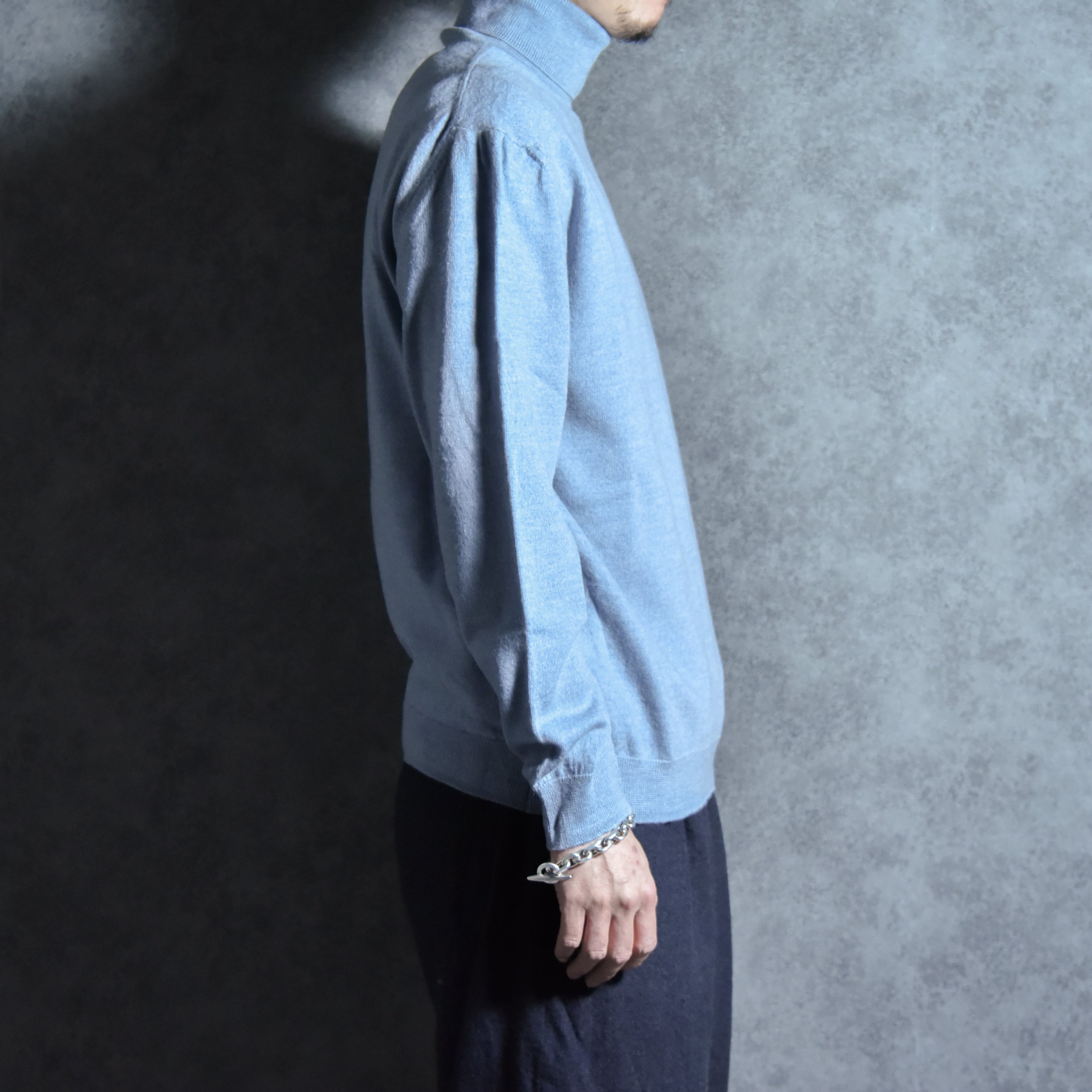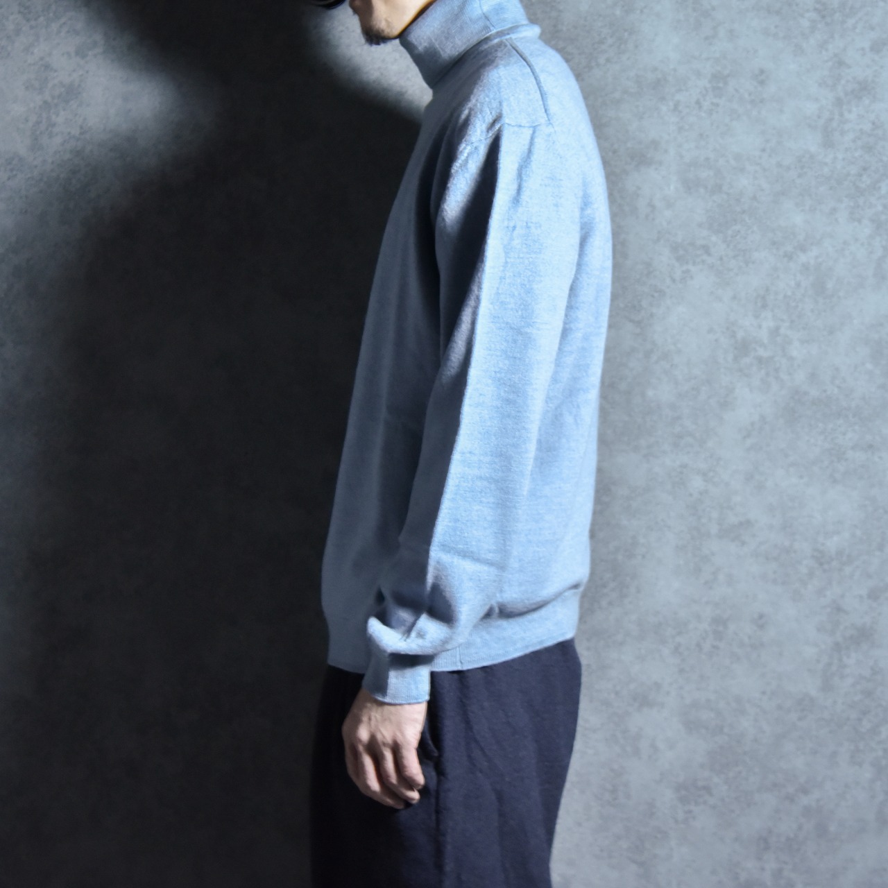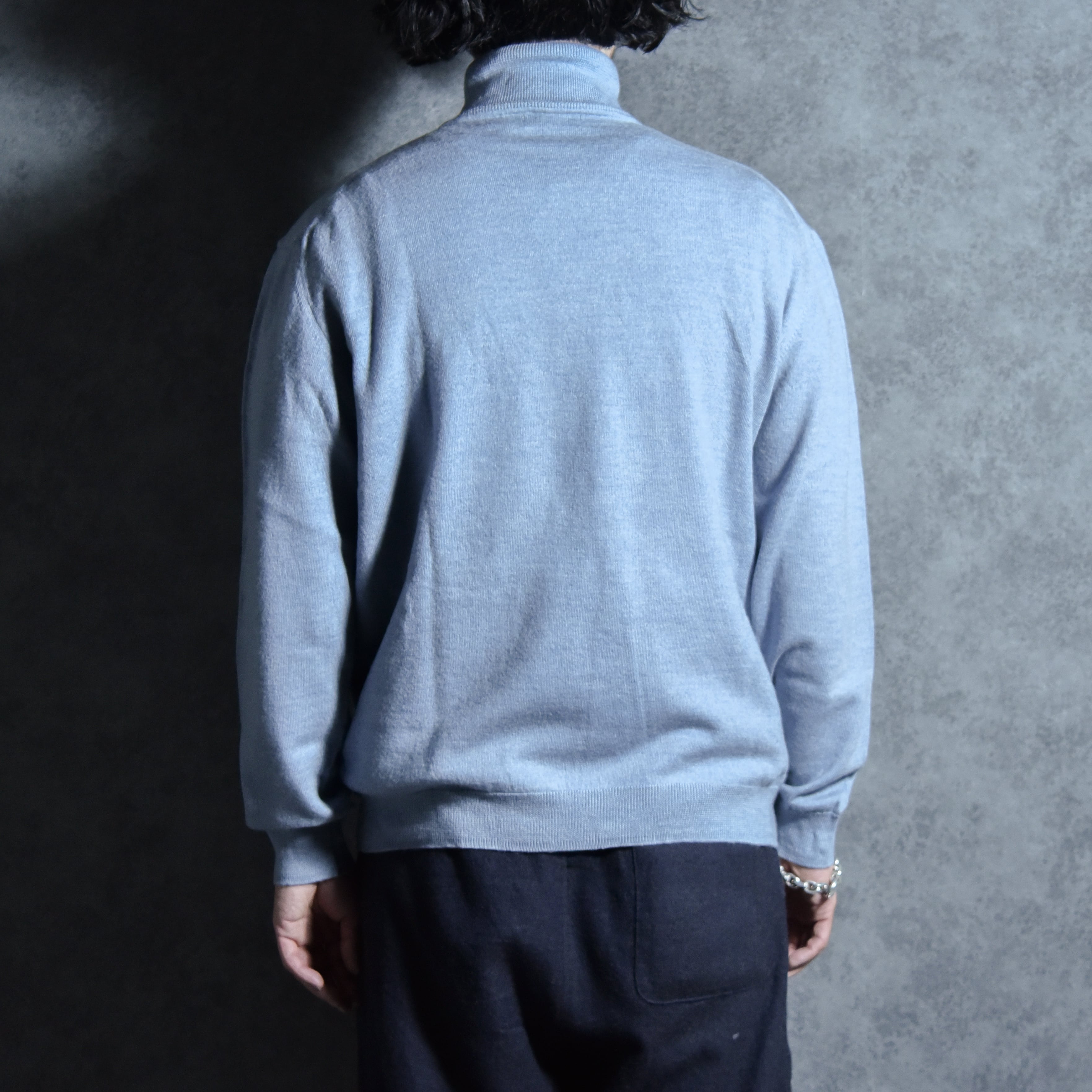 フランスやイタリアなどに輸出用として作られたもので、ベーシックなデザインながら丁寧な編み地とセンスのいい落ち着いたサックスカラーが、探すとなかなかない所謂グッドレギュラーと呼べる一着。