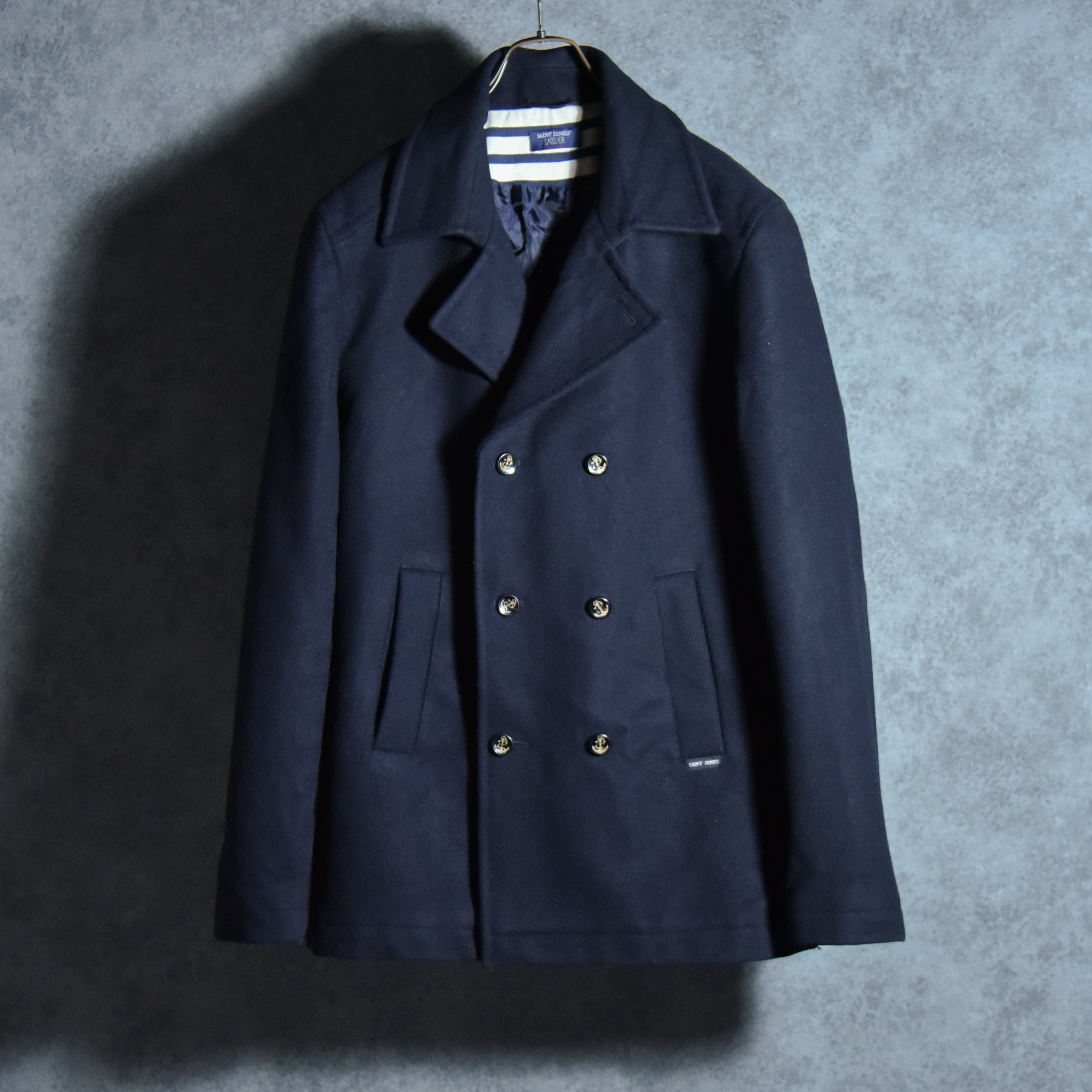 アイコン的に背裏上部に配された生地からも、バスクシャツのイメージが強いフランスの老舗カジュアルブランドの、珍しいピーコートが入荷しました。