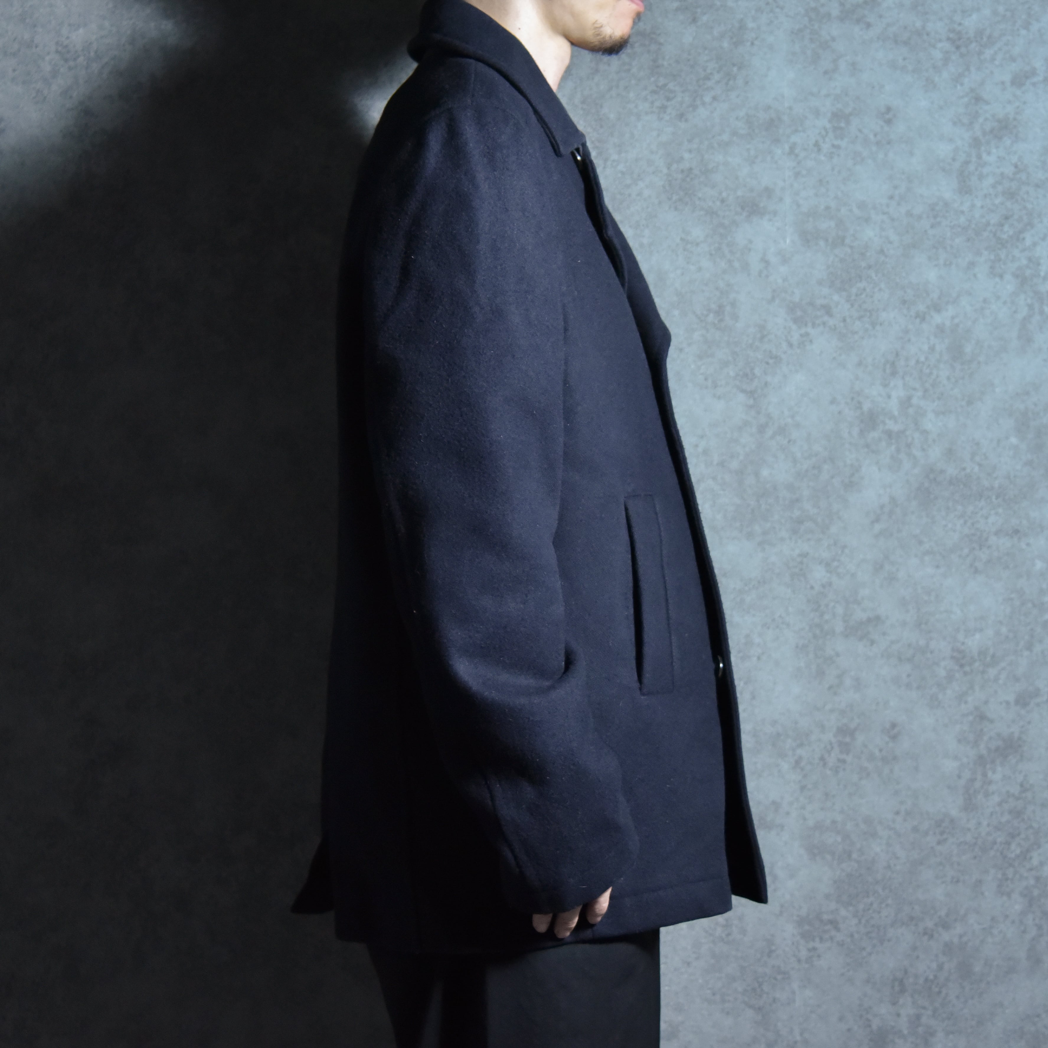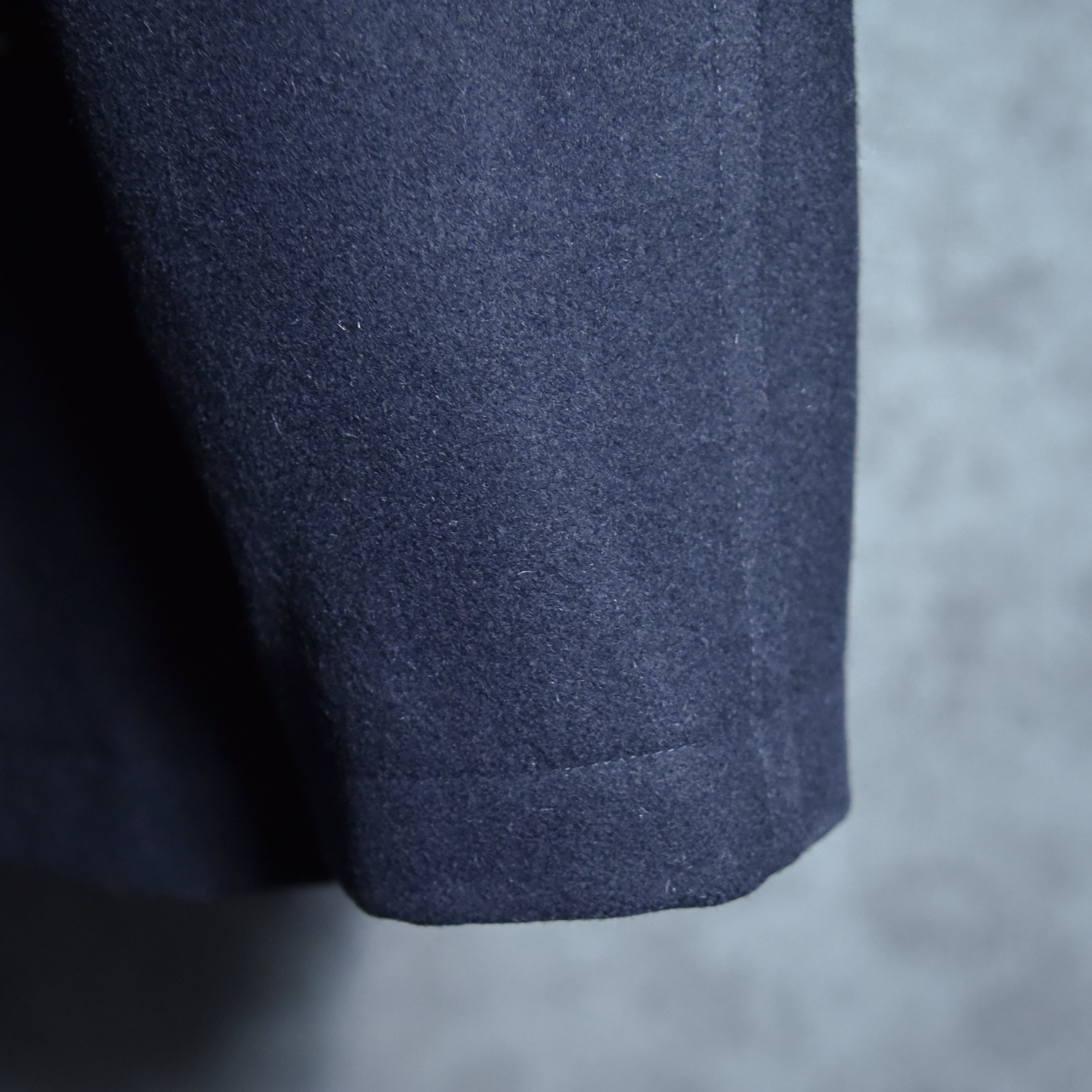素材はウール80%ナイロン20%の黄金比とも言える組成のメルトンで、しっかりと厚みはありつつ適度な柔らかさもあり、保温性や防風性は高くそれでいて着やすいコートとして理想的な生地が使われています。