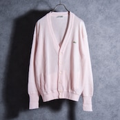 70-80s LACOSTE Spanish V-neck Knit Cardigan Pink スペイン製 ラコステ Vネック ニット カーディガン セーター ピンク