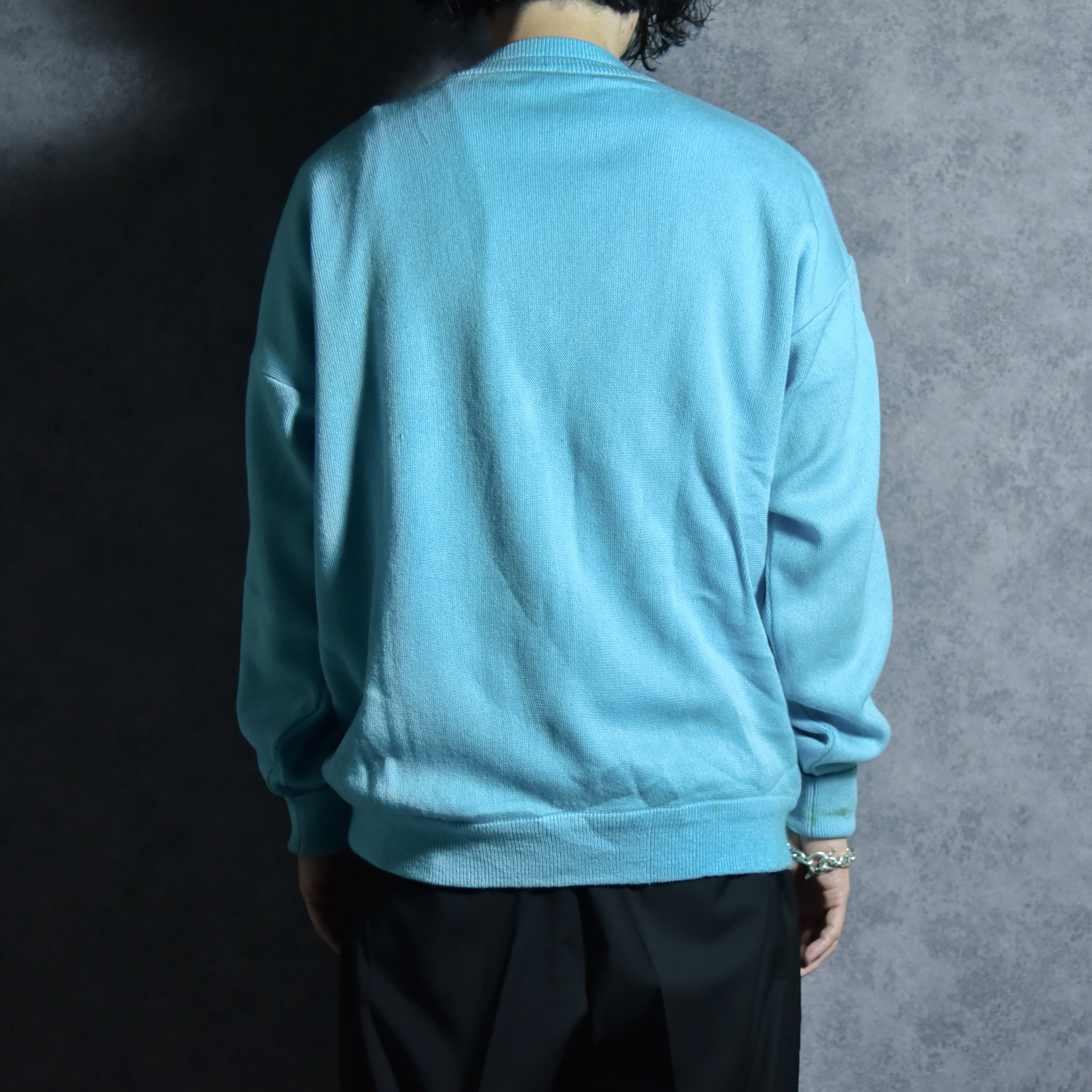 鮮やかなターコイズブルーはトップスとしてはもちろん、ベーシック系のコーディネートの差し色としても使えるヴィンテージニットです。