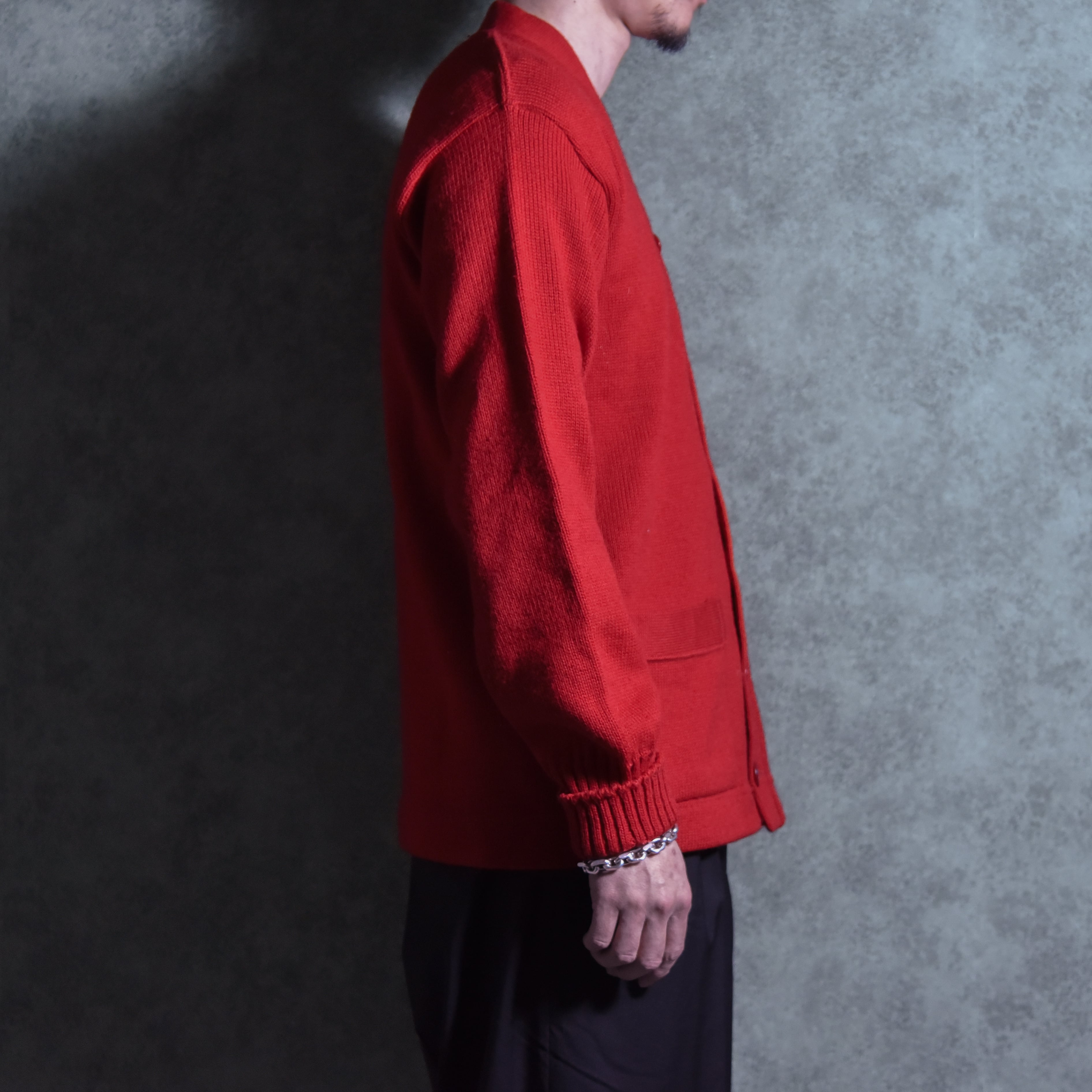 デザインはヴィンテージ独特の鮮やかななレッドカラーにパッチポケットが配置された王道スクールカーディガン。