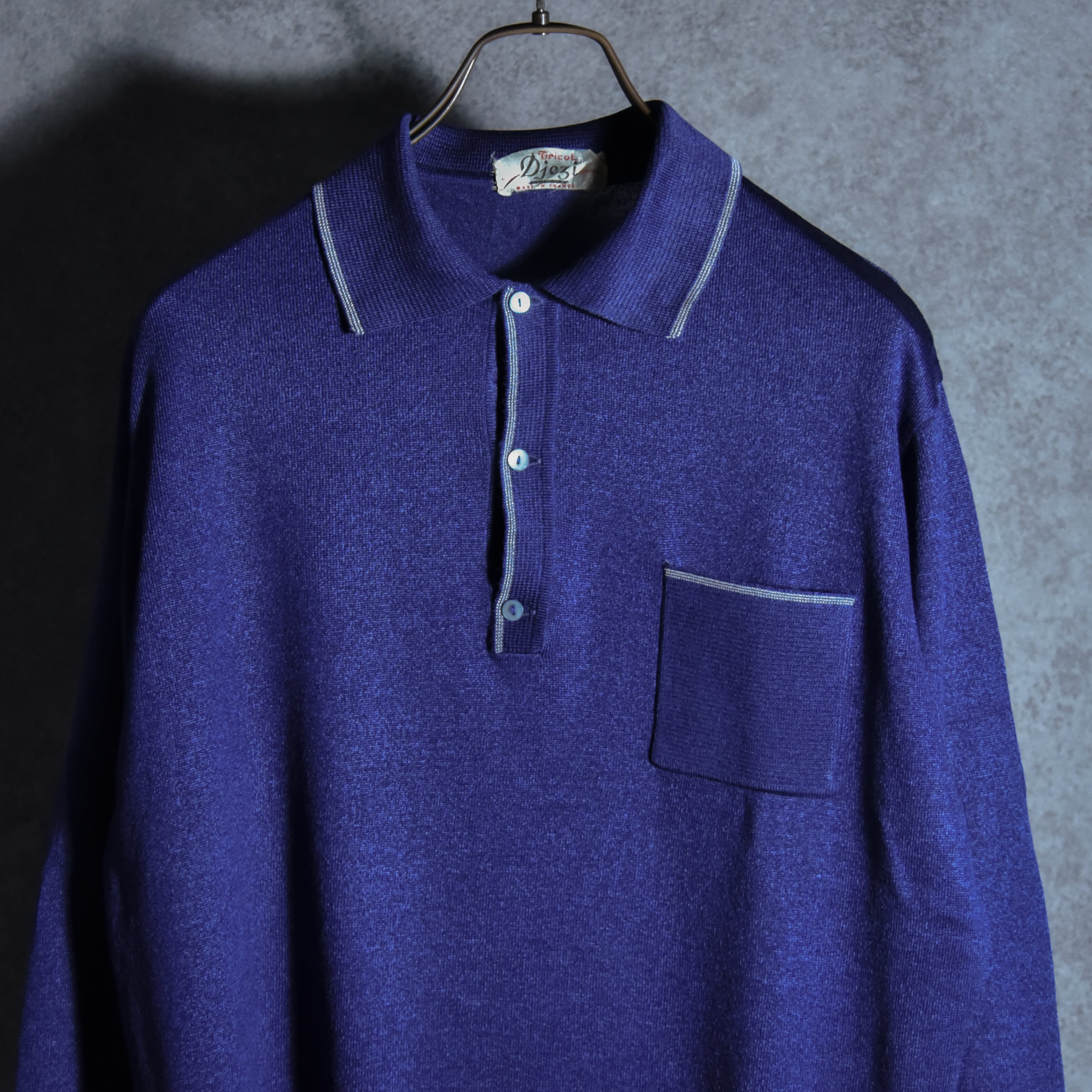 60-70s Djezi Made in France Line Knit Polo with Pocket フランス製 ライン ニットポロ
