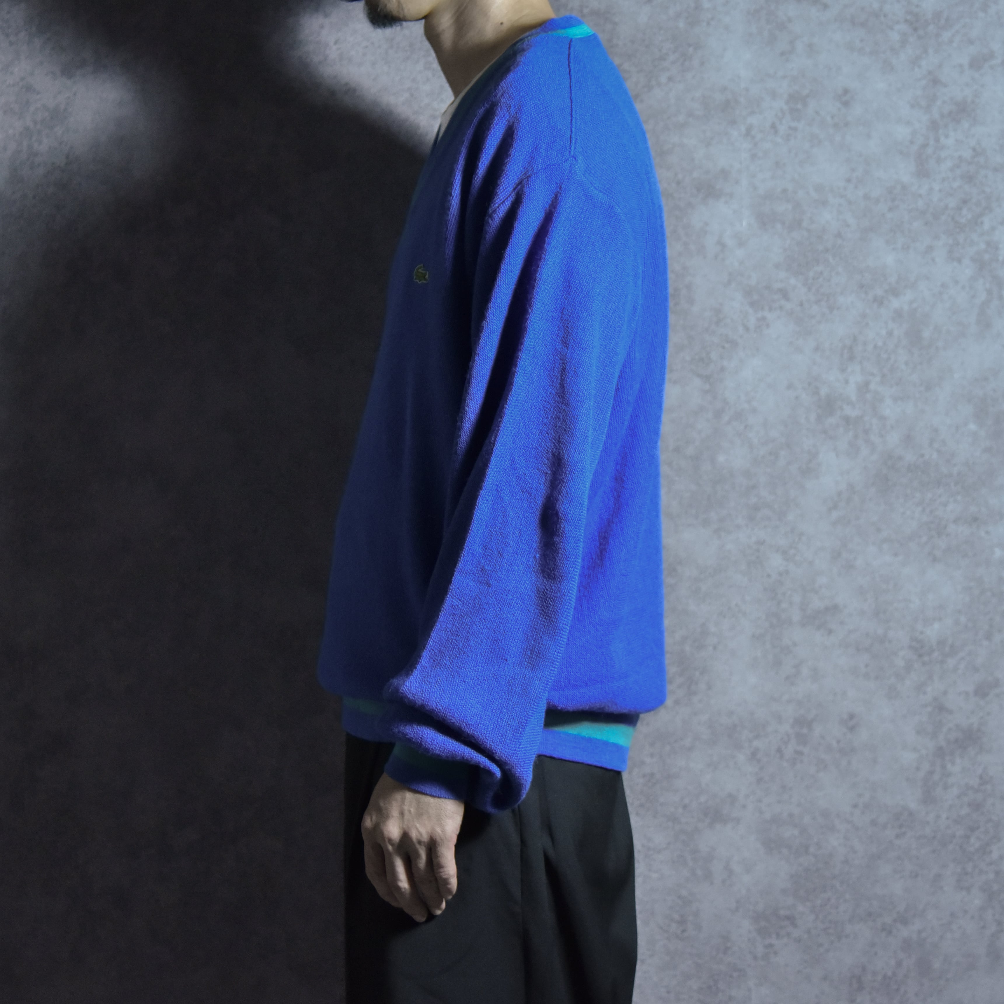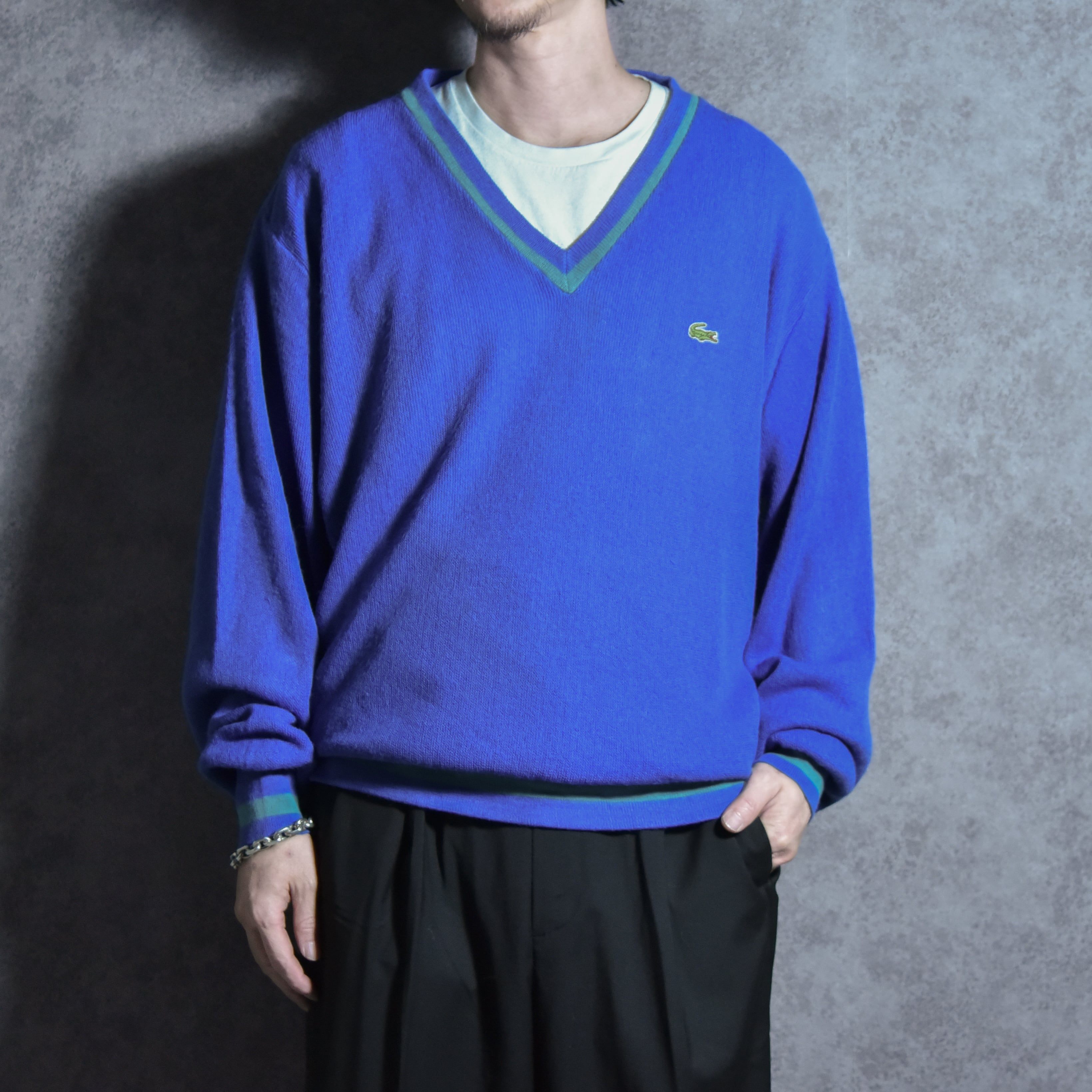 80-90s IZOD LACOSTE V Neck Line Rib Pull Over Vintage Knit アイゾッド ラコステ ライン リブ Vネック ヴィンテージ ニット アメリカ製