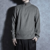 冬はジャケットやコートのインナーとして首元からファスナーやレザースライダーを覗かせアクセントに、春秋は一枚着としてシャツを中に着たりと夏を除いた3シーズン活躍するアイテム。