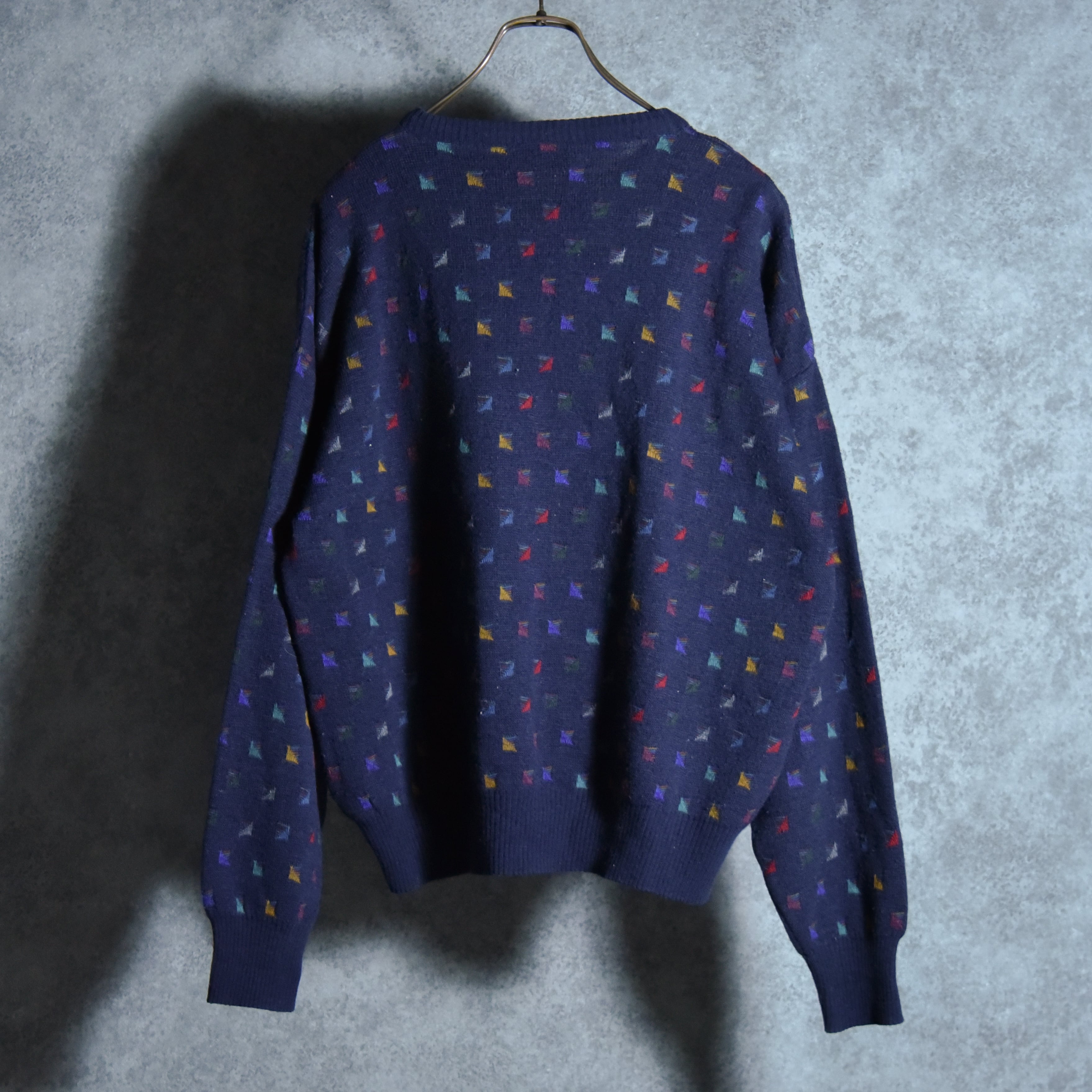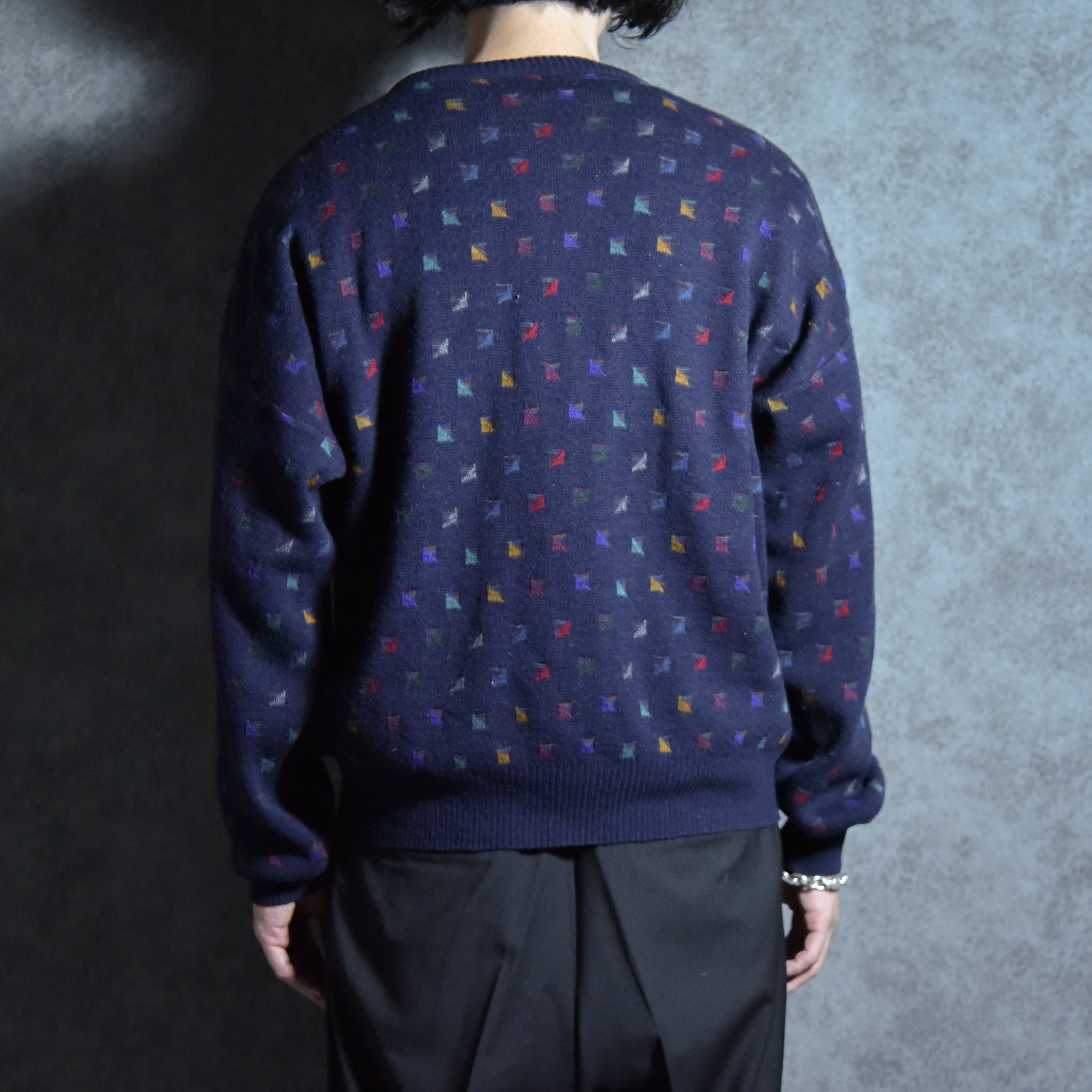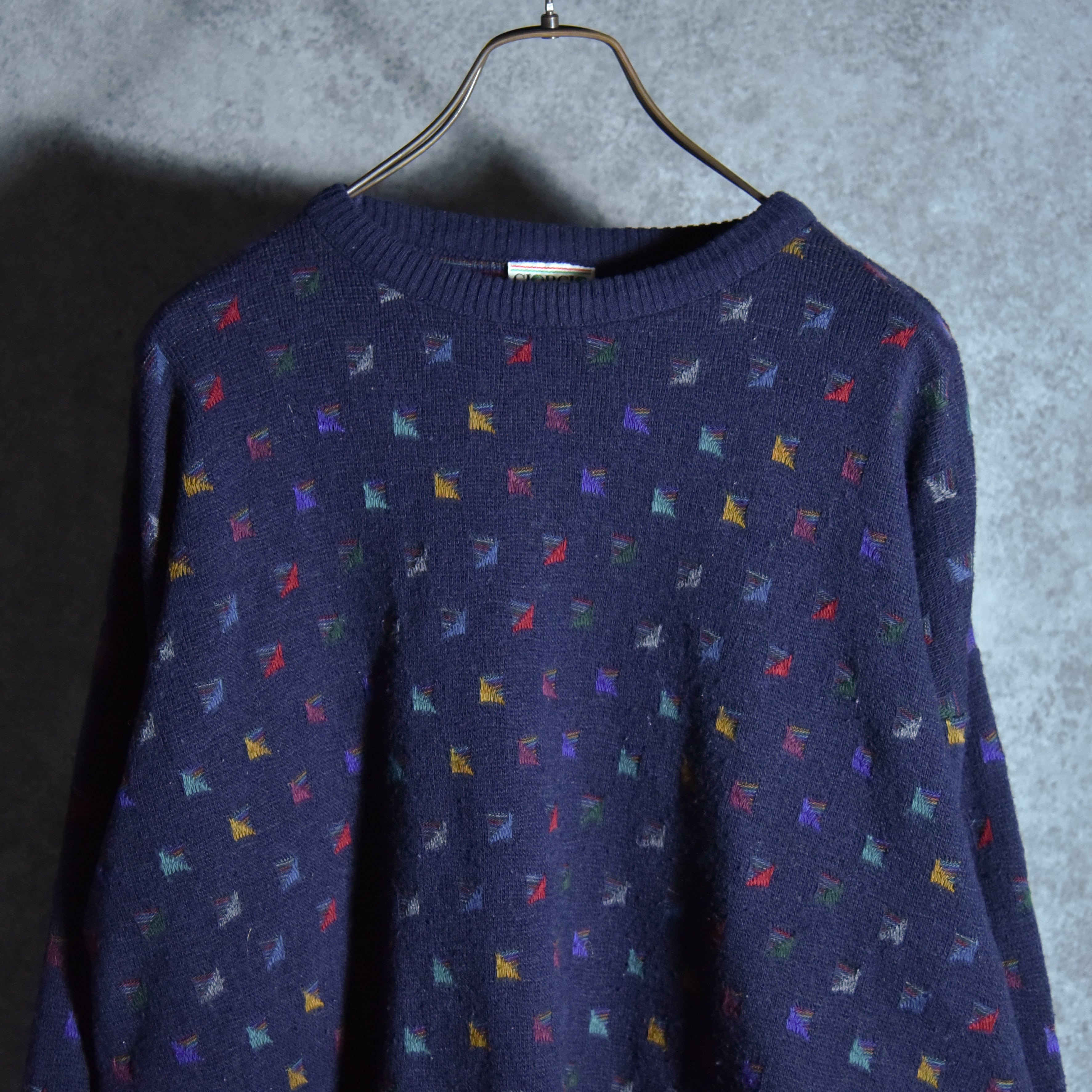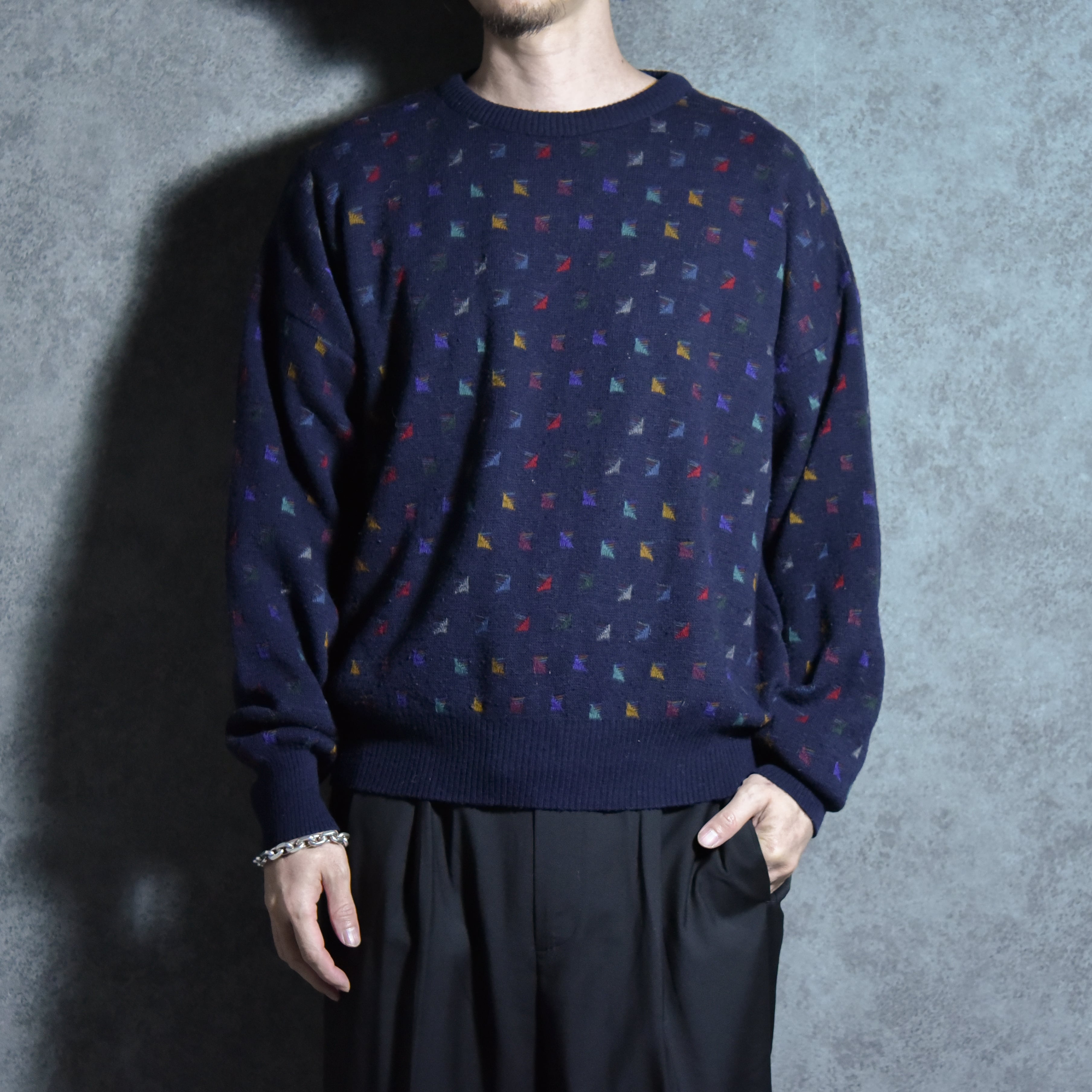 80-90s Jacquard Giorgio di Firenze Geometry Vintage Crew Neck Sweater Made in Italyジョルジオ・ディ・フィレンツェ ジャカード クルーネック セーター