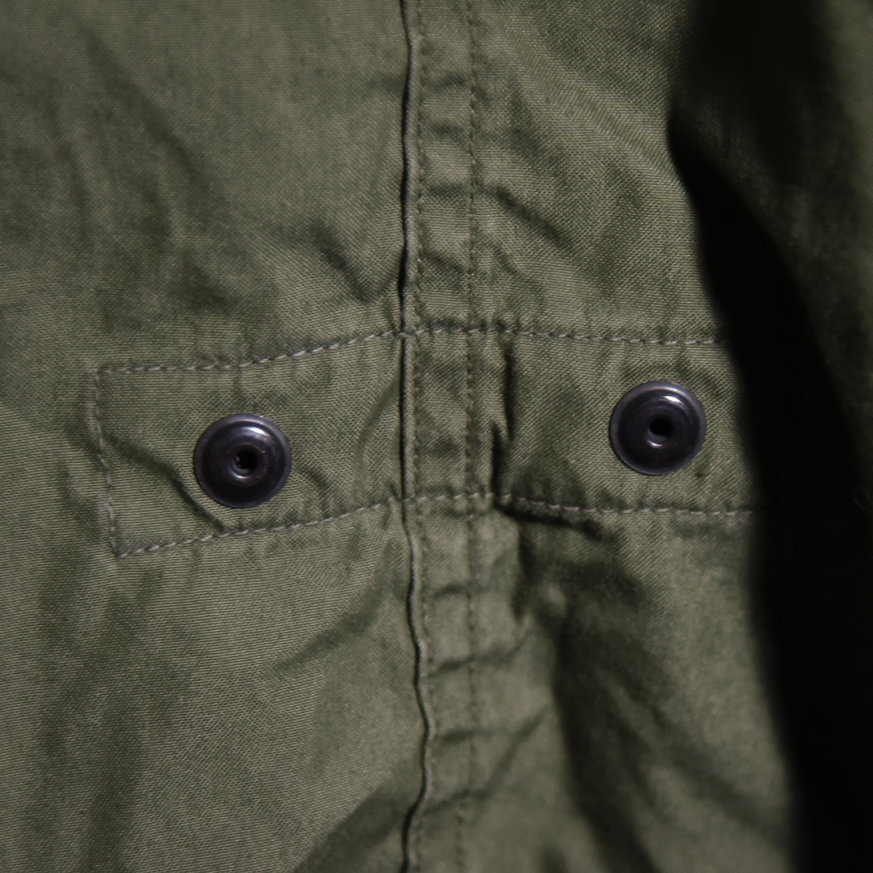 M51と異なり、シェルにはフードがついておらず、タックやパッカリングの入った太めのアームなどバサっと着るイメージが良くミリタリーアイテムの中でも非常に人気の高いアイテムです。
