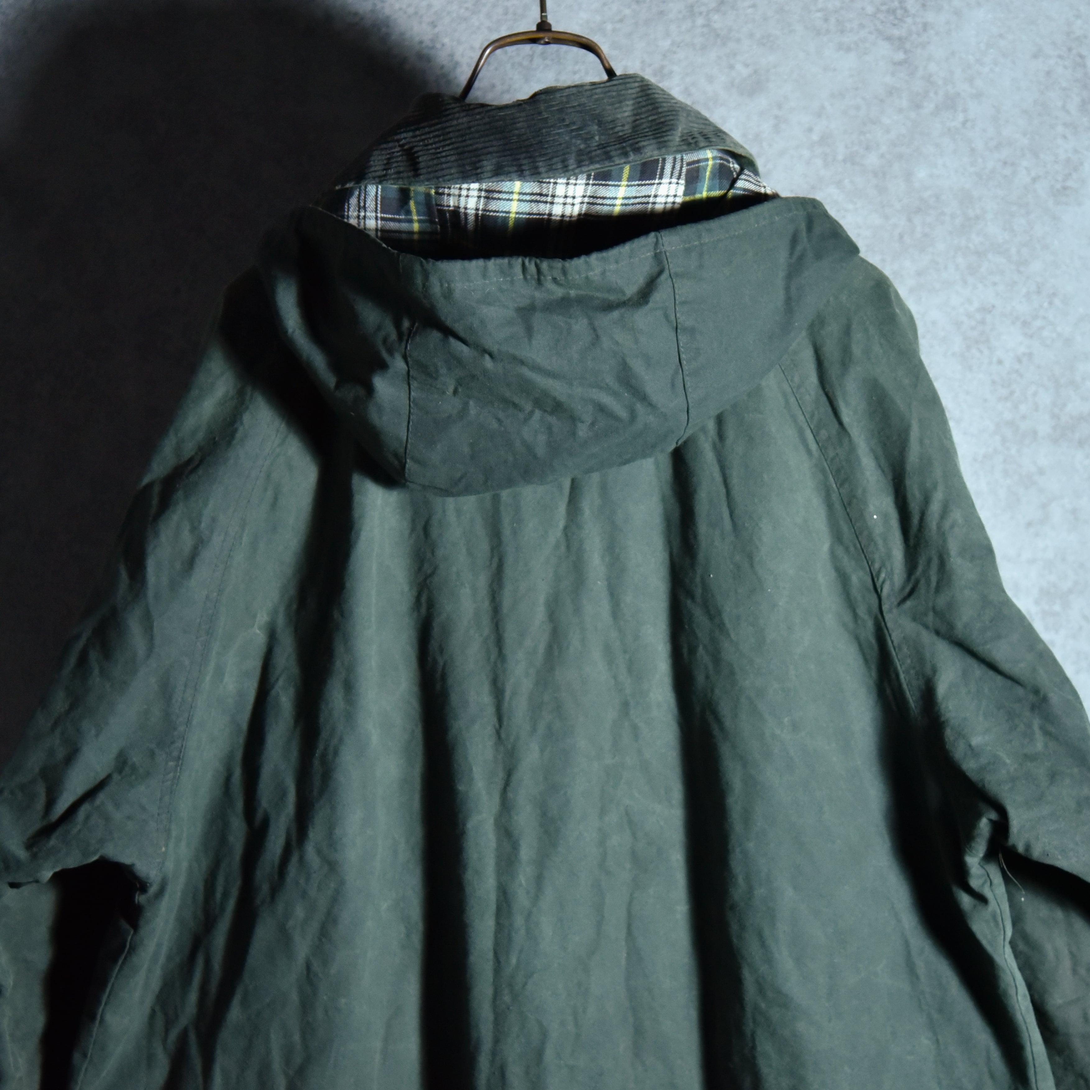 また欠損しがちなフードも揃った個体で、アウトドアやフィッシングなど、ハードな用途で着用されるため、状態の良いものになかなか出逢えないヴィンテージのワックスジャケットですが、こちらは全体的にシワ感やわずか擦れ、小傷があるものの生地の状態は年代からすると状態の良い一着です。