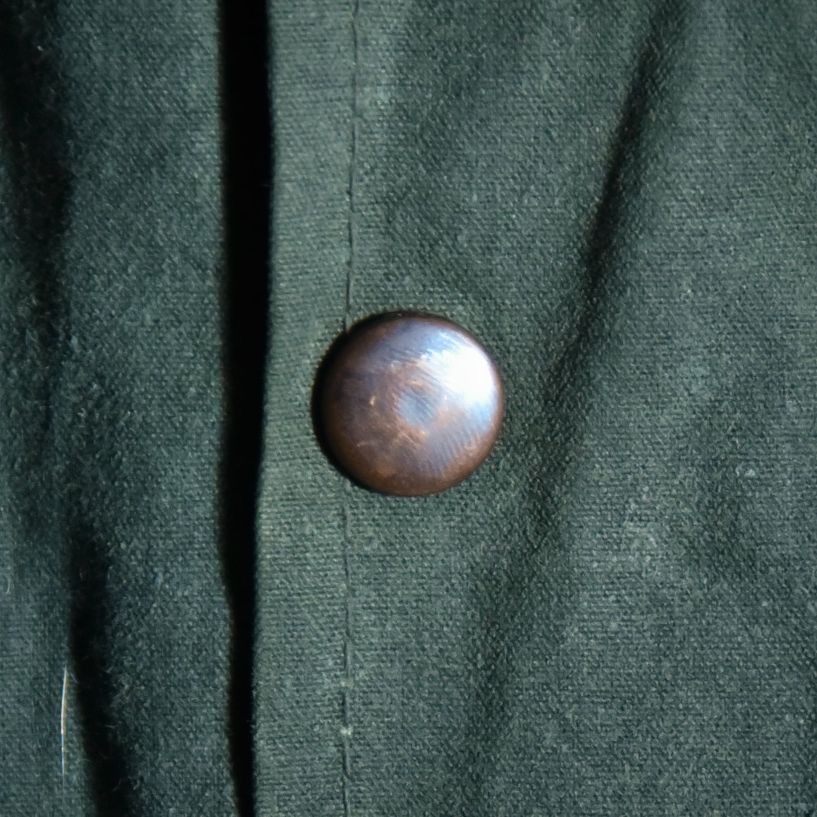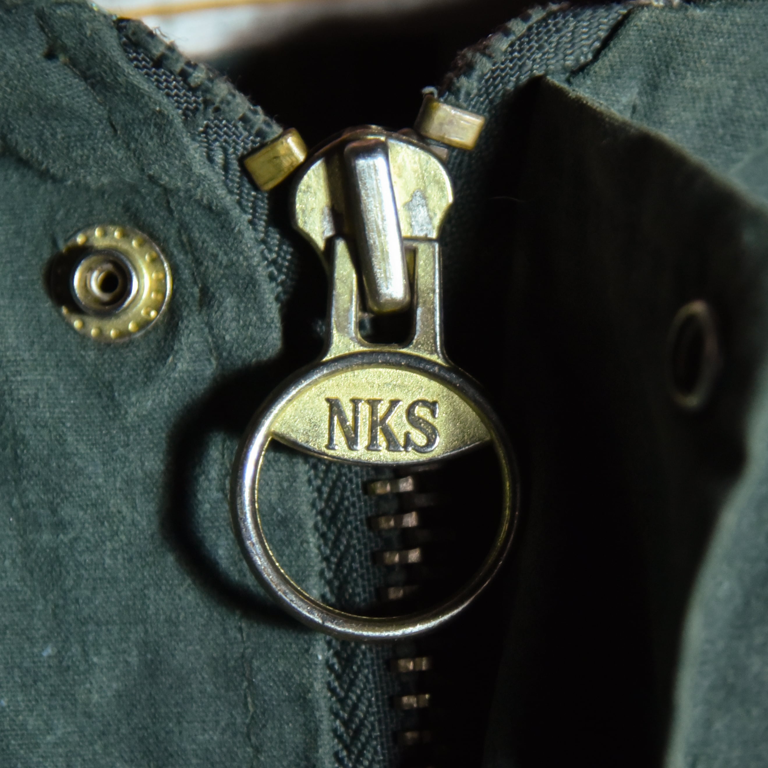 フラップ付きの丸みを帯びたポケットとハンドウォーマー、ブラスの逆開のダブルファスナーと前立てによる風除けなど一見するとイギリスを代表するワックスジャケットのブランドの同年代の個体と見間違えるほどの高いクオリティの一着。