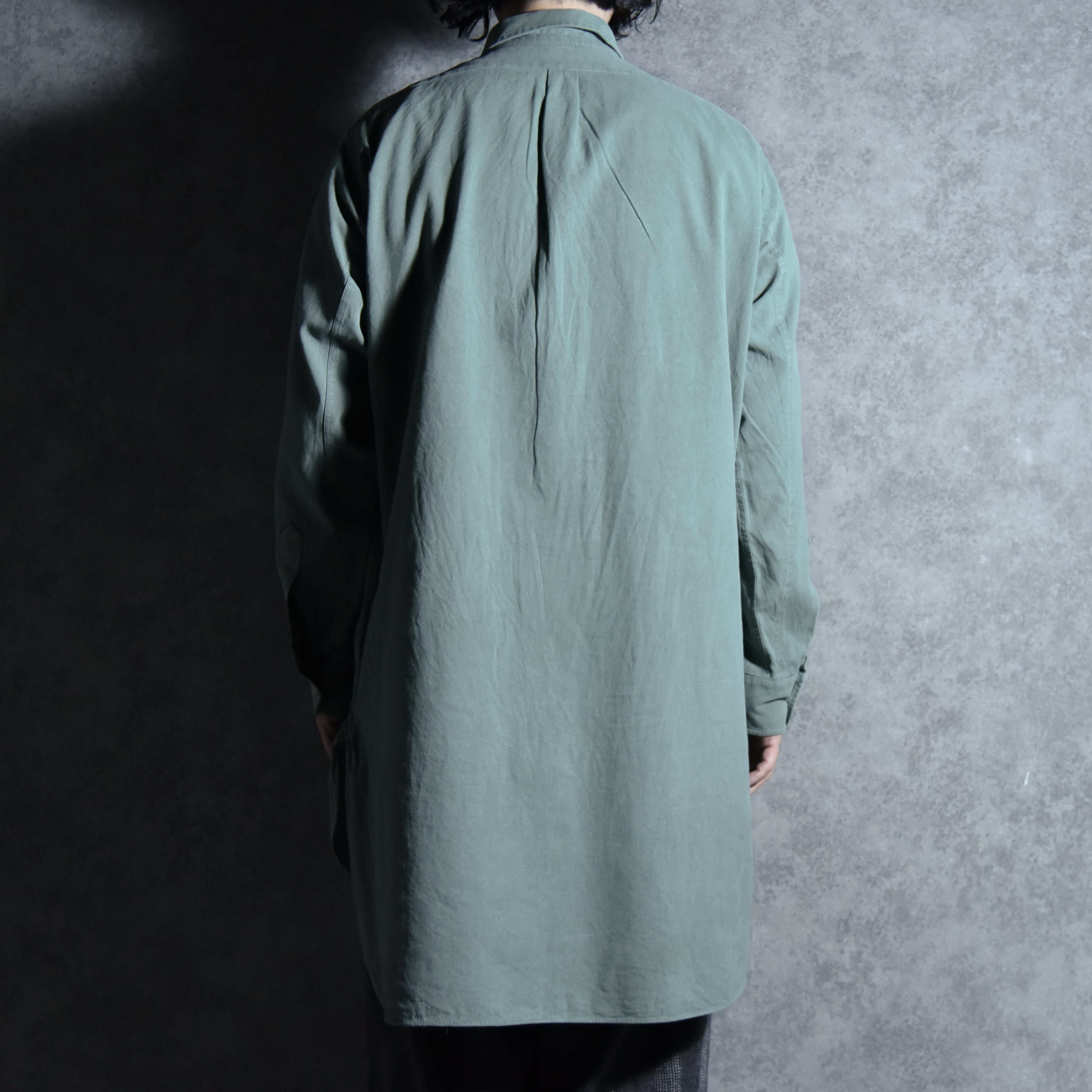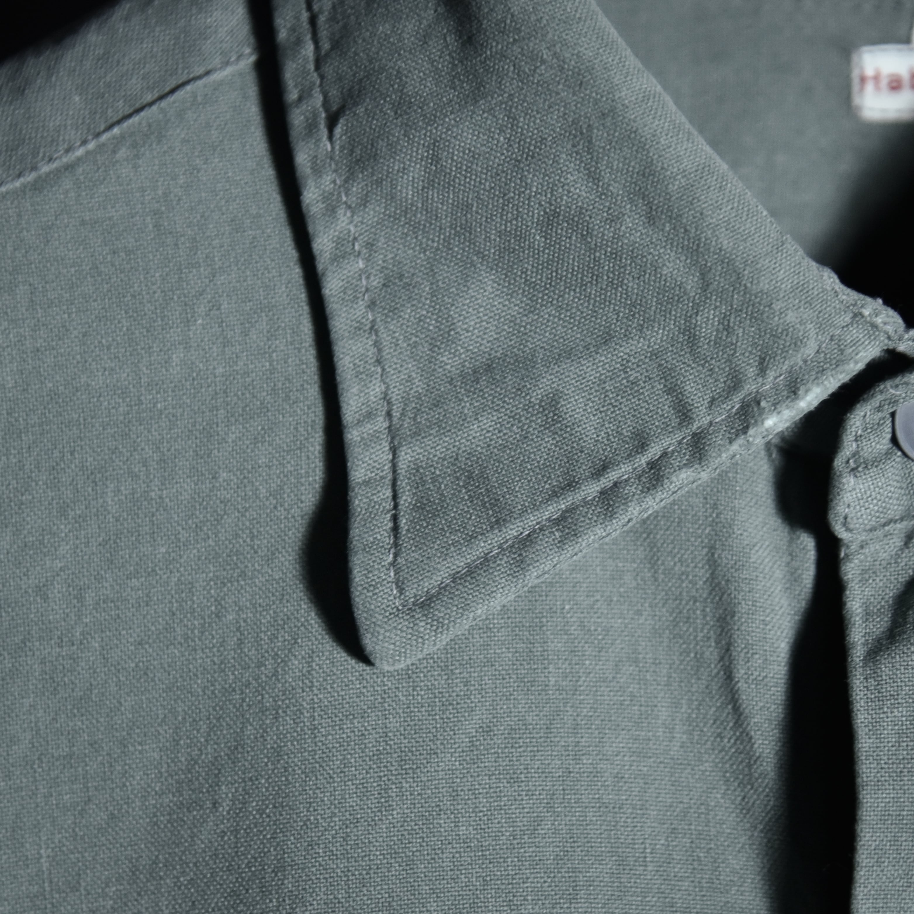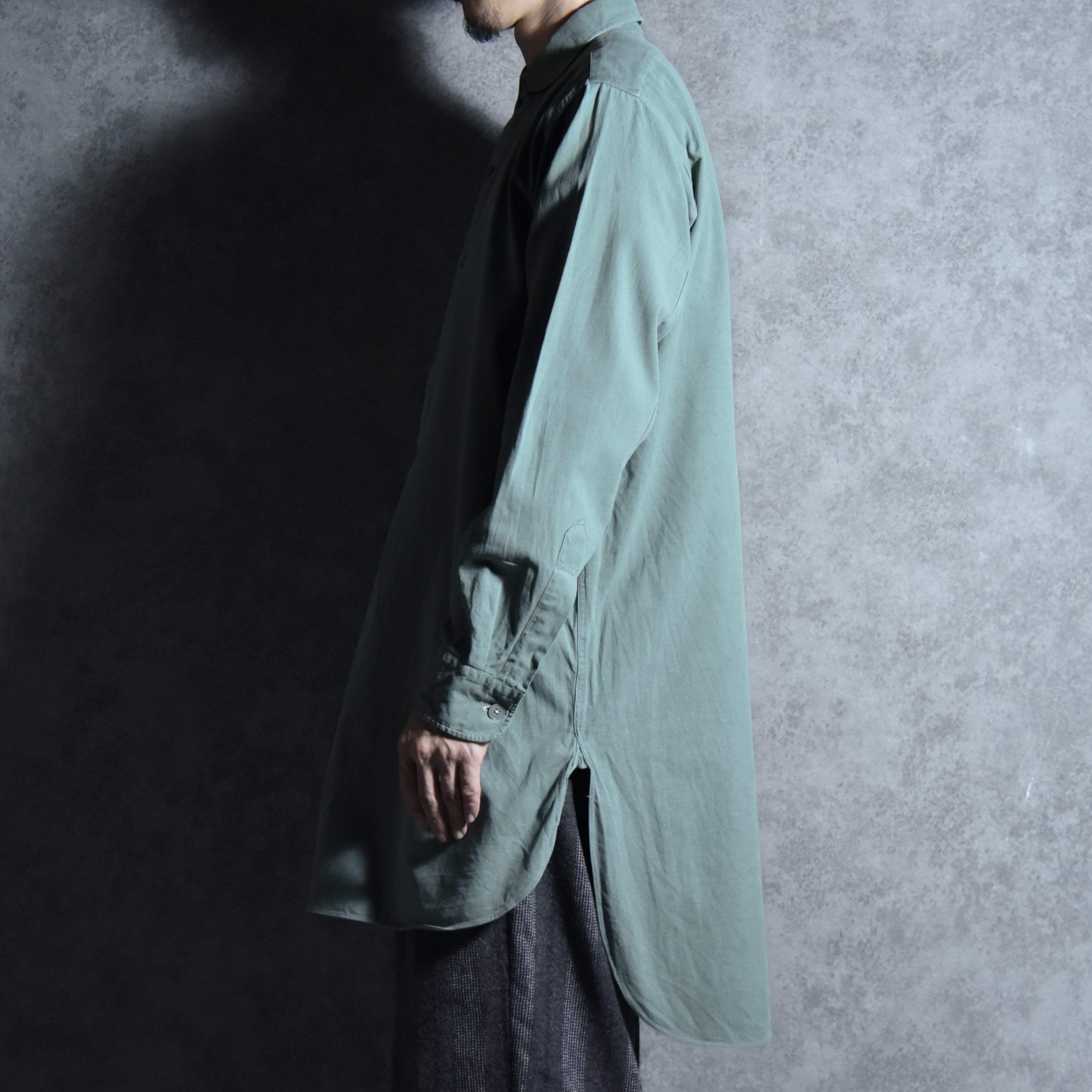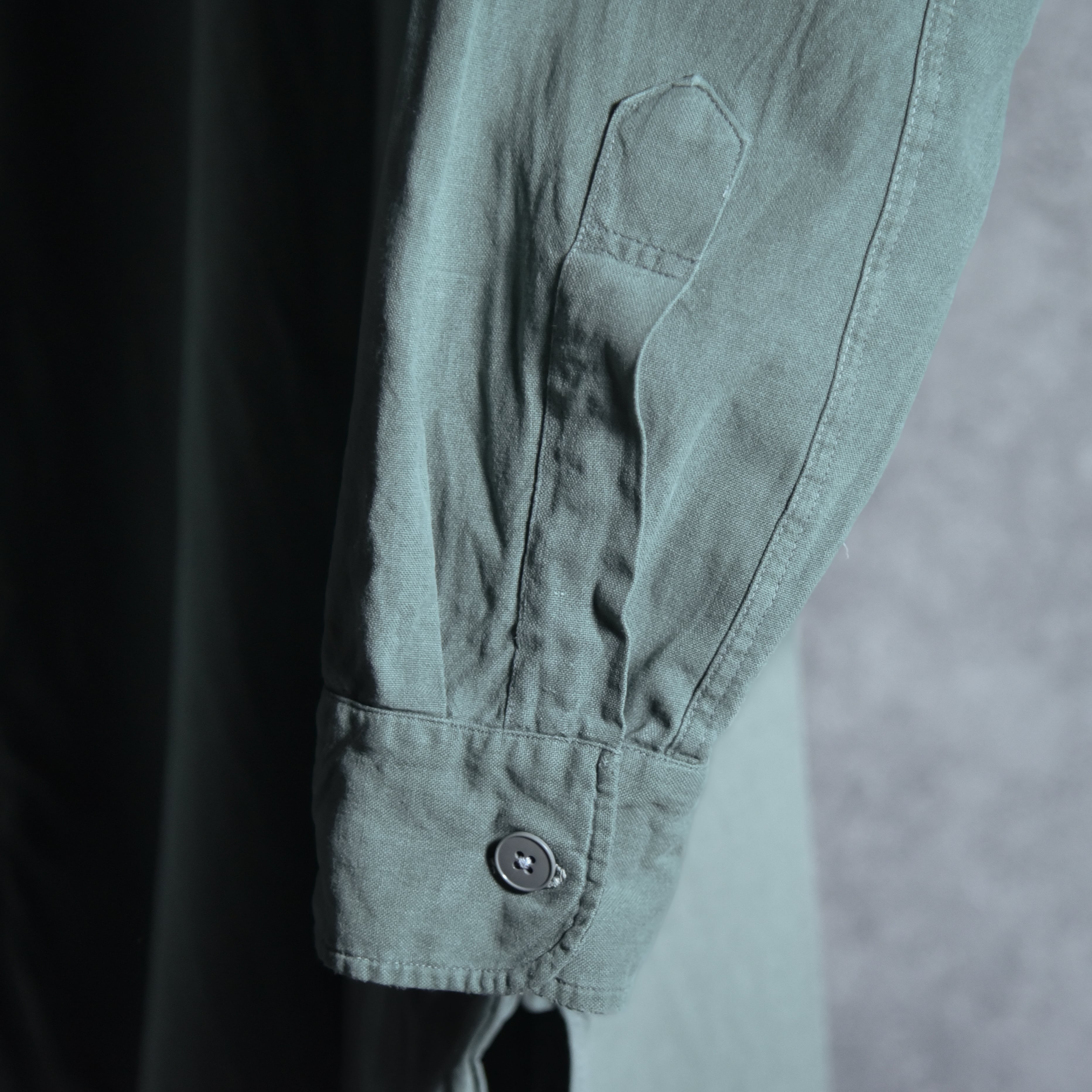 年代によってはエポーレットがつく個体もありますが、こちらは元々ついておらず、ユーロのグランパシャツのような雰囲気で着用できます。