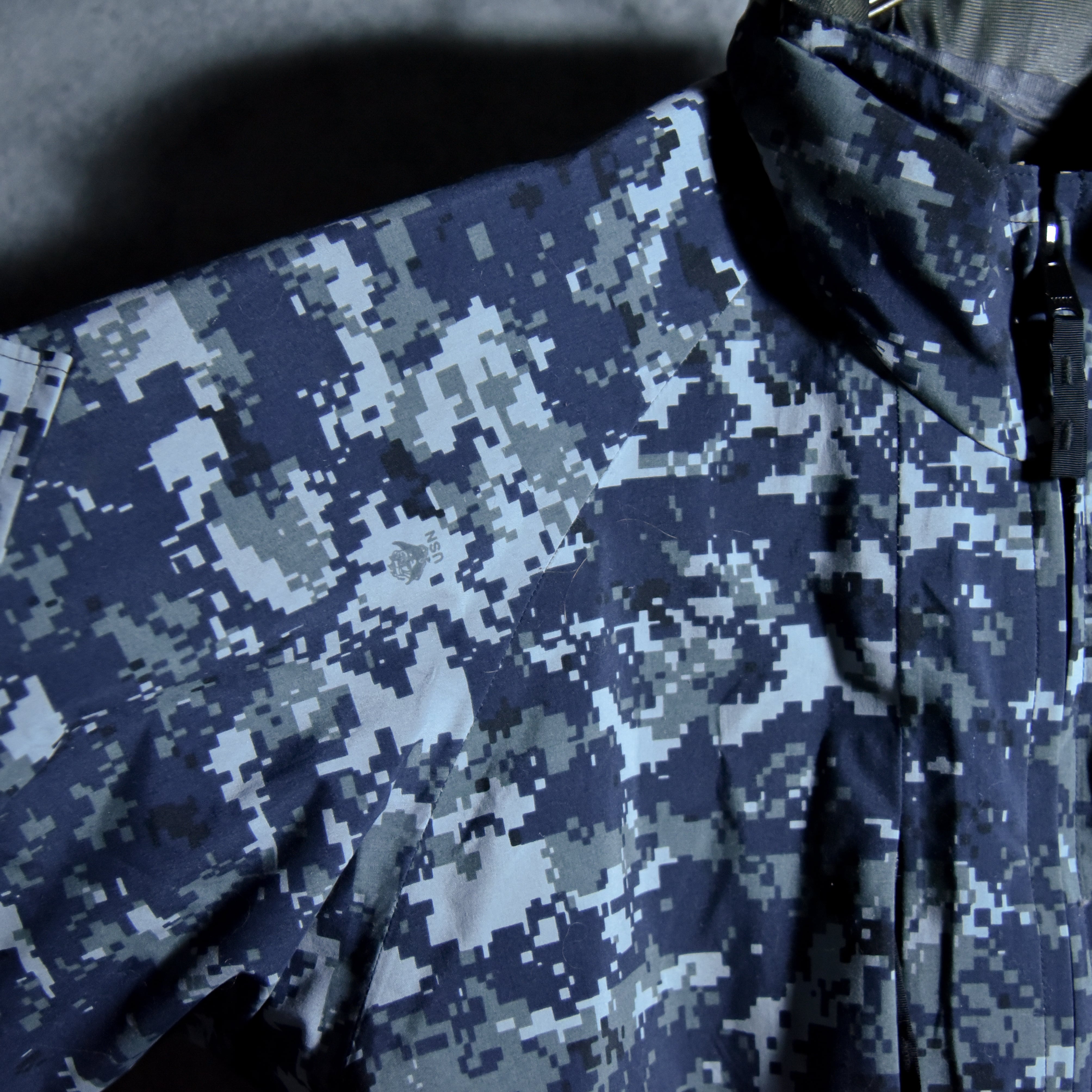 2000年代に海軍で使用されていたネイビーカラーのデジカモで、サンドベージュやオリーブに比べ、都会的でファッションにも取り入れやすい名作です。