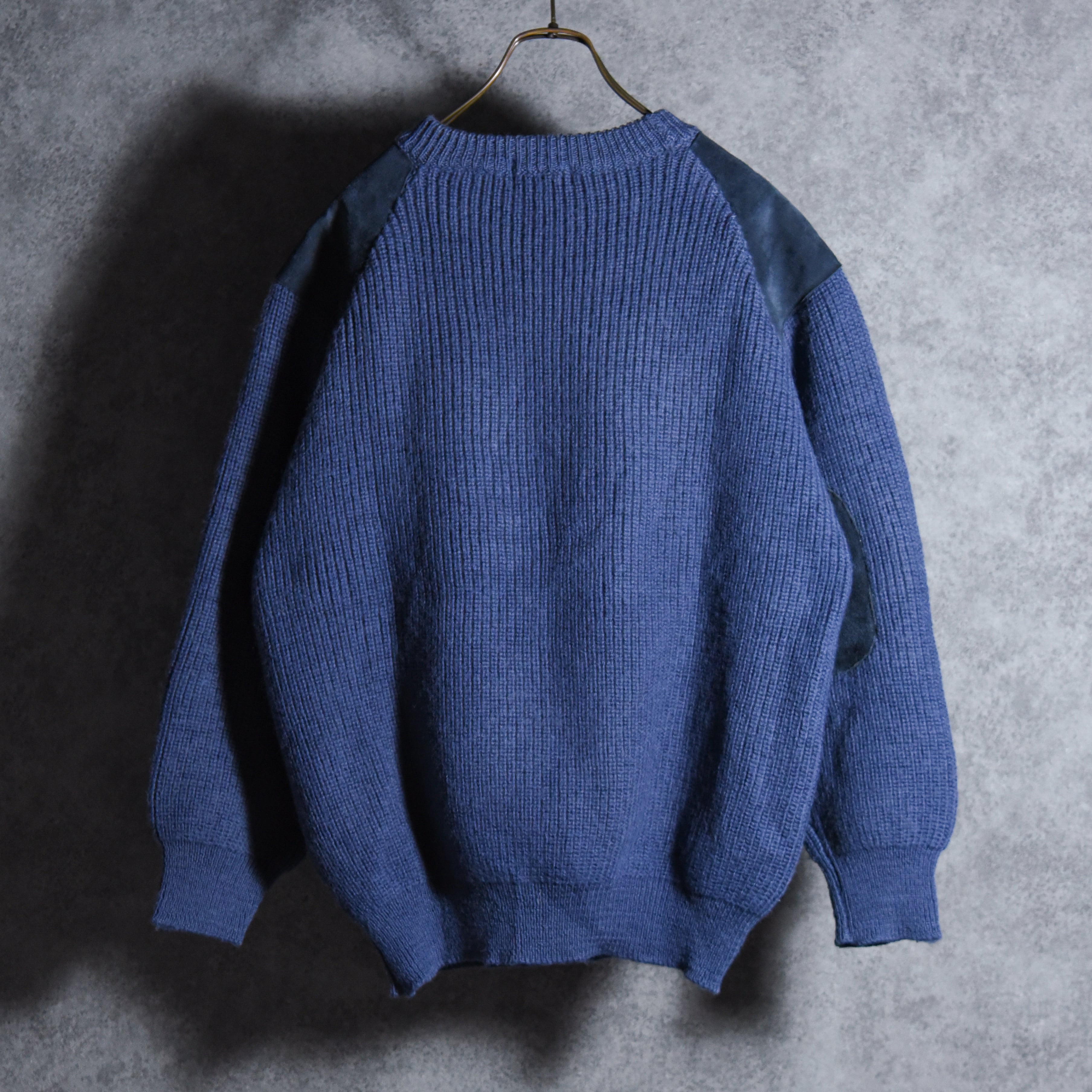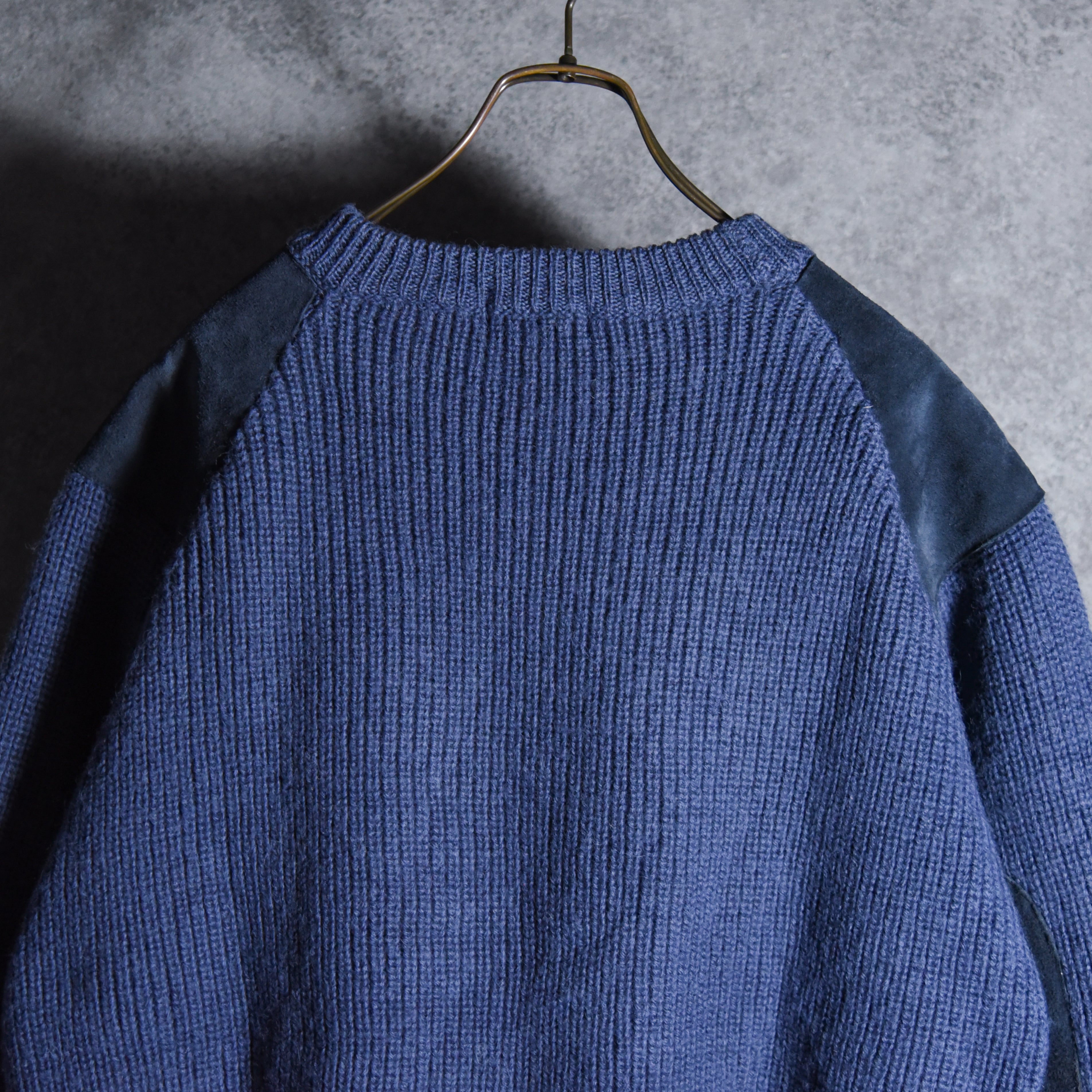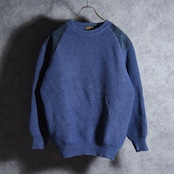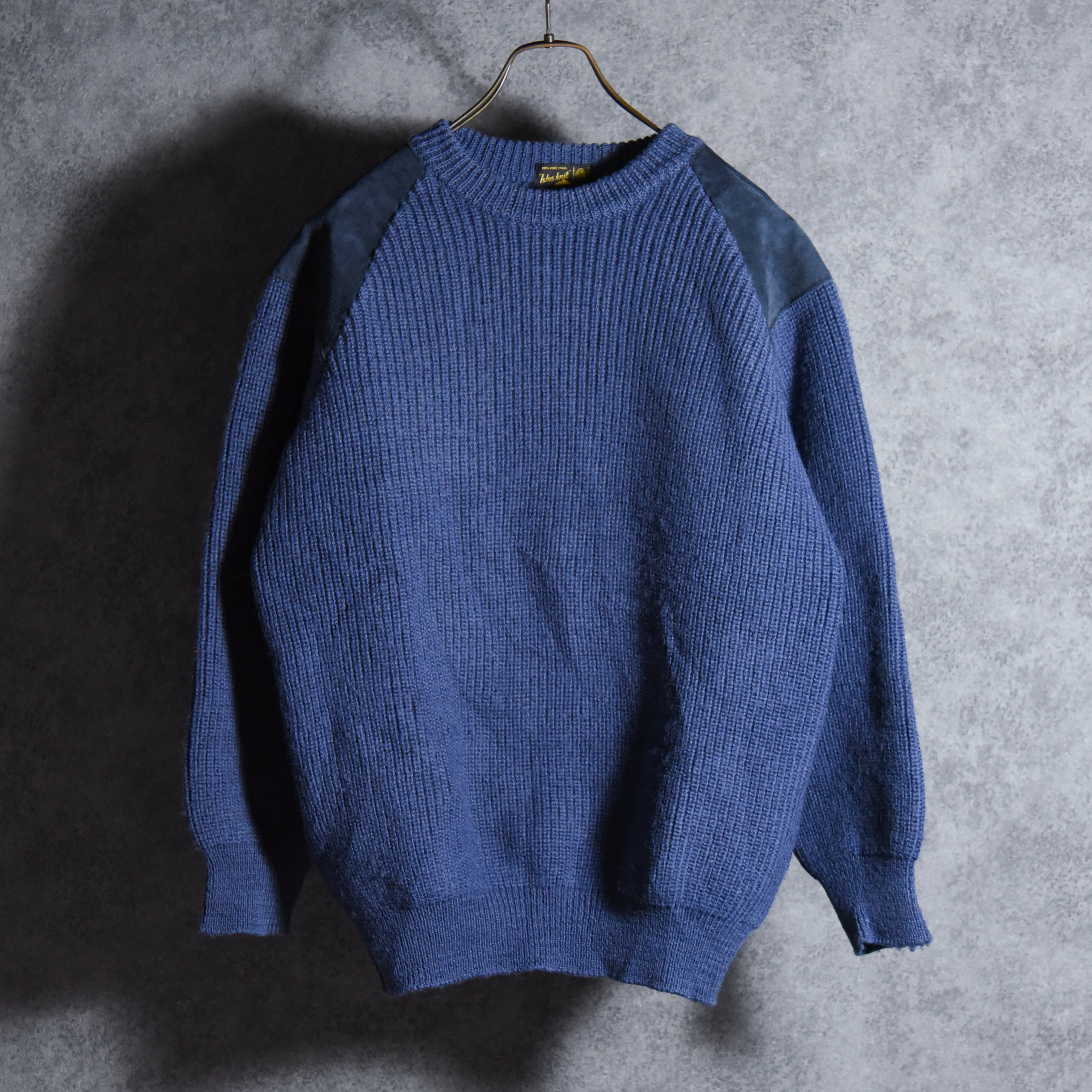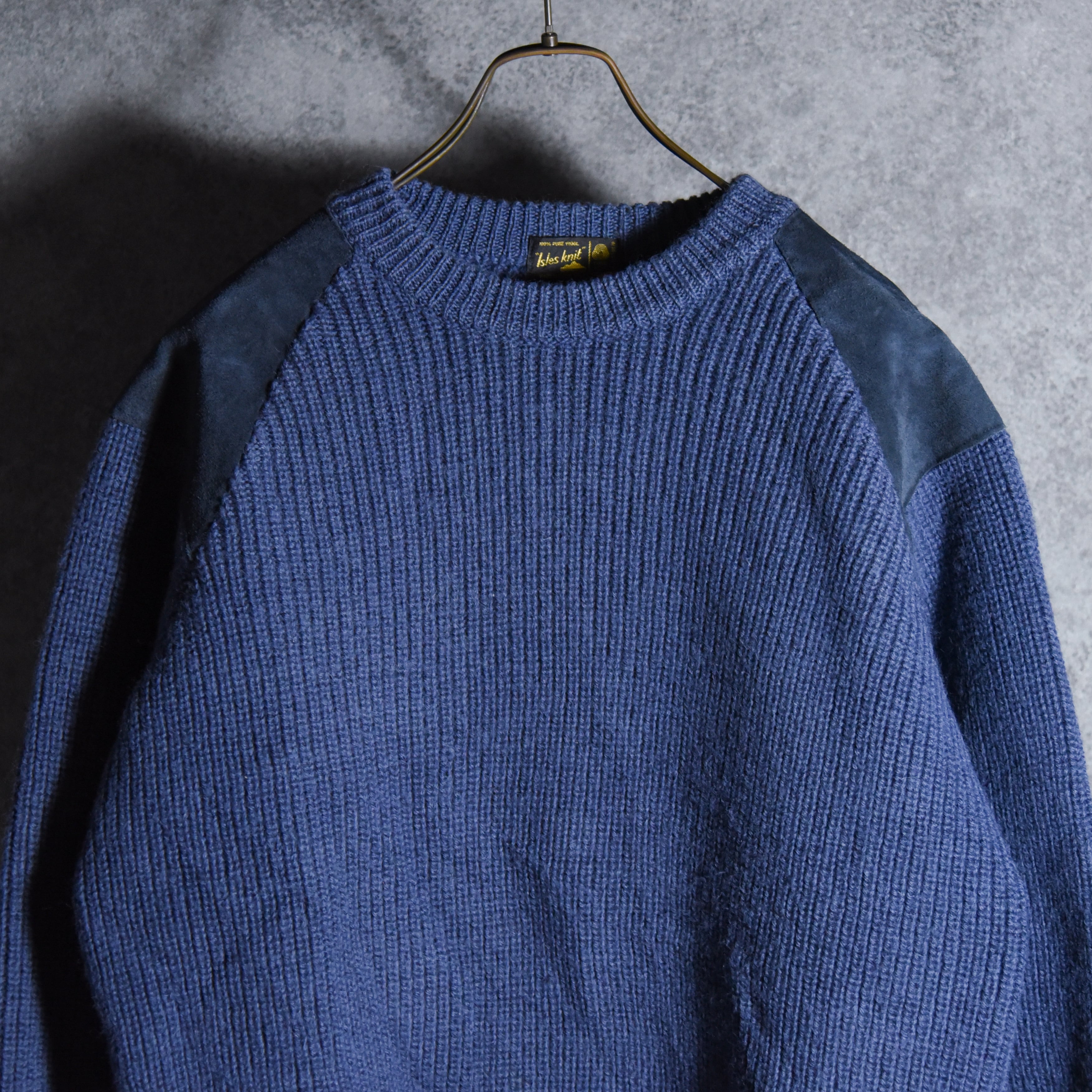 70-80s Isles Knit Crew Neck Commando Sweater Suede Pure Lambswool Made in Scotland アイルズニット クルーネック コマンドセーター スエードコンビ スコットランド製