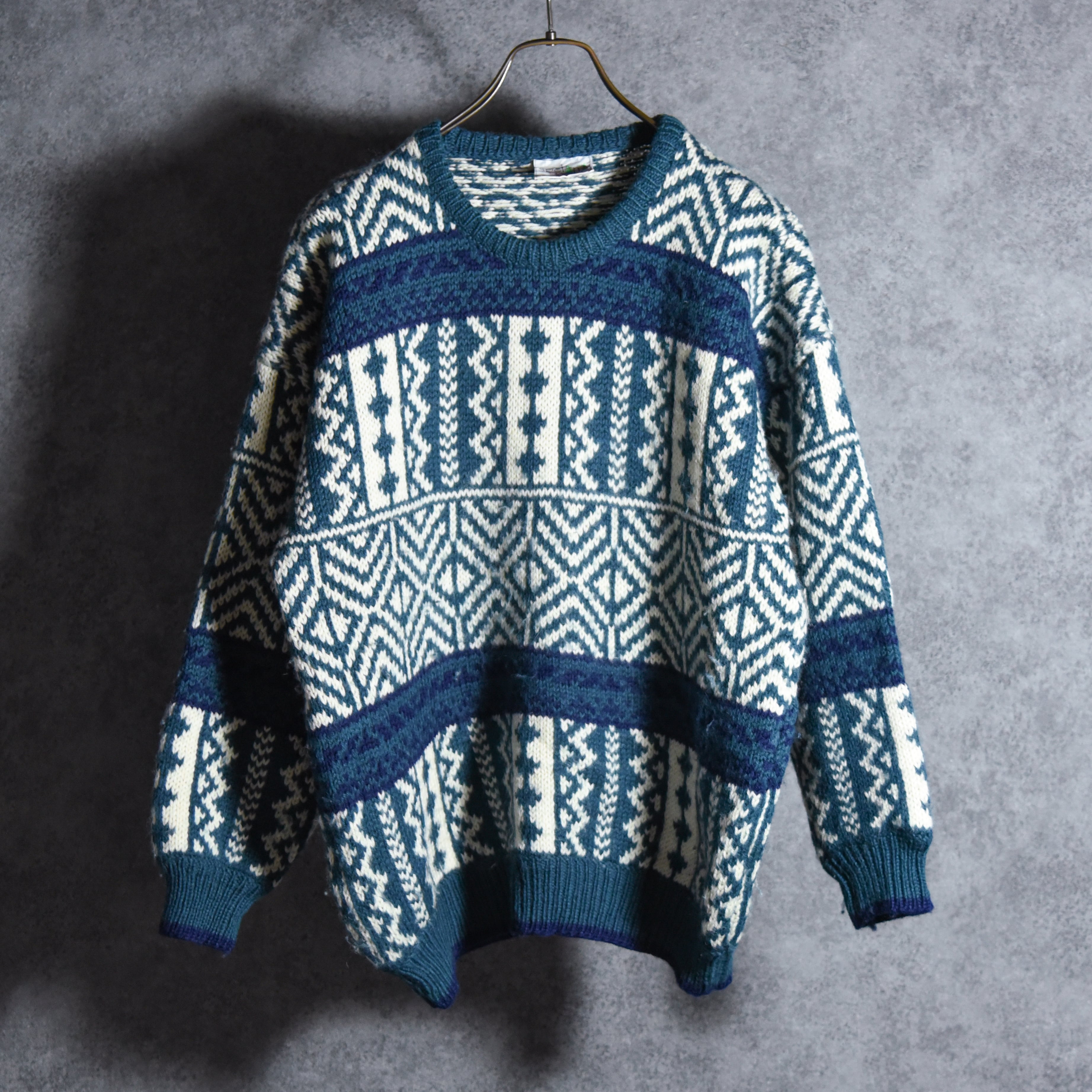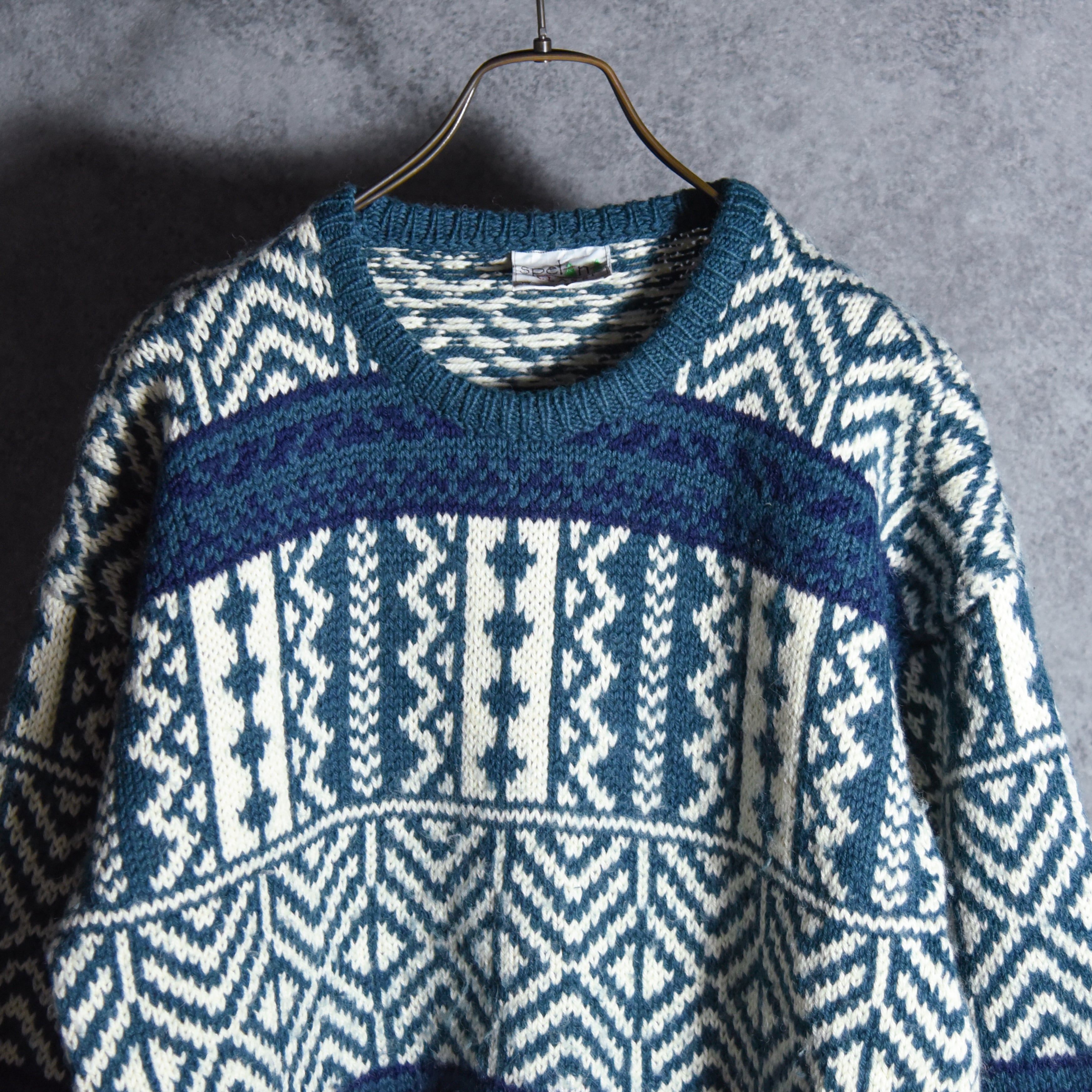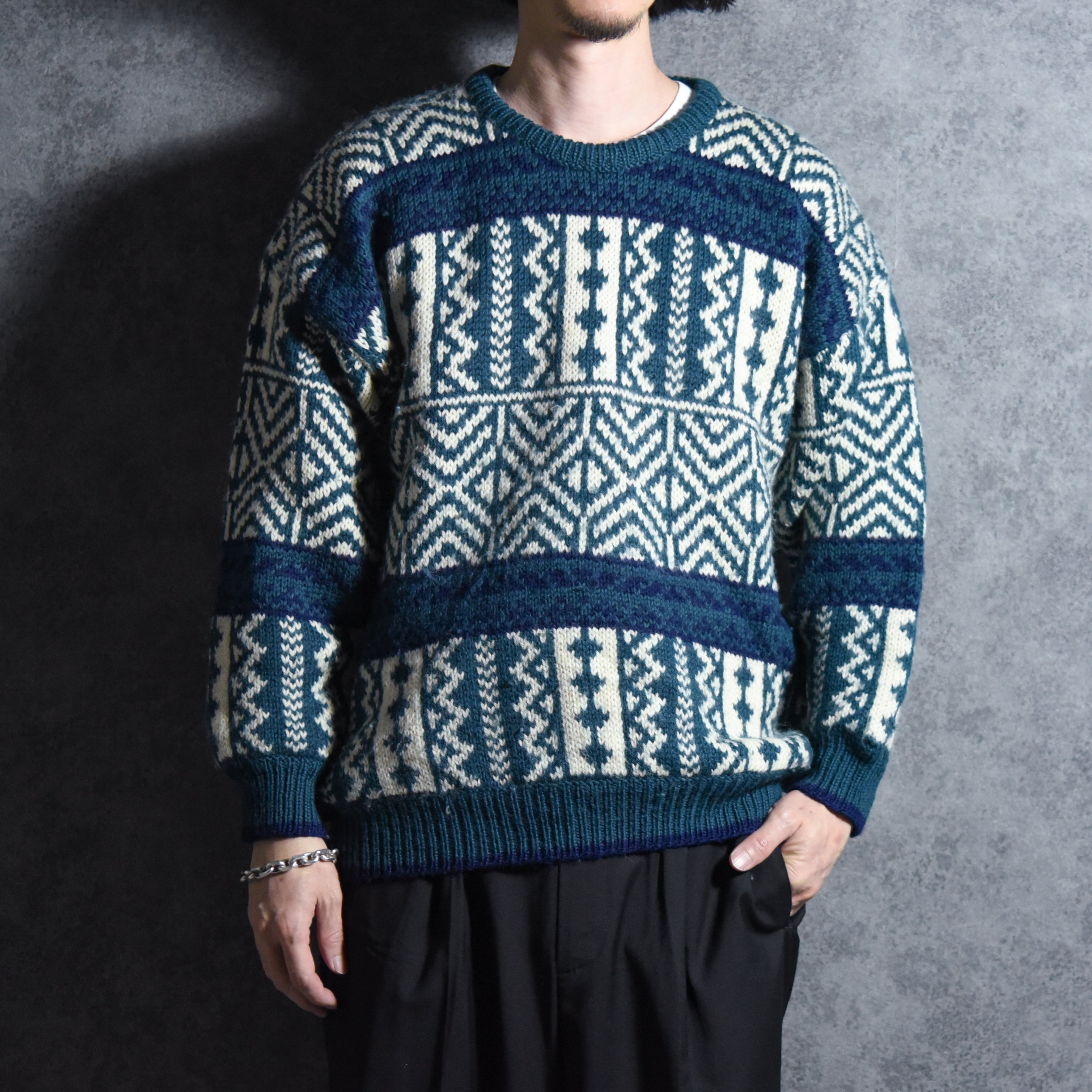 90s Fair Isle Crew Neck Knit Sweater Made in Ireland フェアアイル クルーネック ニット セーター アイルランド製
