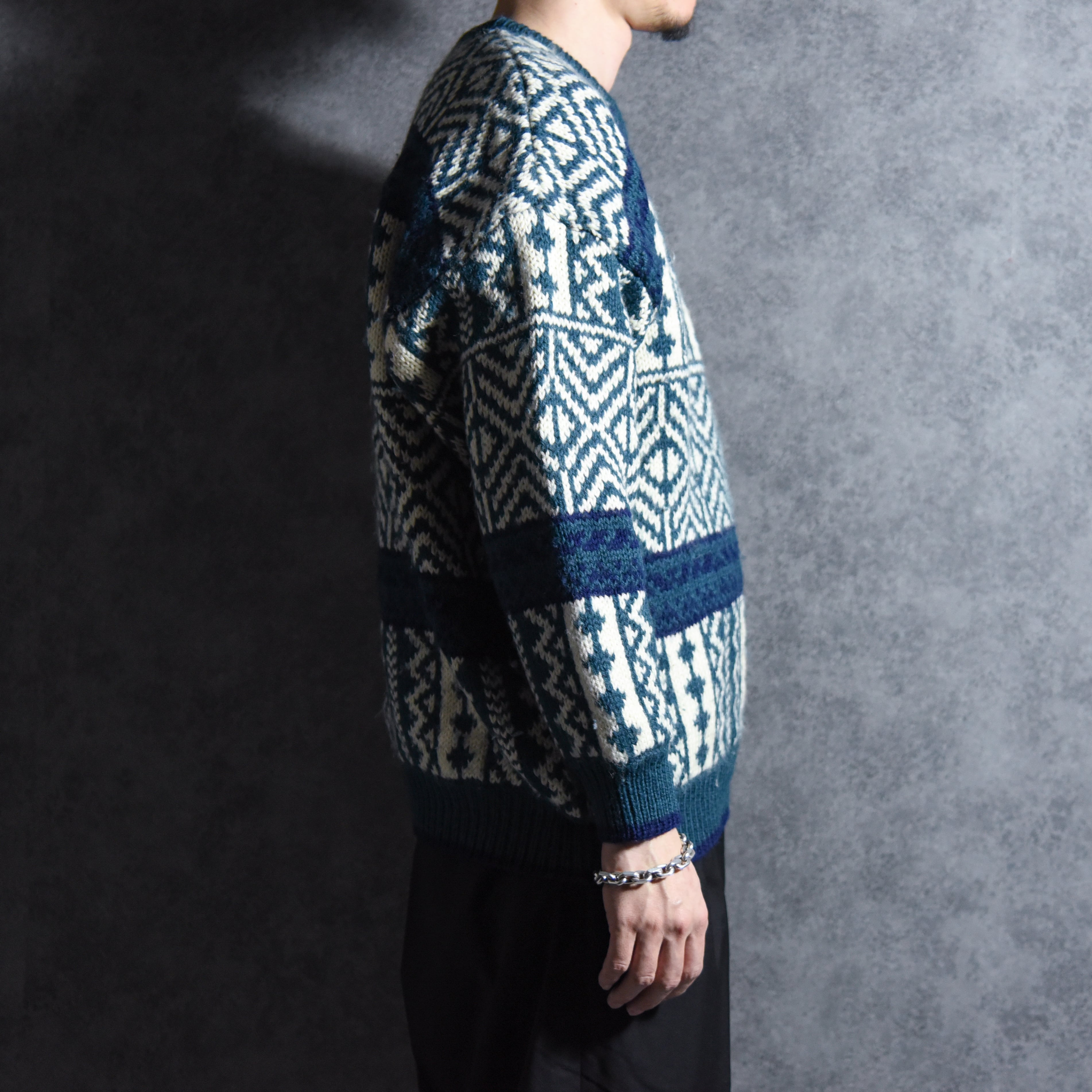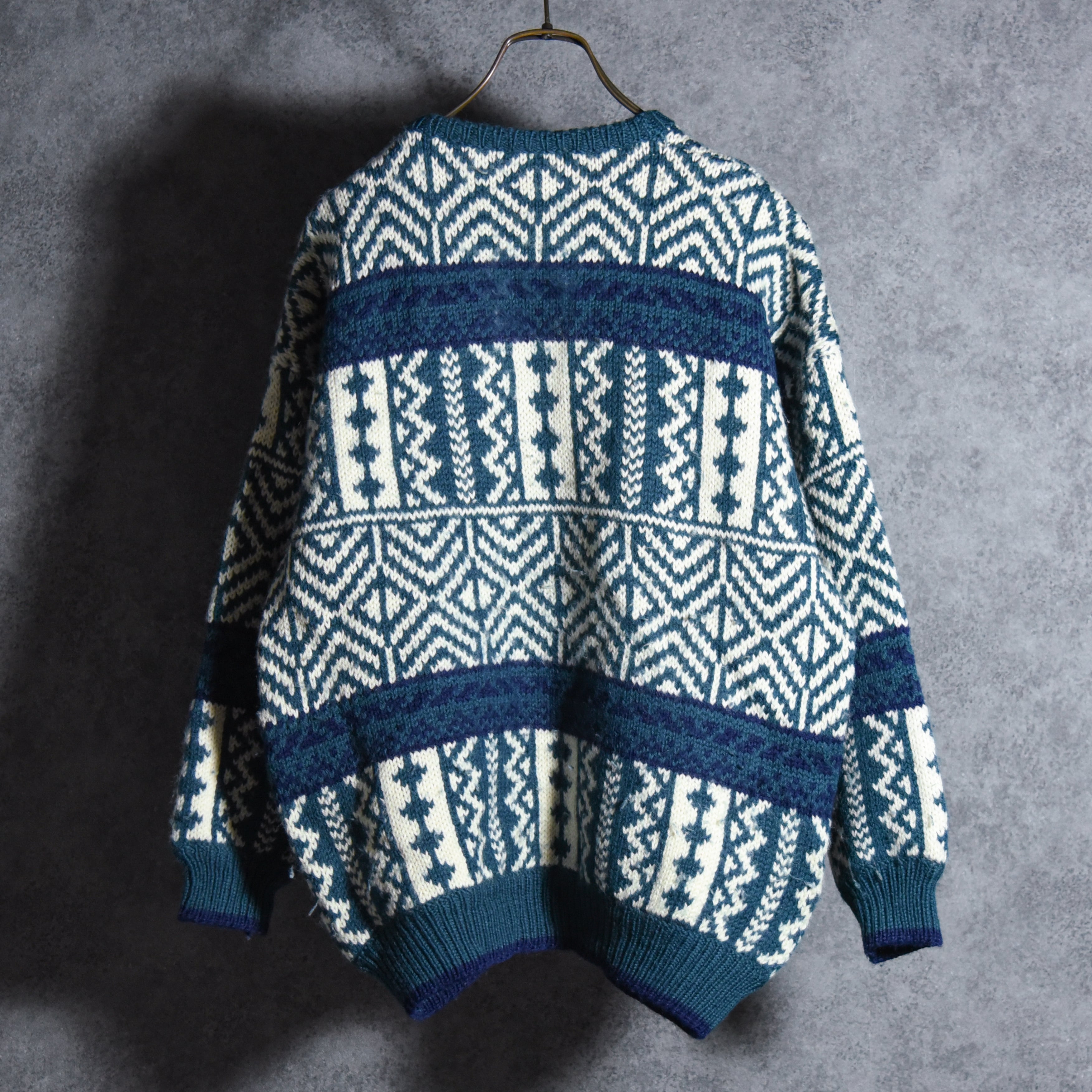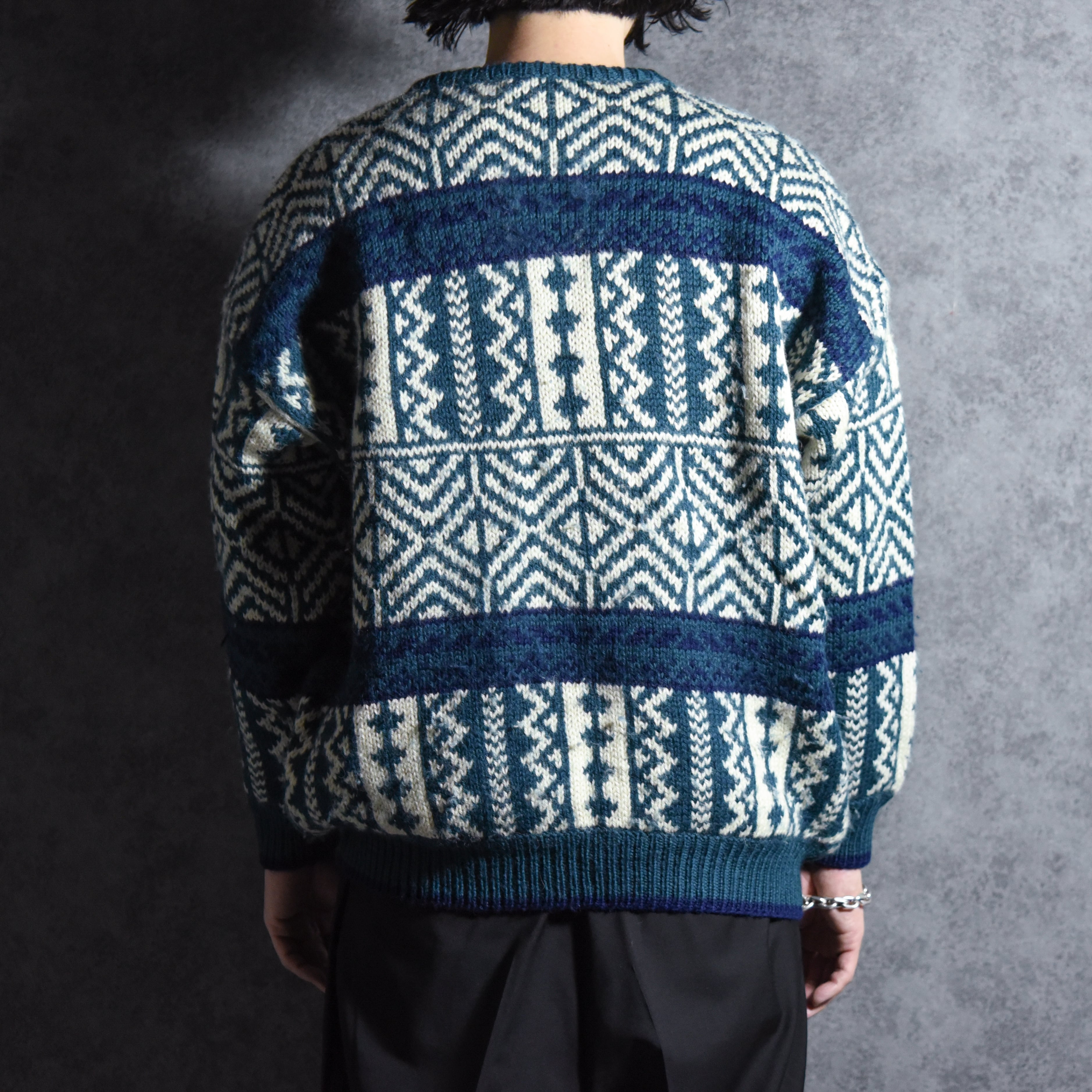 90s Fair Isle Crew Neck Knit Sweater Made in Ireland フェアアイル クルーネック ニット セーター アイルランド製