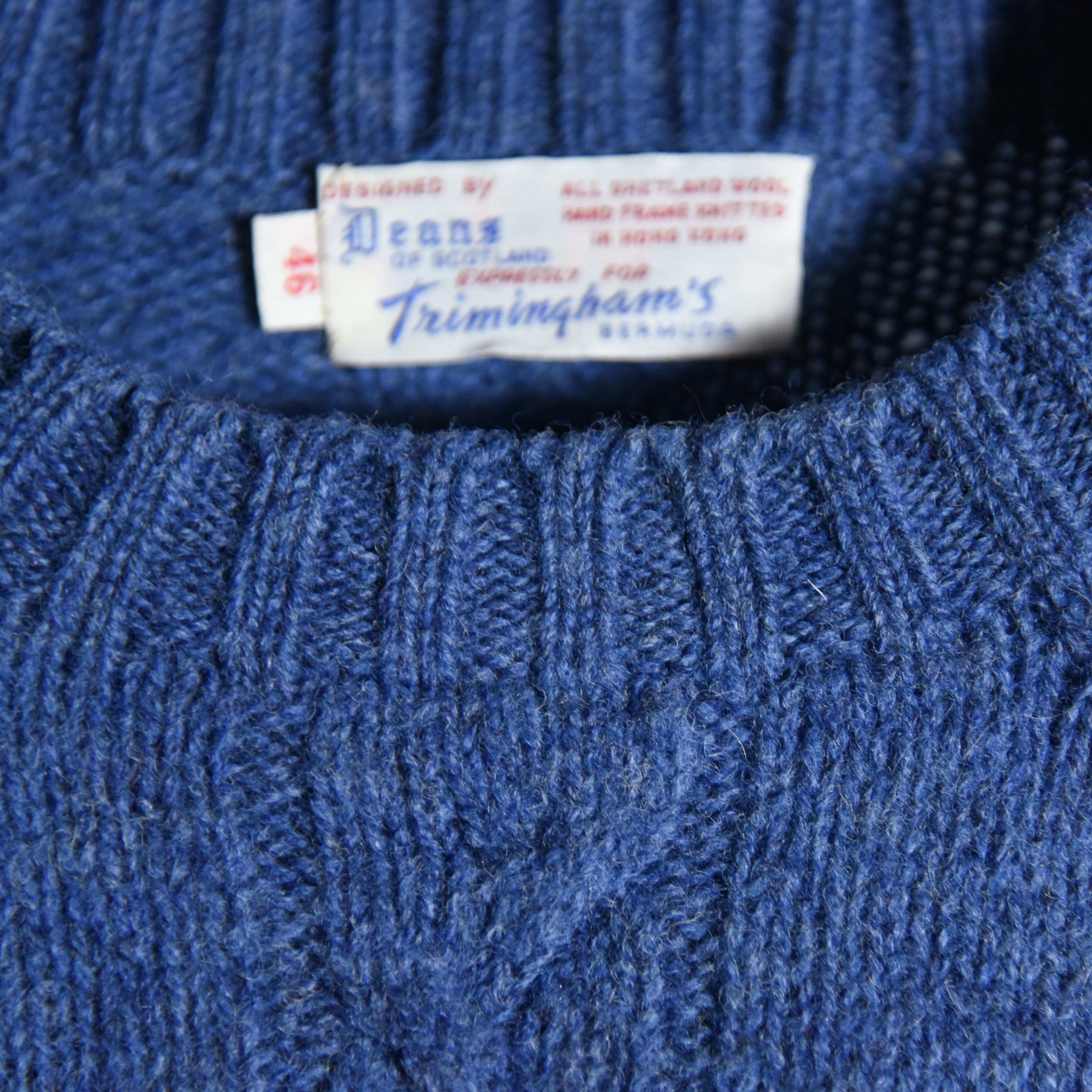 Deans of Scotlandはスコットランドの名門ニットブランドで、Trimingham's Bermuda(トリミナムズ・バミューダ)は1842年創業のバミューダ諸島で最も有名で歴史ある百貨店で2000年代初頭に閉店してしまいますが、その黄金期に当たる1960-70年代にDeans of Scotlandにオーダーした別注品です。