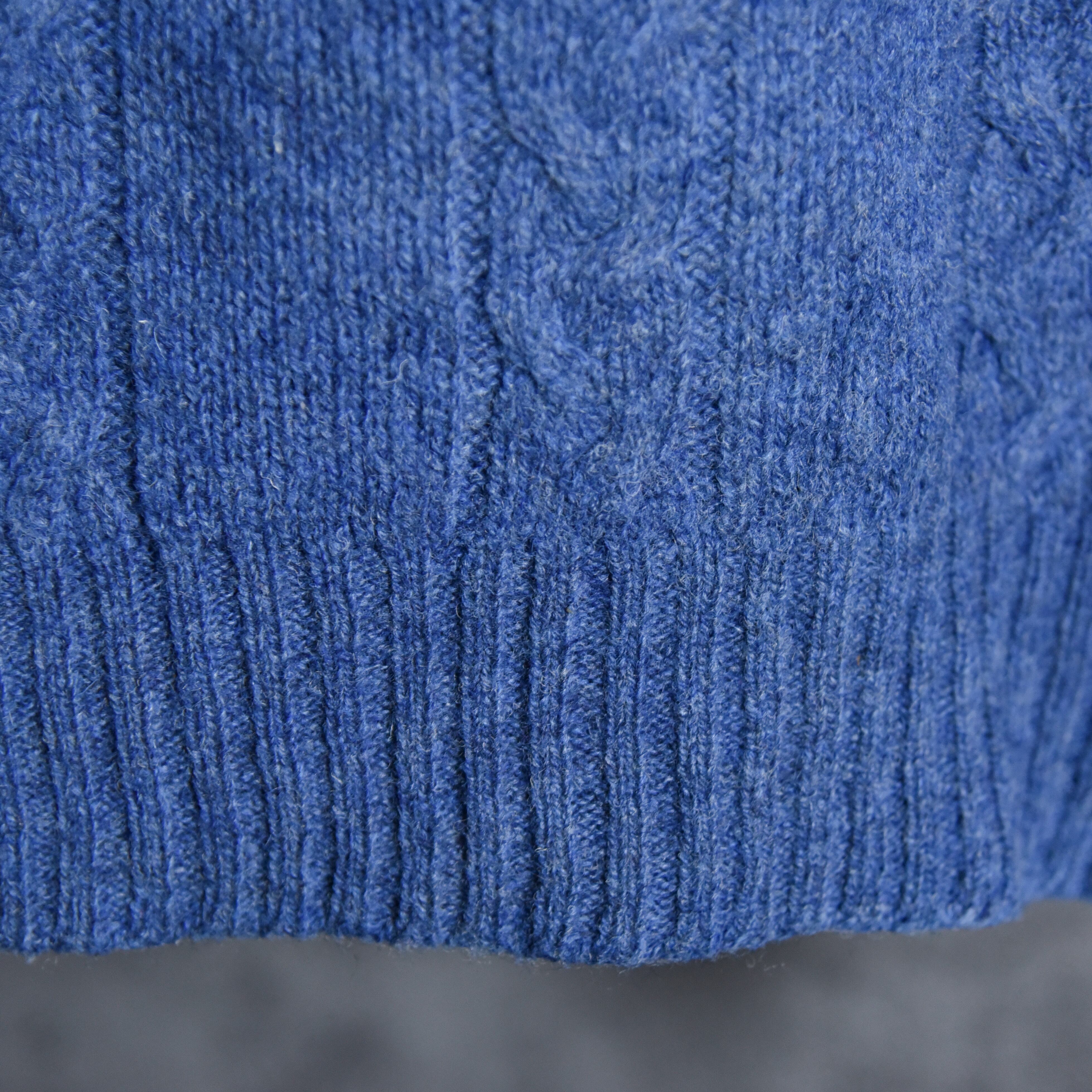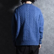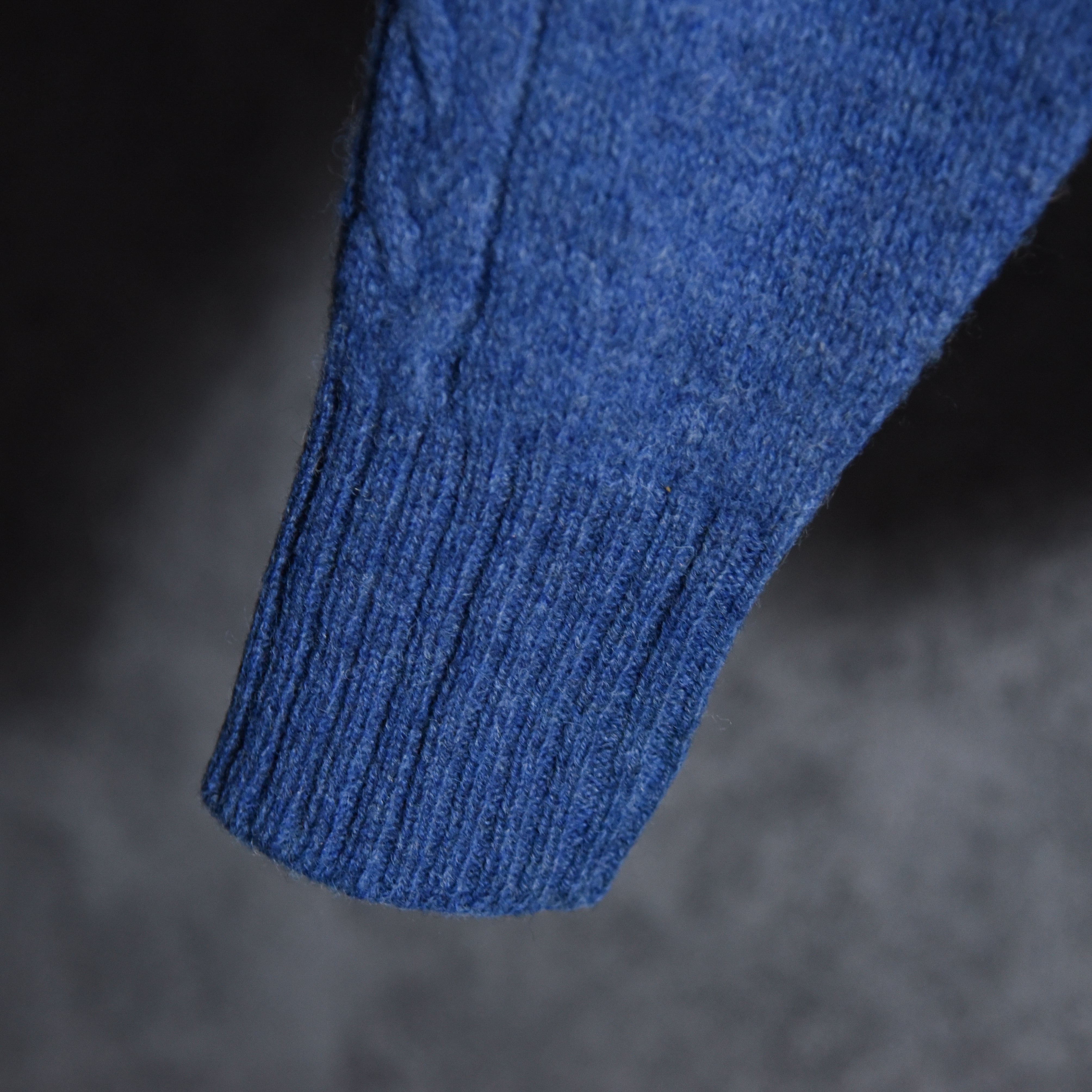 ウール100%の温かみのある素材感、シェットランドセーターらしい8G程度のミドルゲージで王道の雰囲気ながらケーブル網のディテールがアクセントとして採用されている意外とシャギードック系のニットには珍しいデザイン。