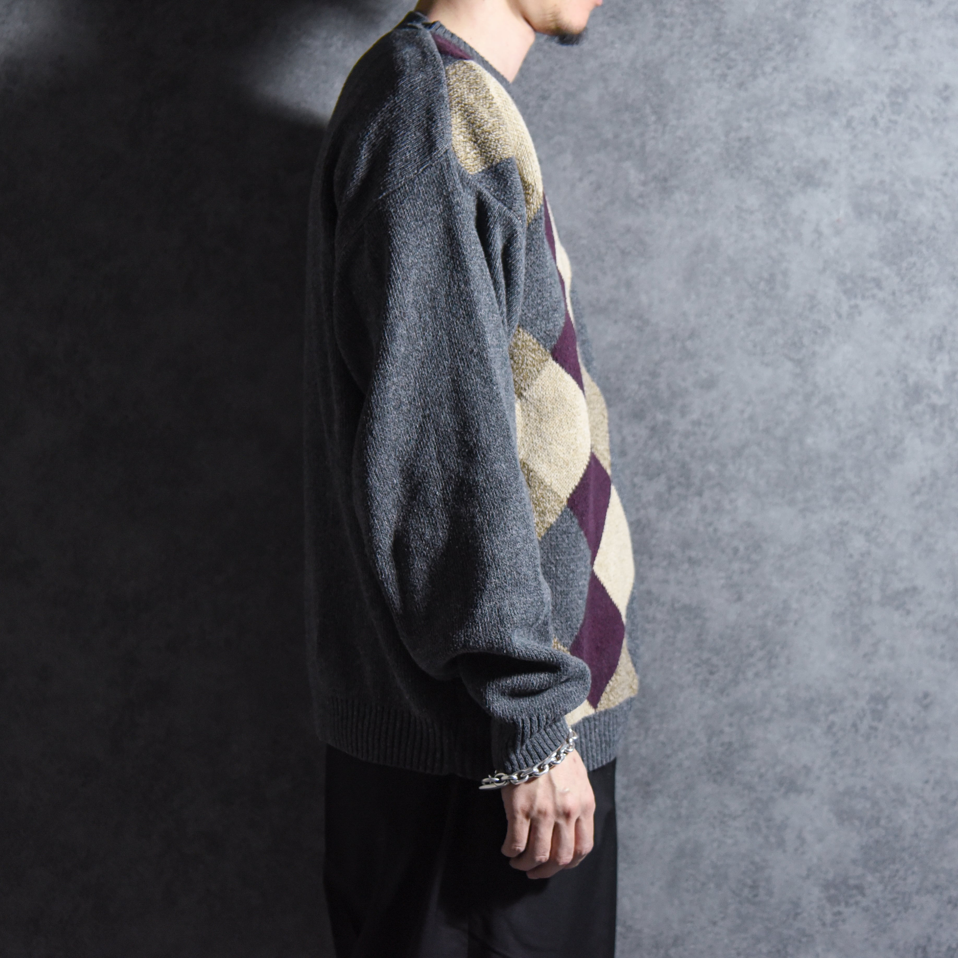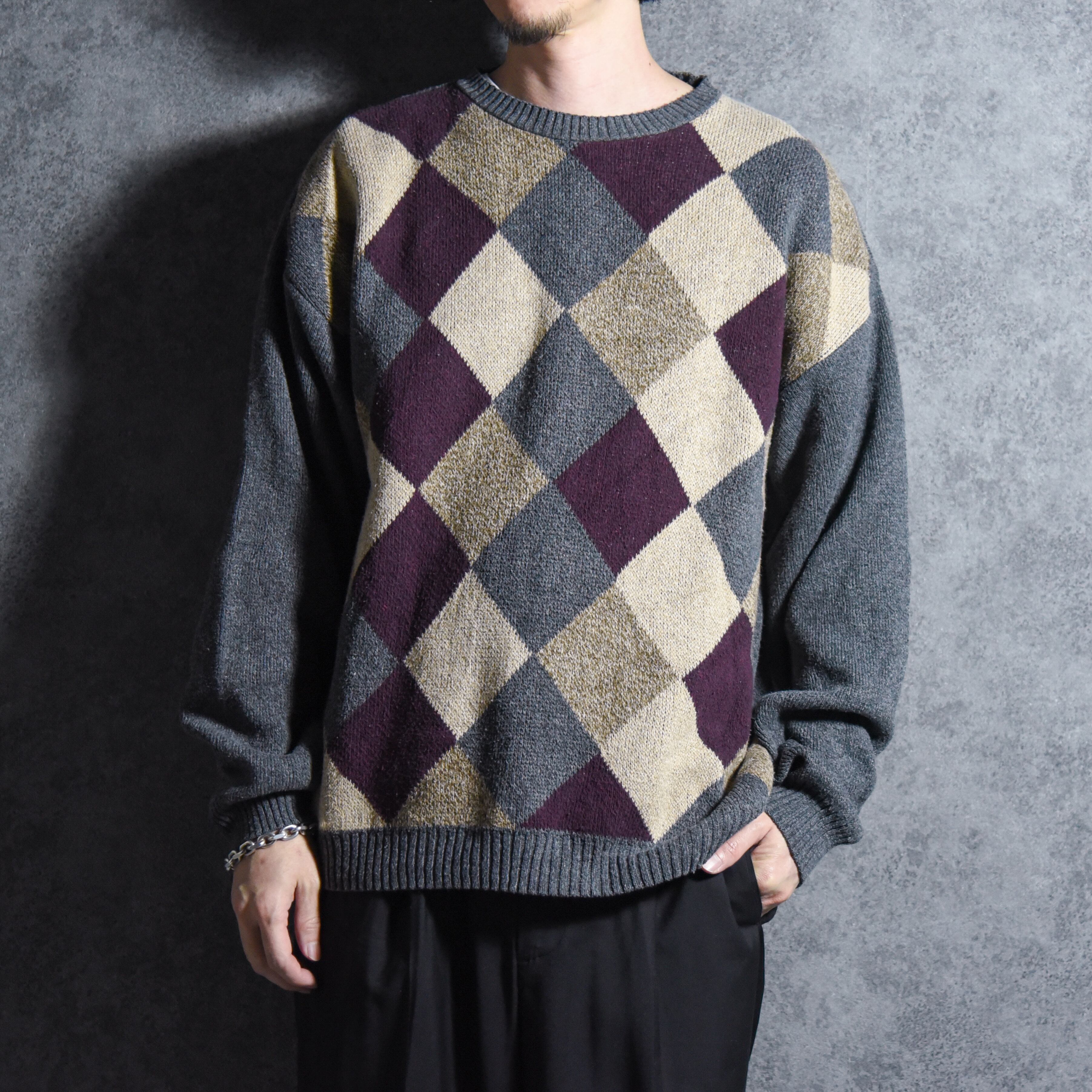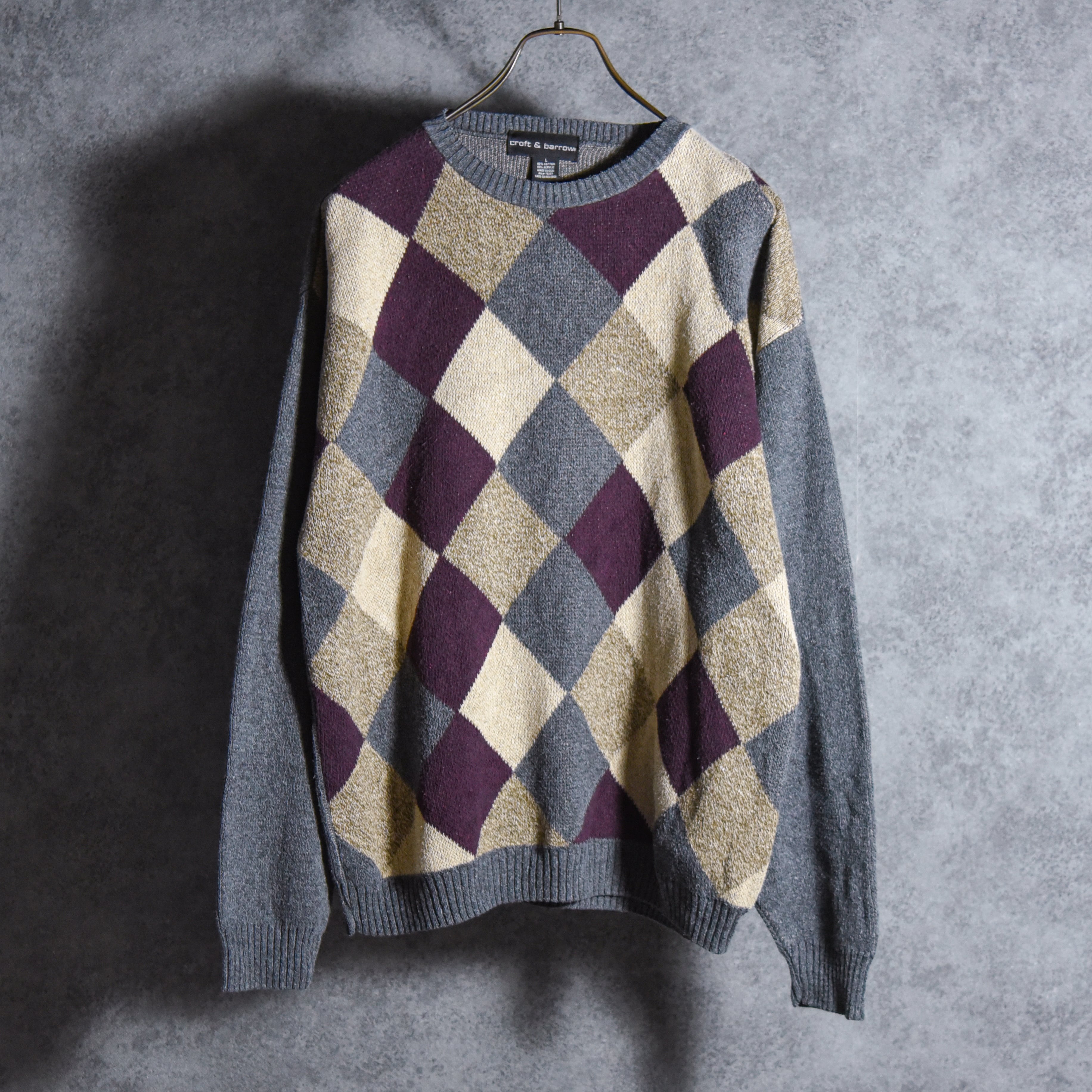 90s Croft & Barrow Diamond Pattern Crew Neck Sweater Knit Made in USA クロフトアンドバロー クルーネック セーター クルーネック ダイヤ柄 アメリカ製