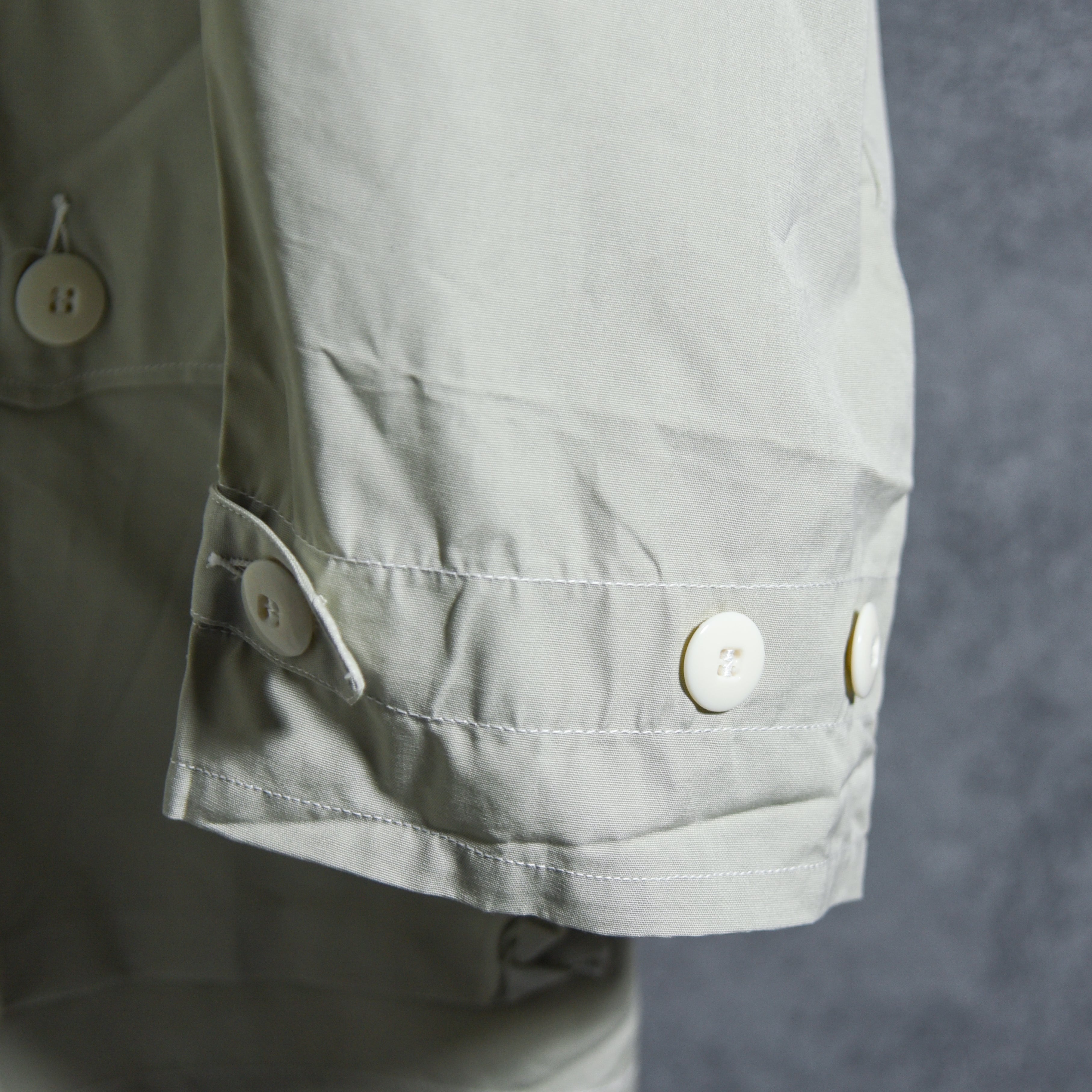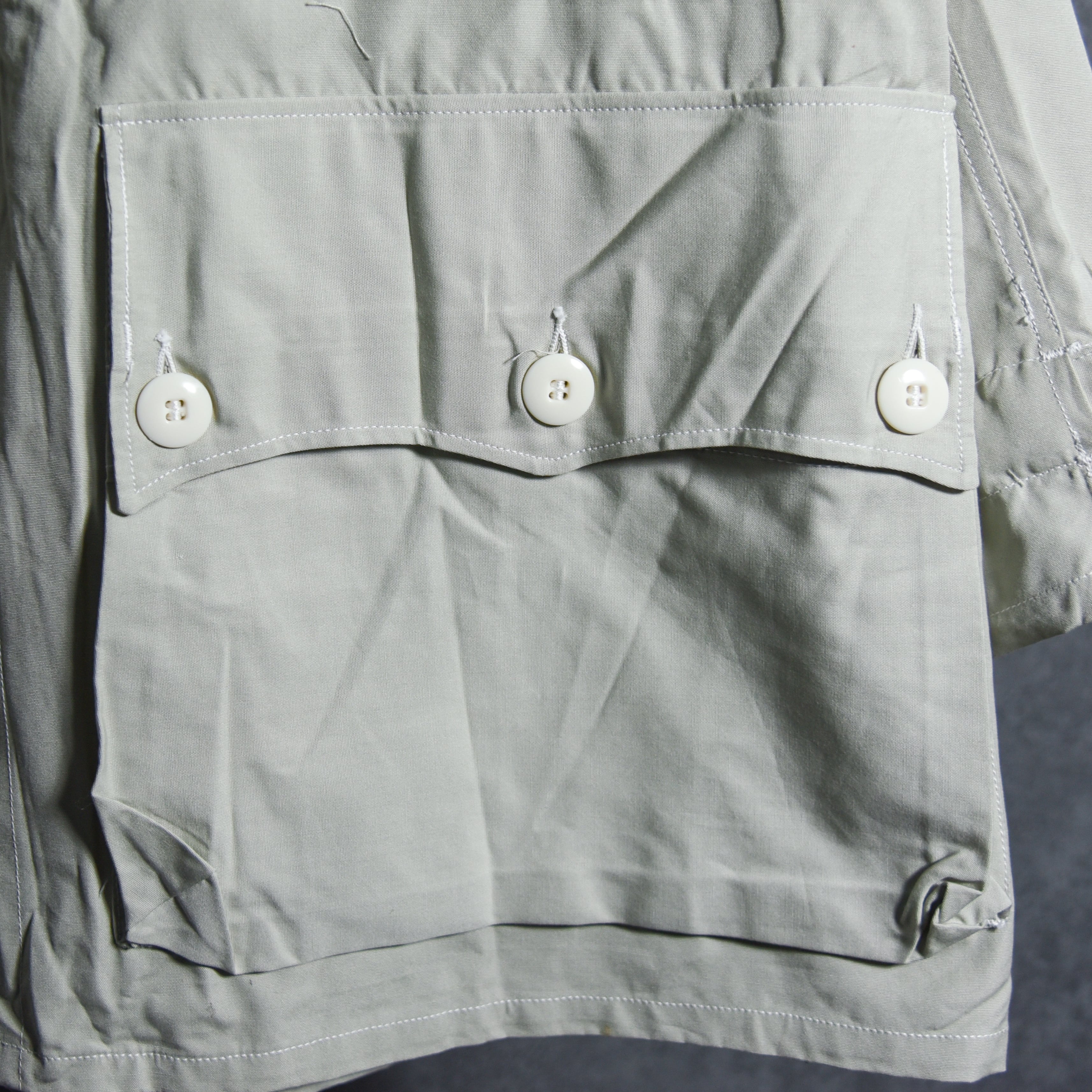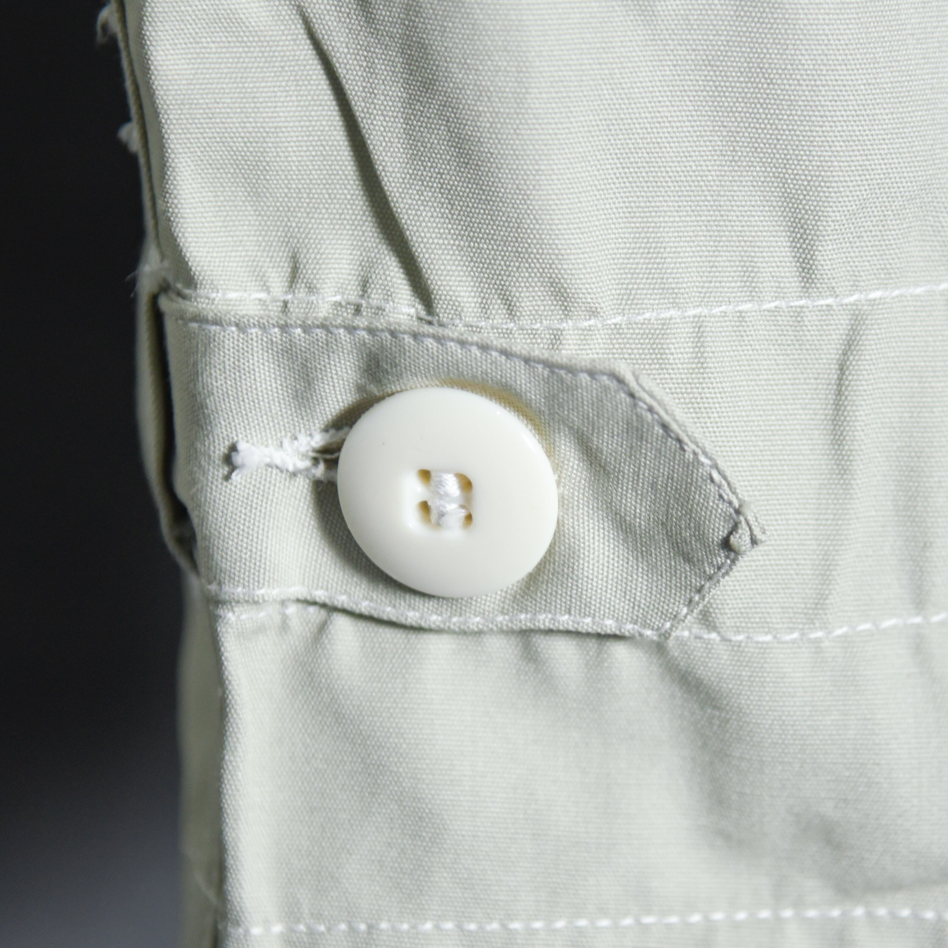 60年代に採用されていたフロントフルオープンのモデルで、風雨の侵入を防ぐためフロントの合わせが二重になっており、さらにボタン数も多く、機能、デザインの両面で重要なディテールになっています。
