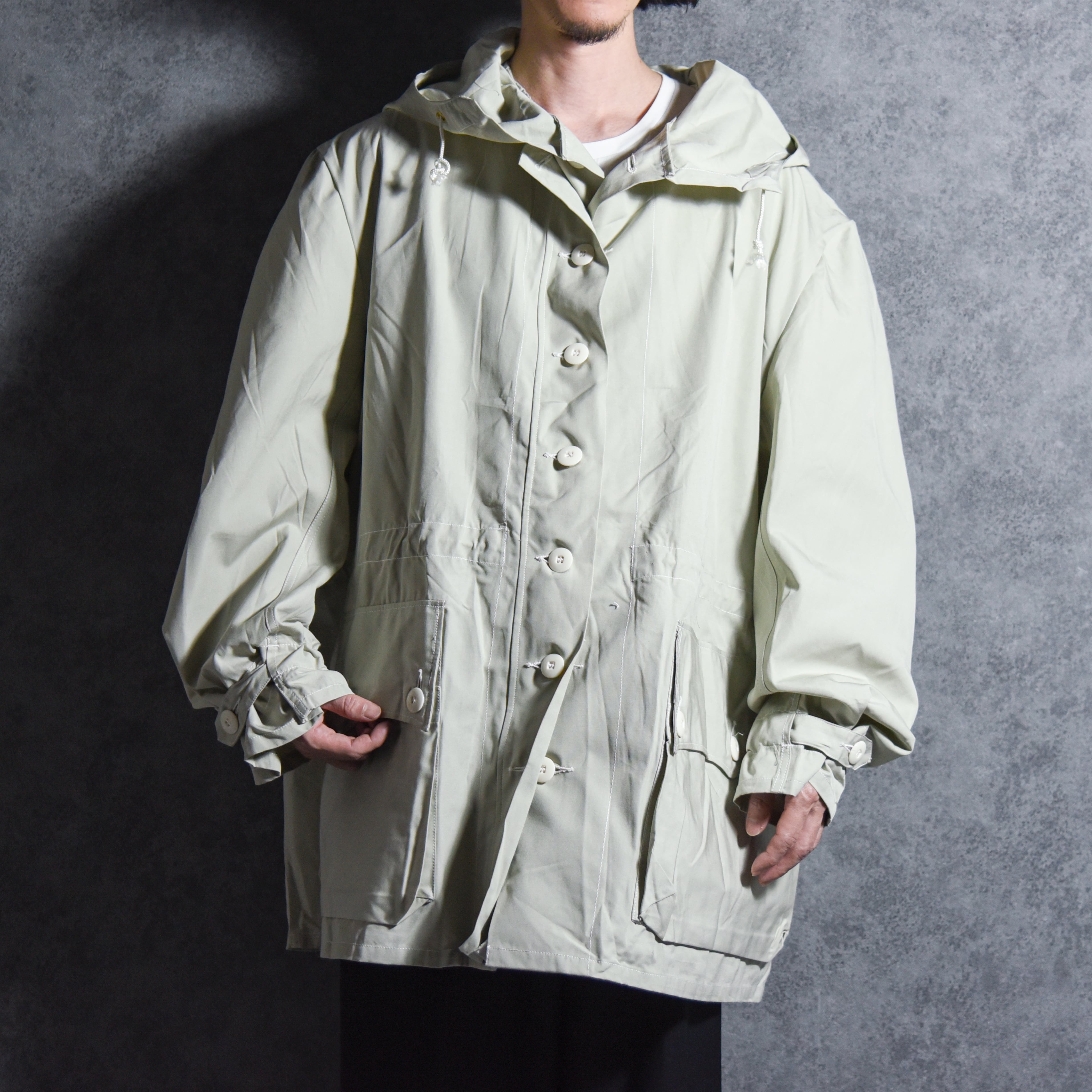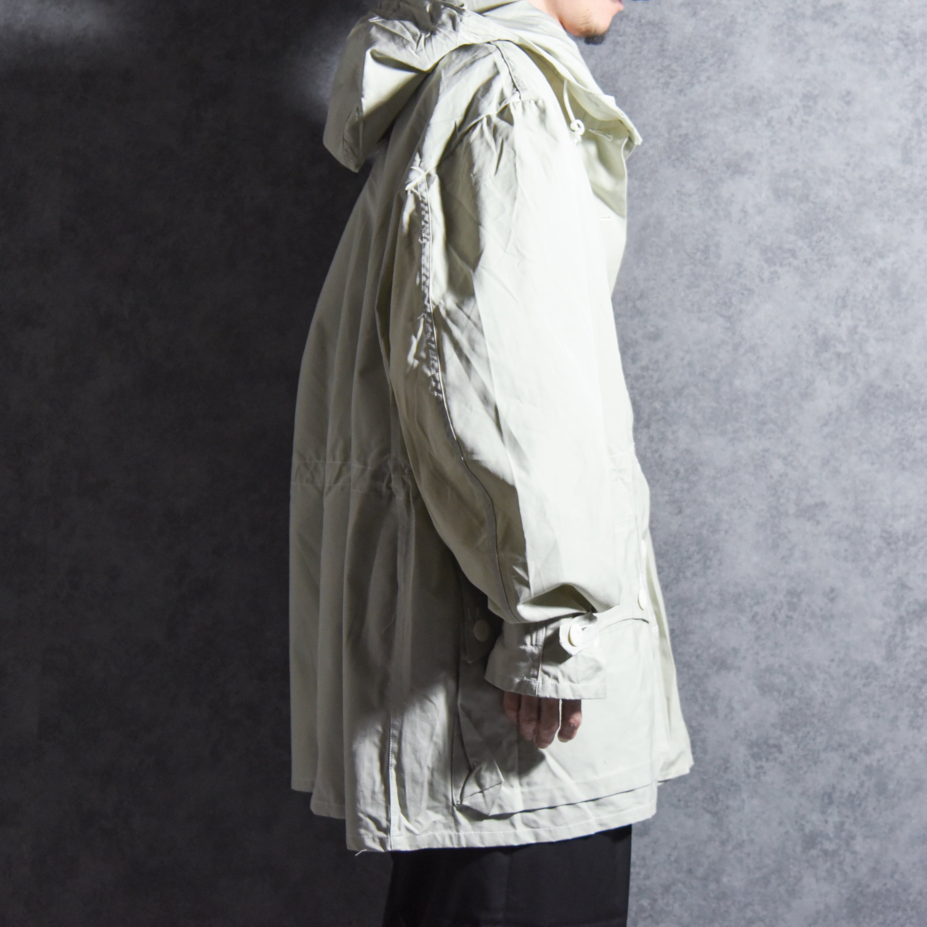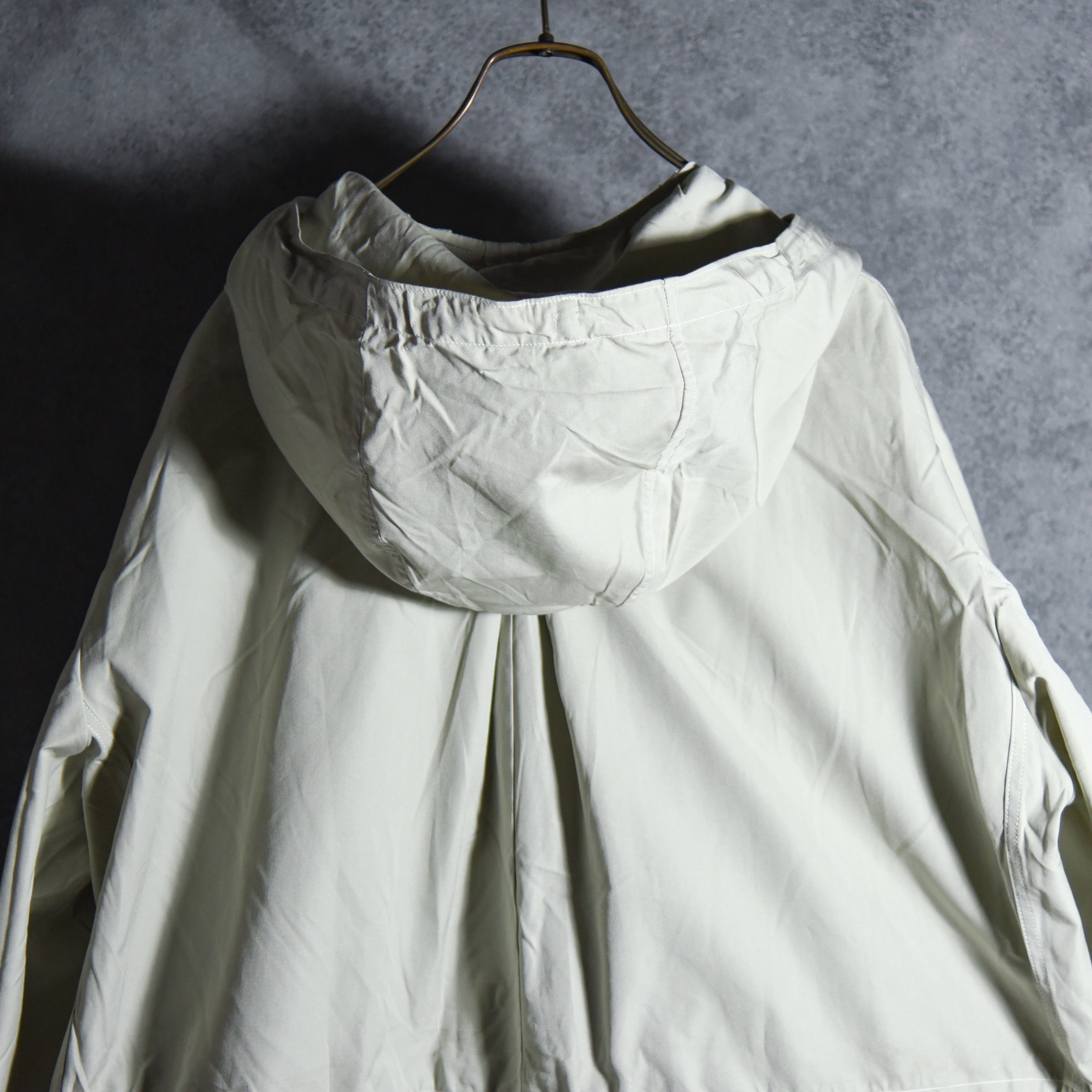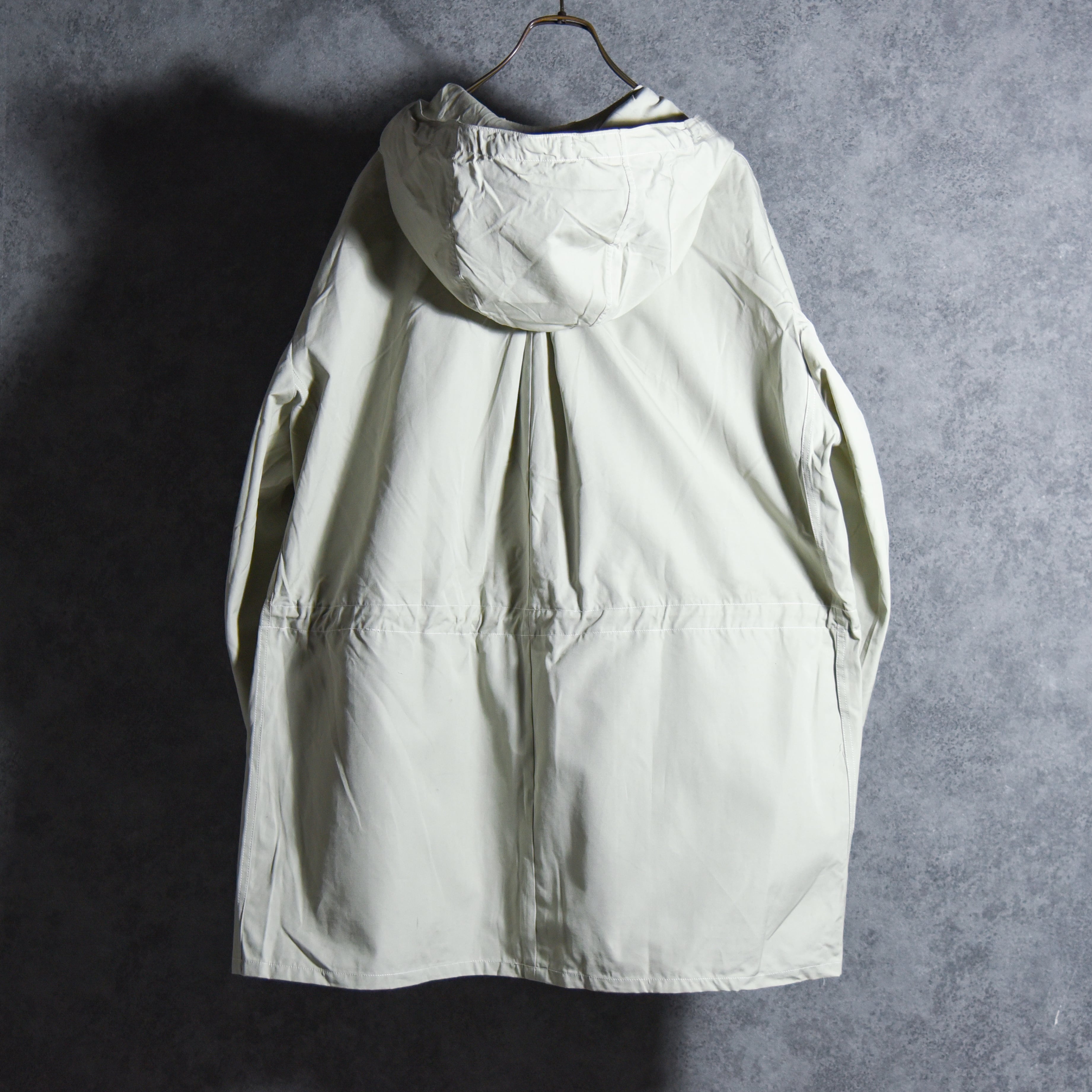 他にもウエストのドローコードや特徴的な形状の腰ポケット、顔をすっぽり覆うほどの大きさのフードなど、唯一無二のデザインを持つ名作です。