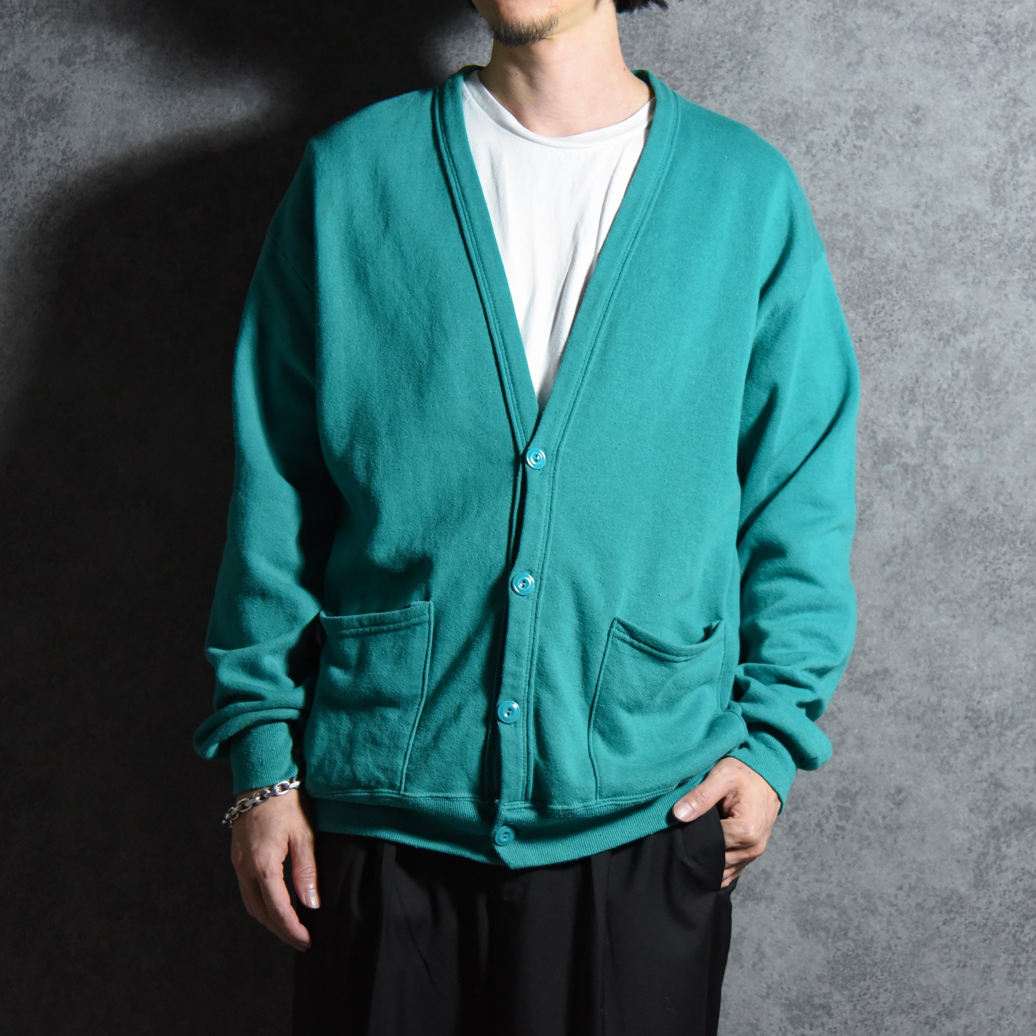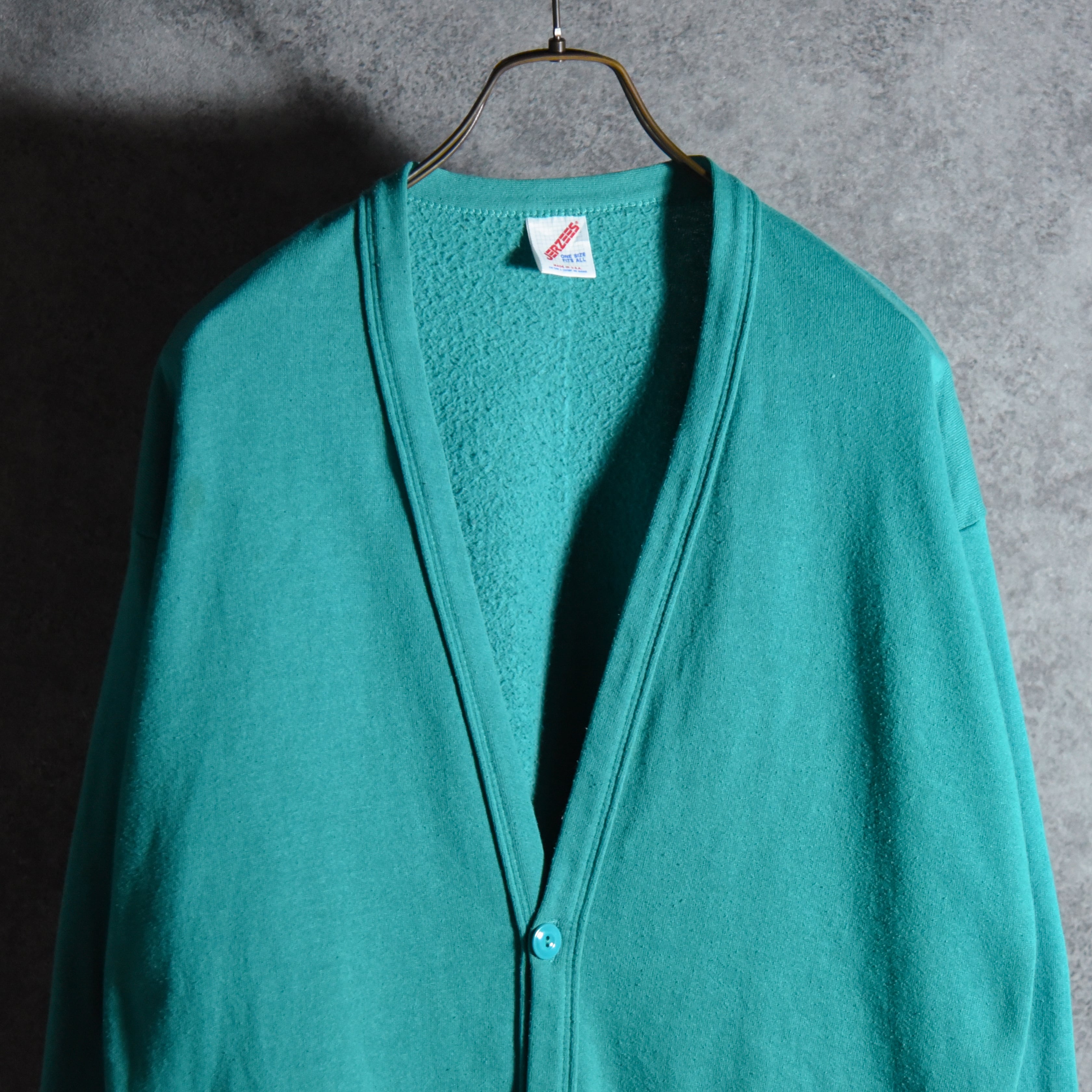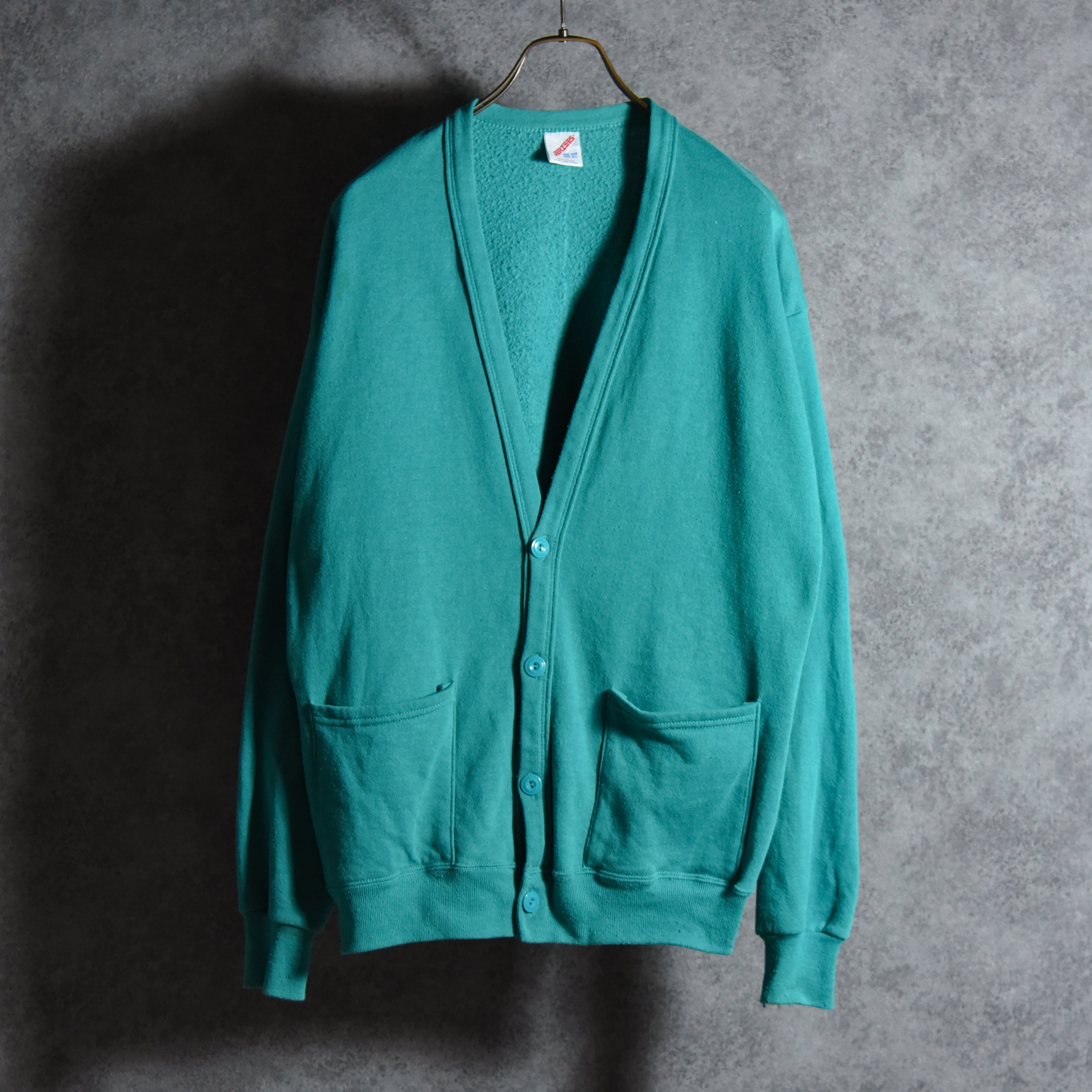 80-90s JERZZEES Sweat Cardigan Made in USA Emerald ジャージーズ スウェット 裏起毛 カーディガン アメリカ製 エメラルド