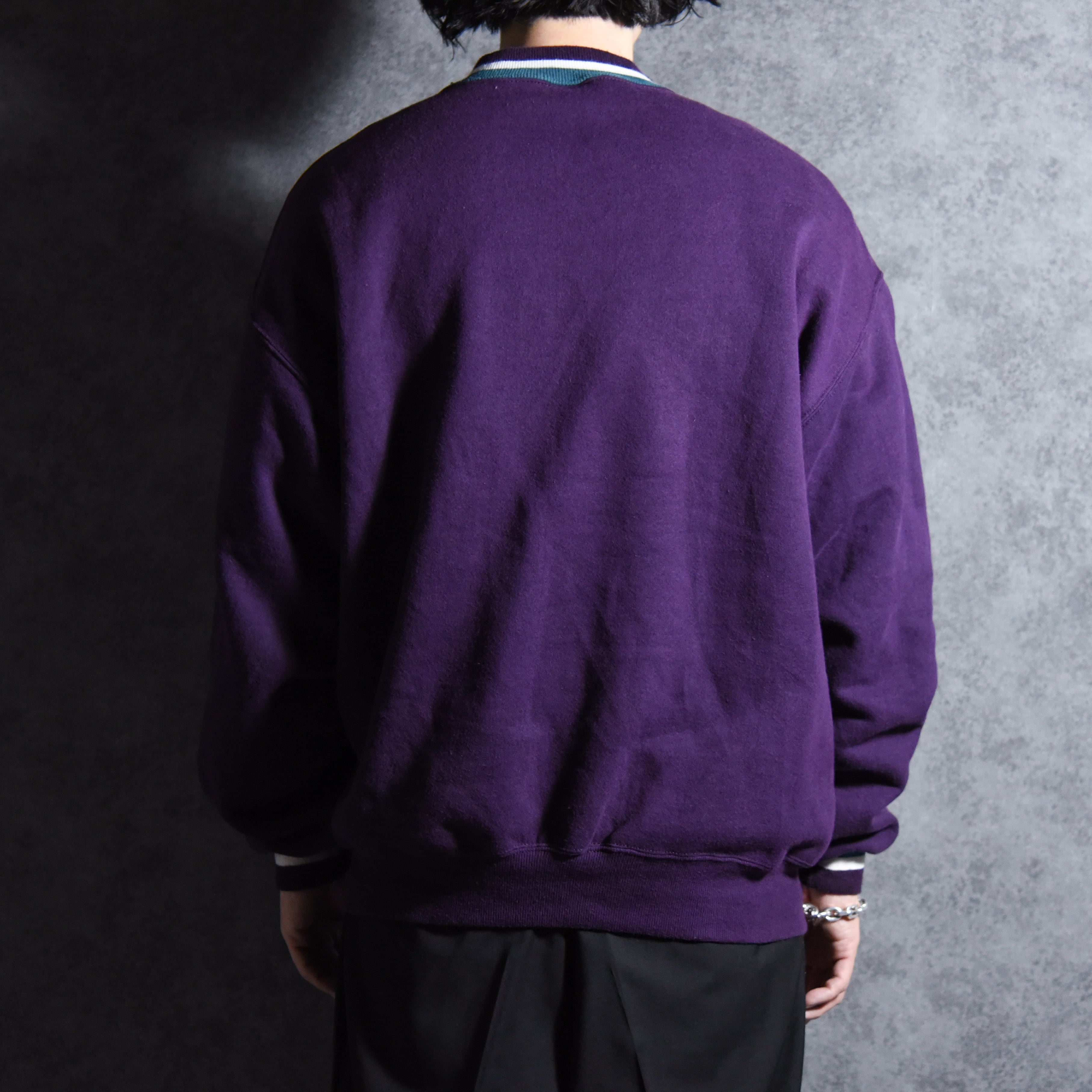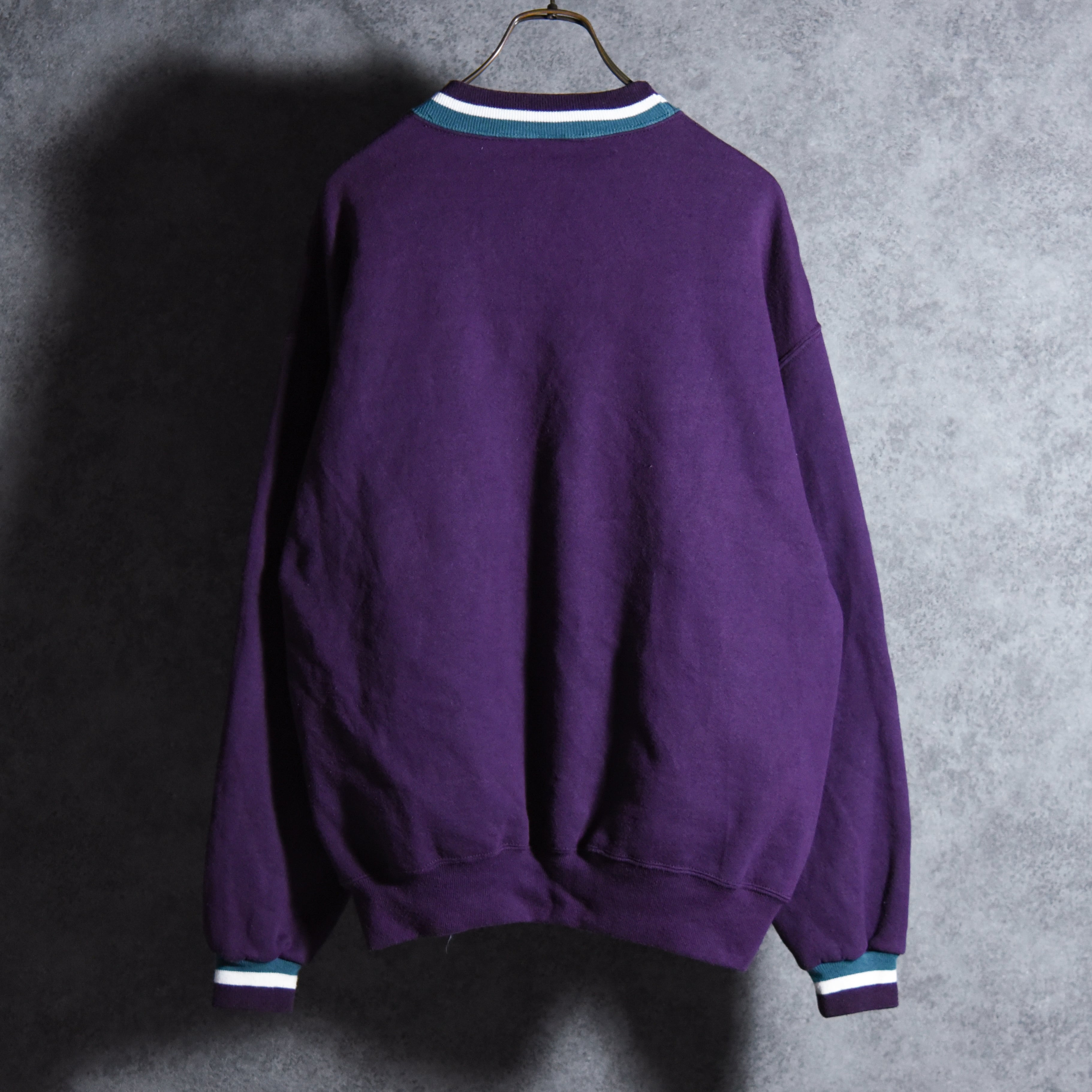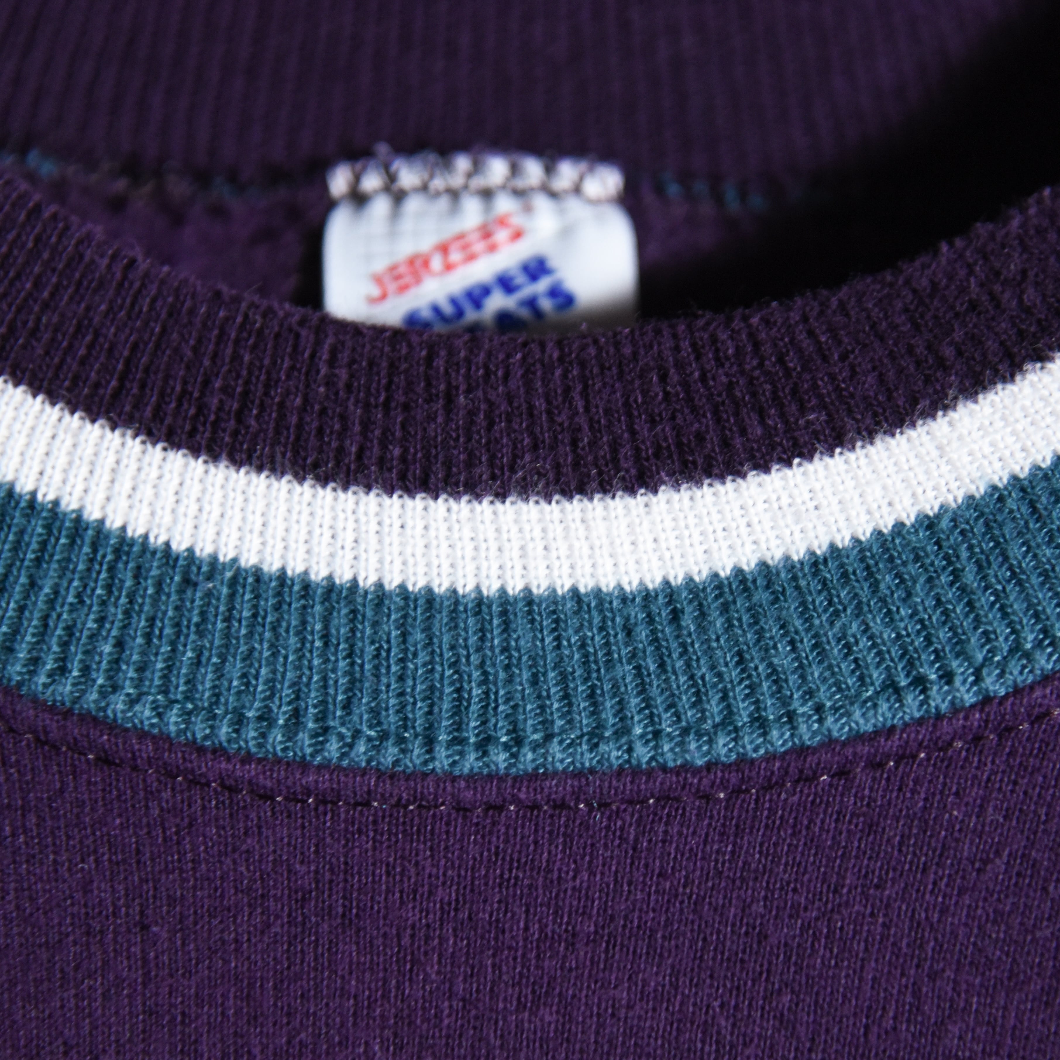 90s JERZZEES Line Rib Crew Neck Advertising Embroidery Sweat Made in USA ジャージーズ ライン リブ クルーネック エンブロダイリー スウェット アドバタイジング アメリカ製