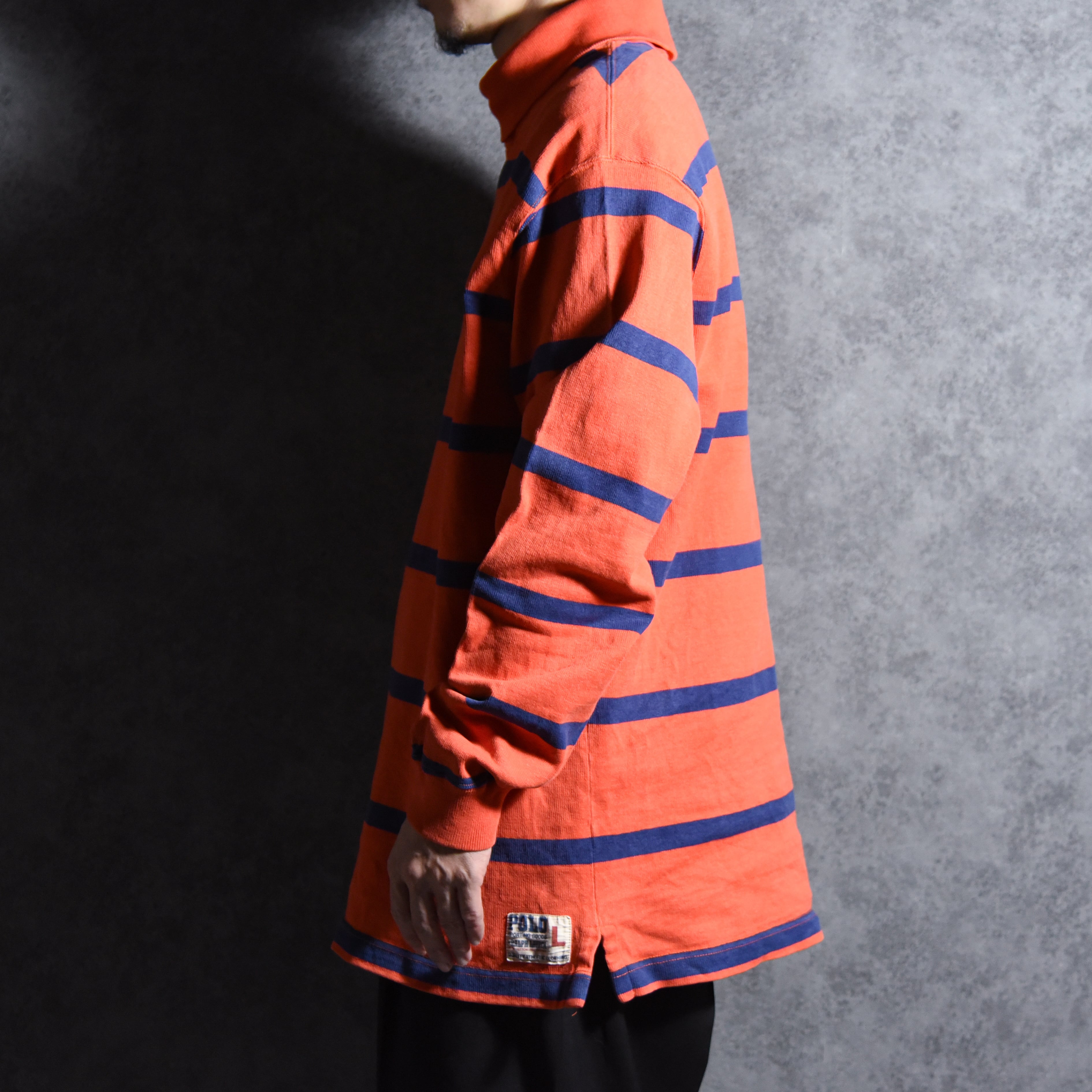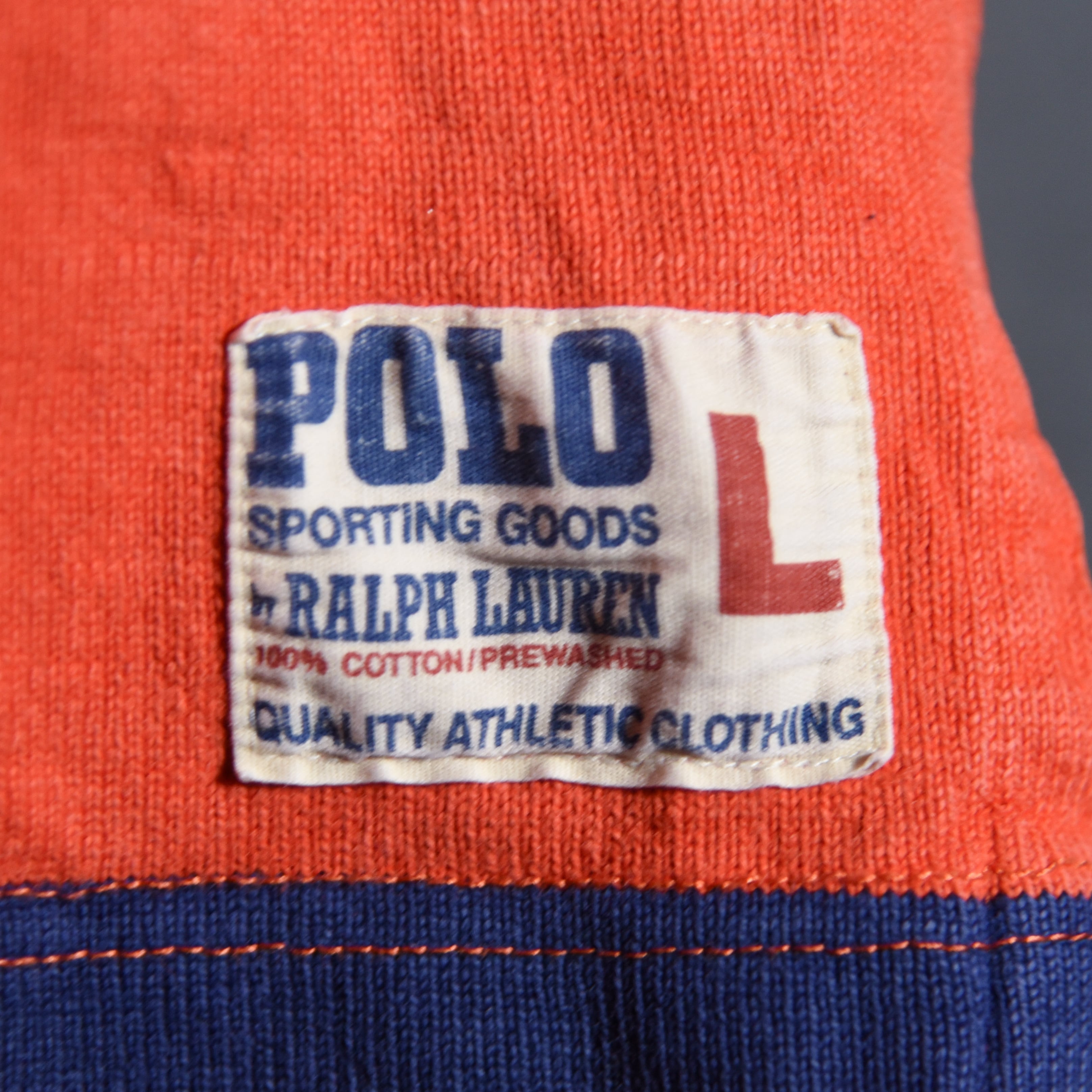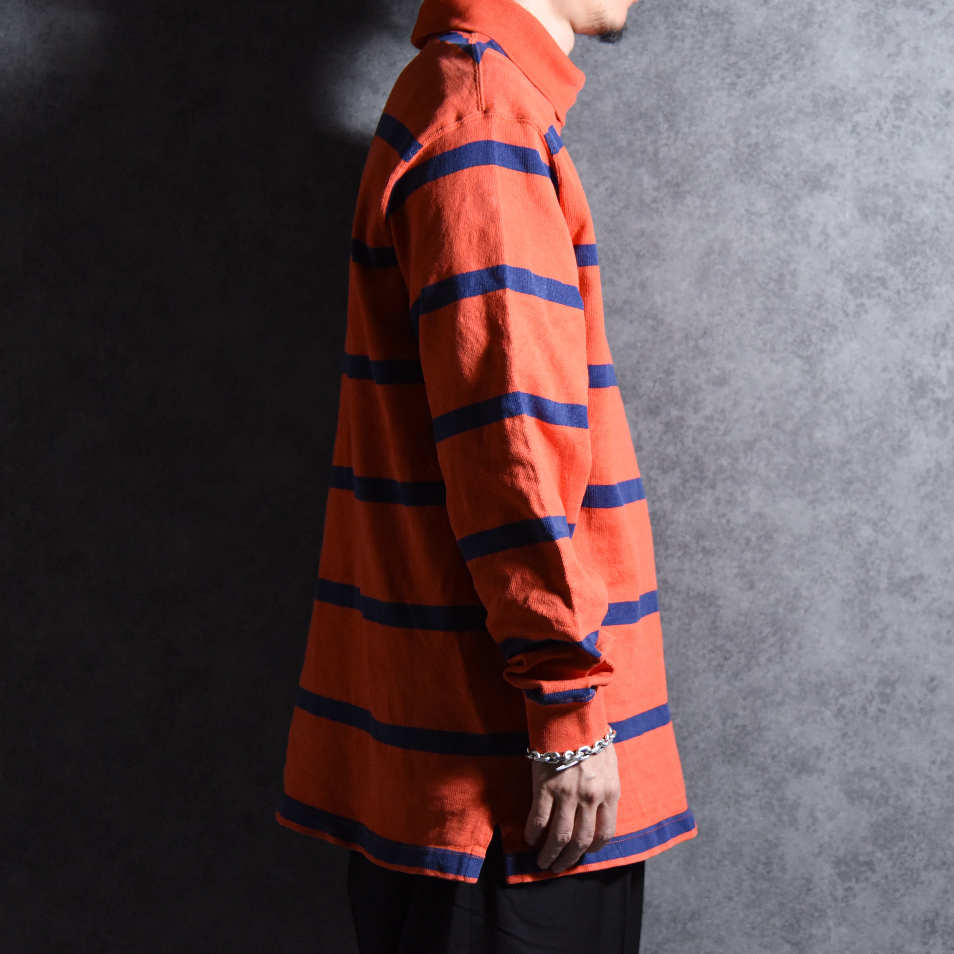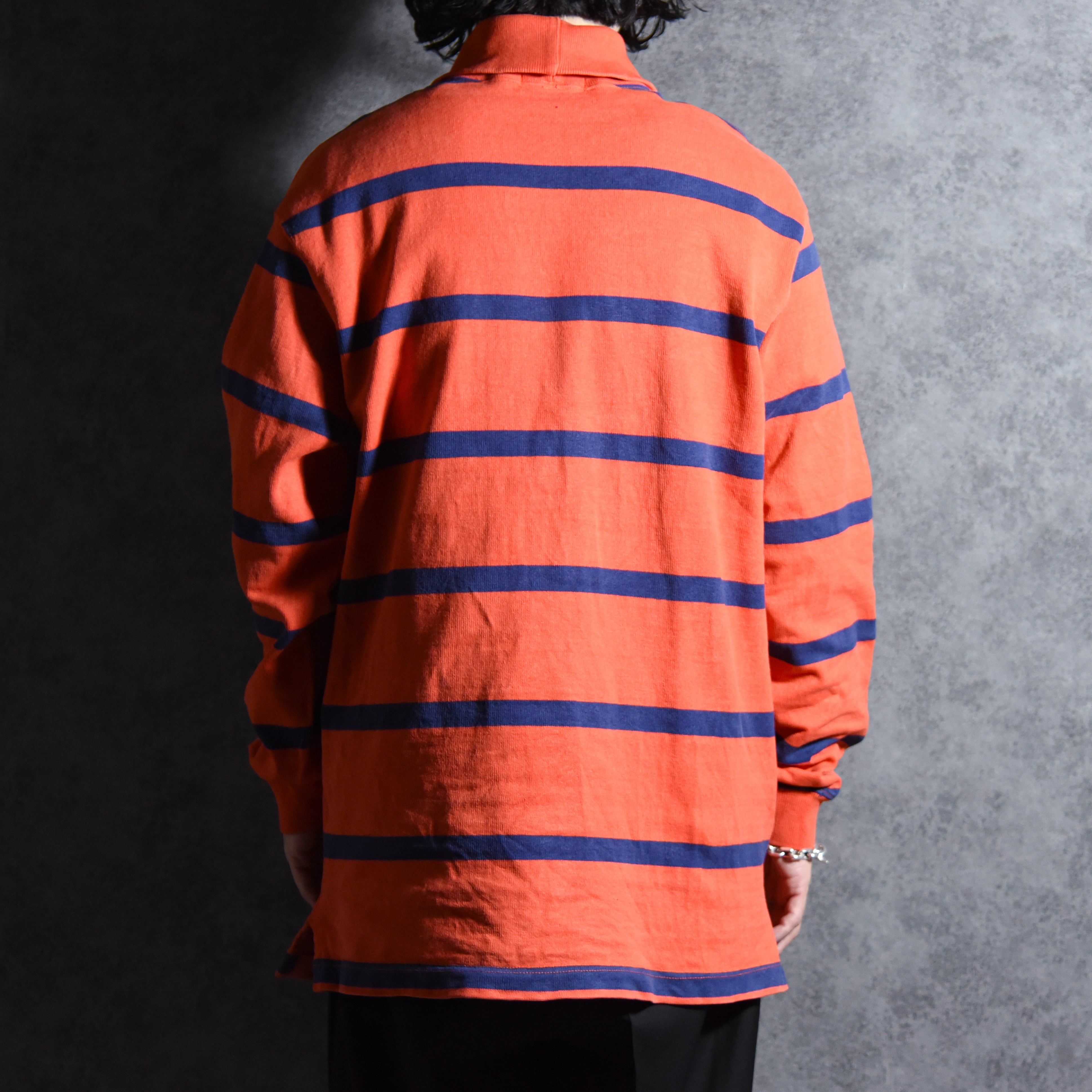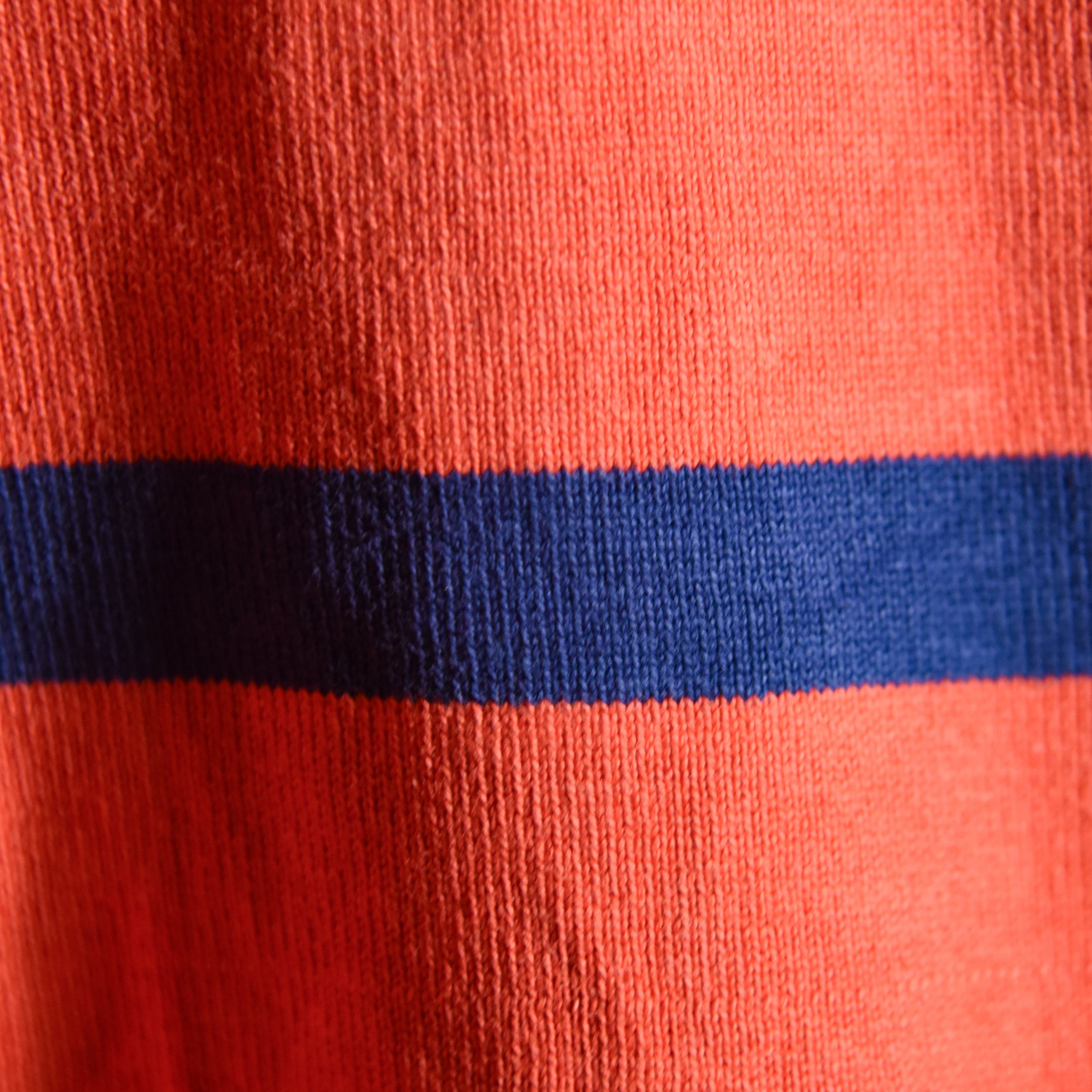ラルフローレンの中でも象徴的なオレンジベースのネイビーボーダーで素材は度詰のアメリカ製らしいヘビーウエイトな天竺。